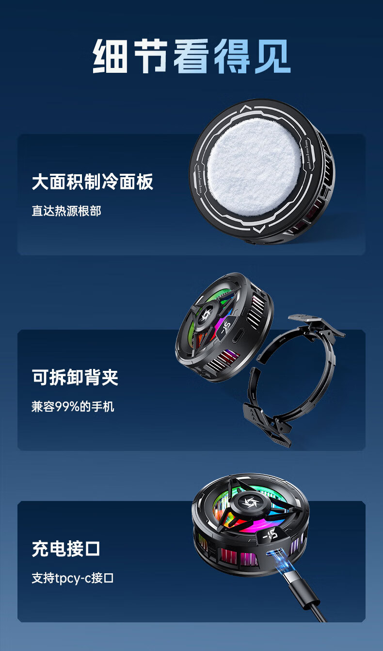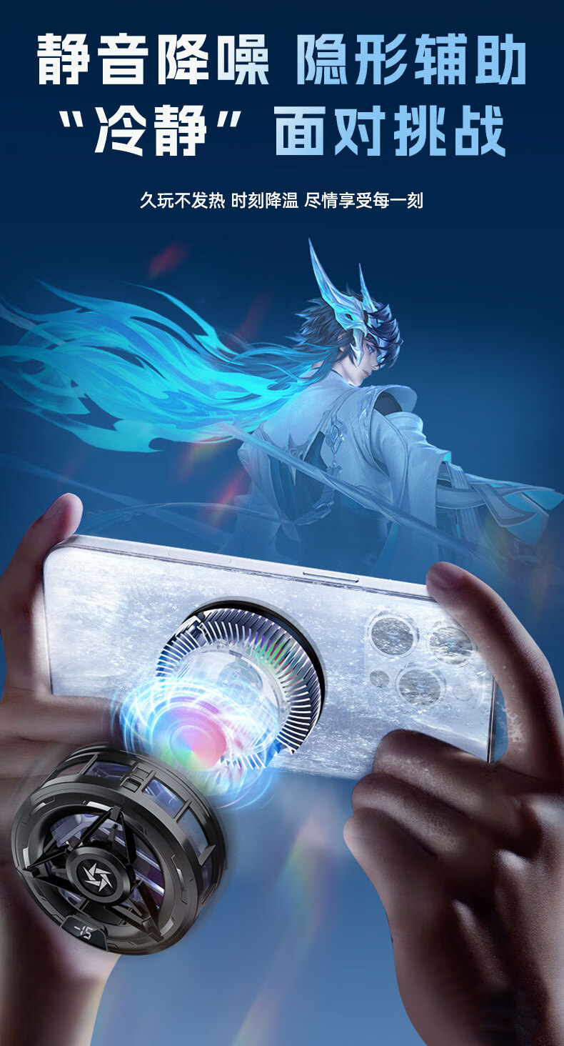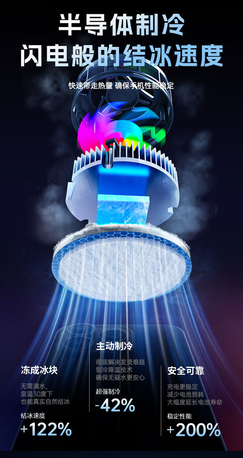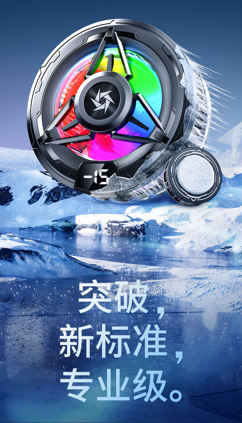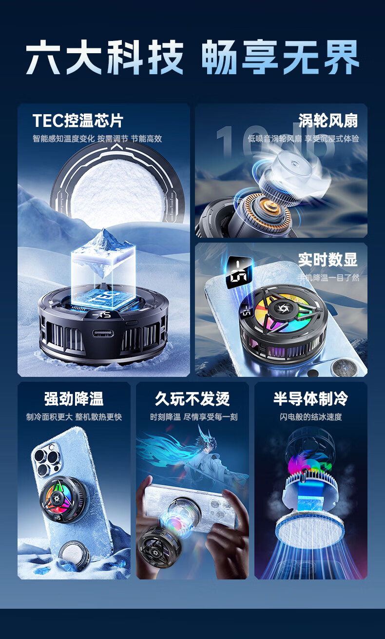 Gerberton 2025 New Upgrade丨Really Freezing Mobile Phone Radiator Tablet Magnetic Semiconductor Refrigeration Air Conditioner Back Clip Type Suitable for Huawei, Apple Phones, Tablets and Android Universal Obsidian Black Overclocking Icing Model Smart Digital Display丨Free Fingertip/Back Clip