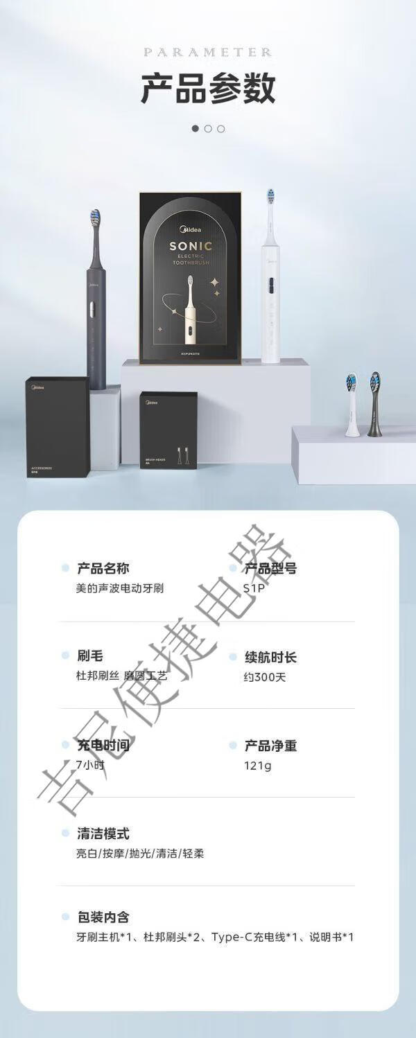 Midea Electric Toothbrush for Adults and Men and Couples Fully Automatic Sonic Gift Box Gift Toothbrush S1P S1P Polar White