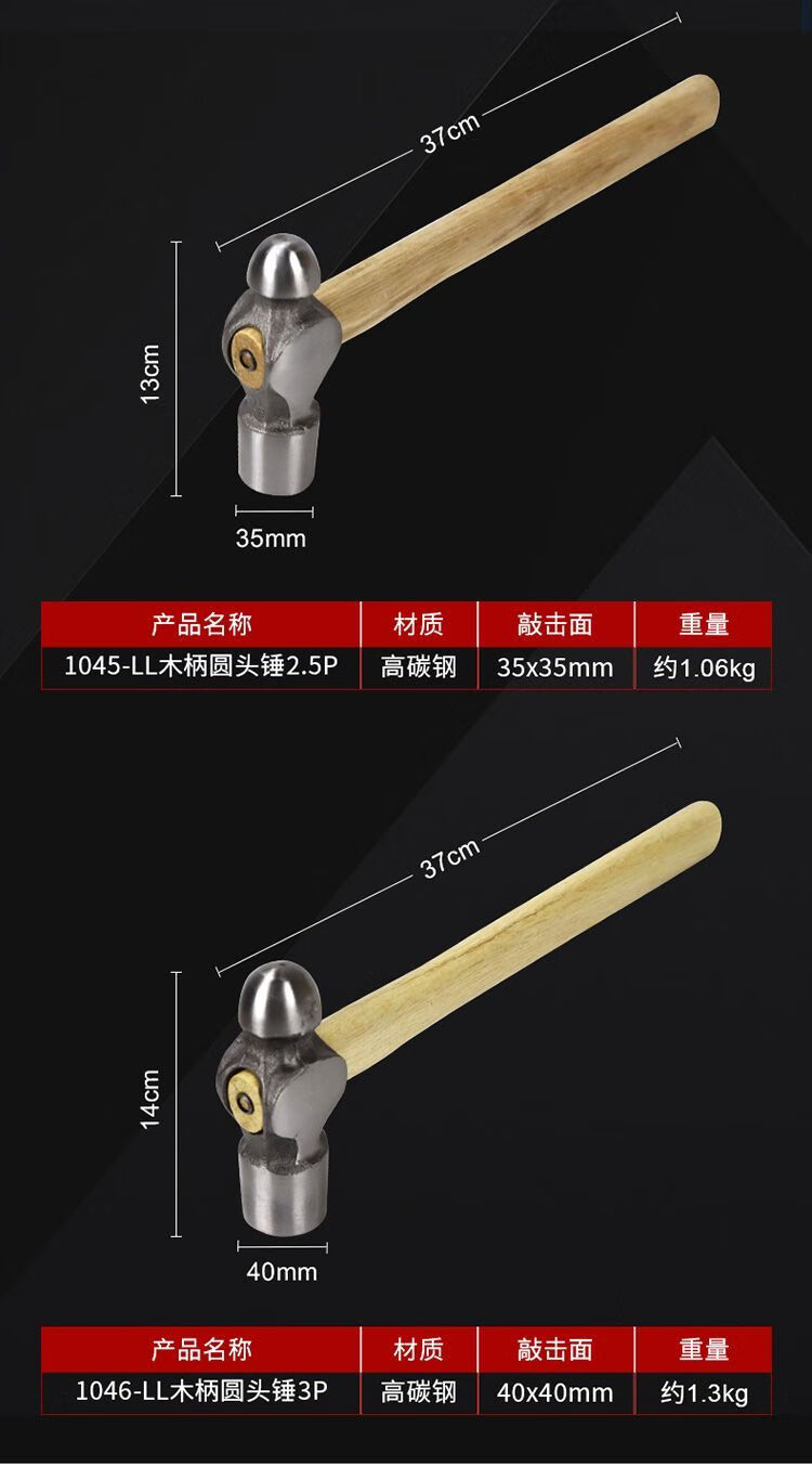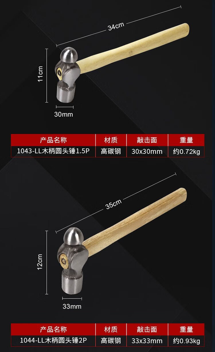 Meikejie round-head hammer 1.5P household tit hammer 2P wooden handle iron nail hammer steel hammer walnut hammer small hammer wooden handle round-head hammer 0.5P