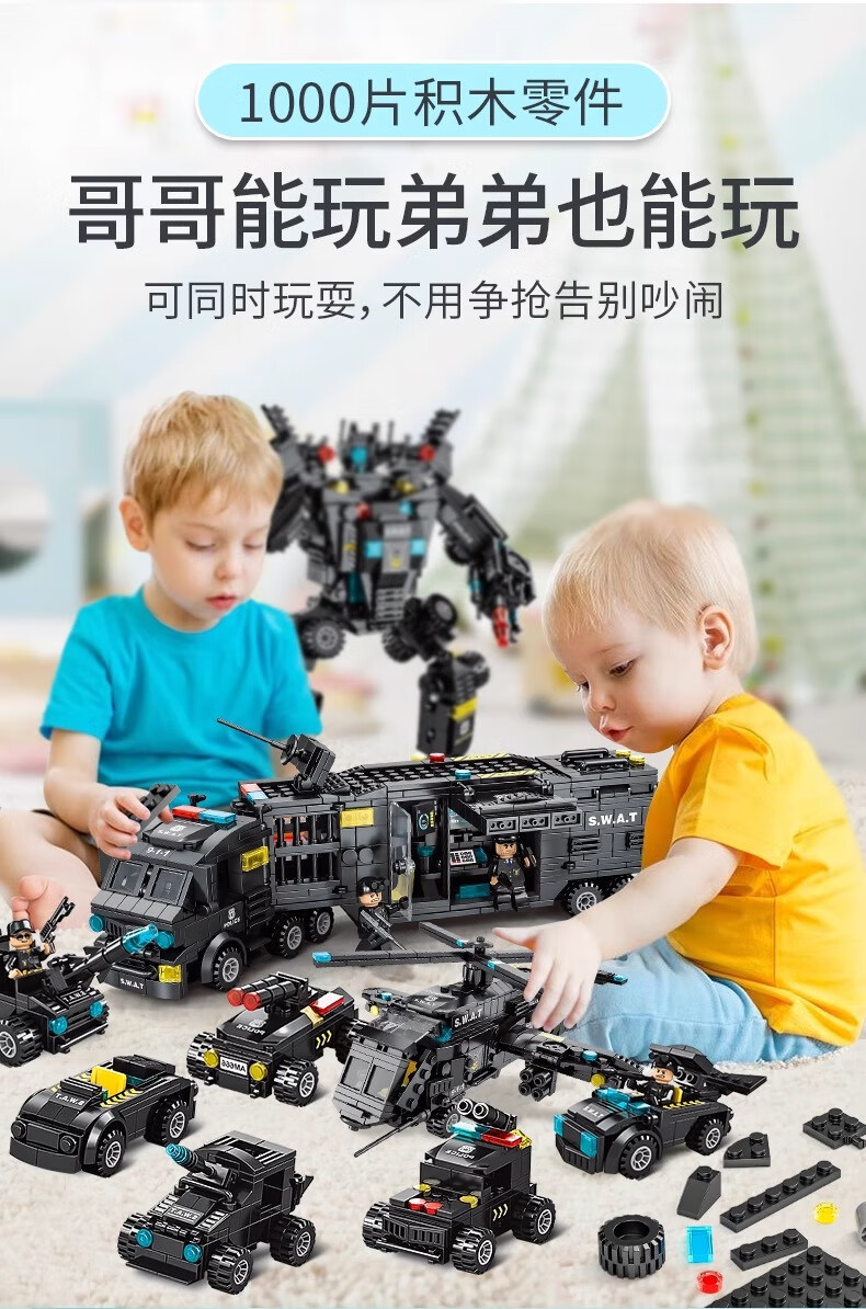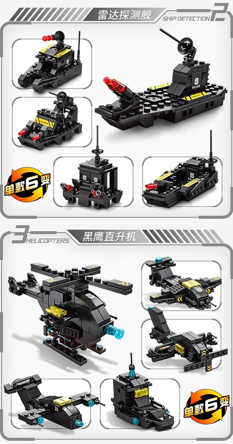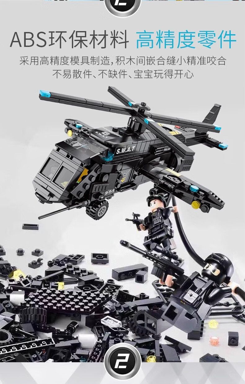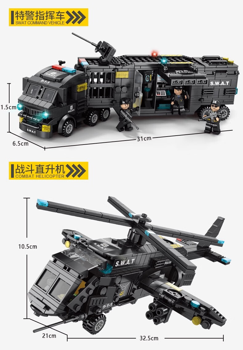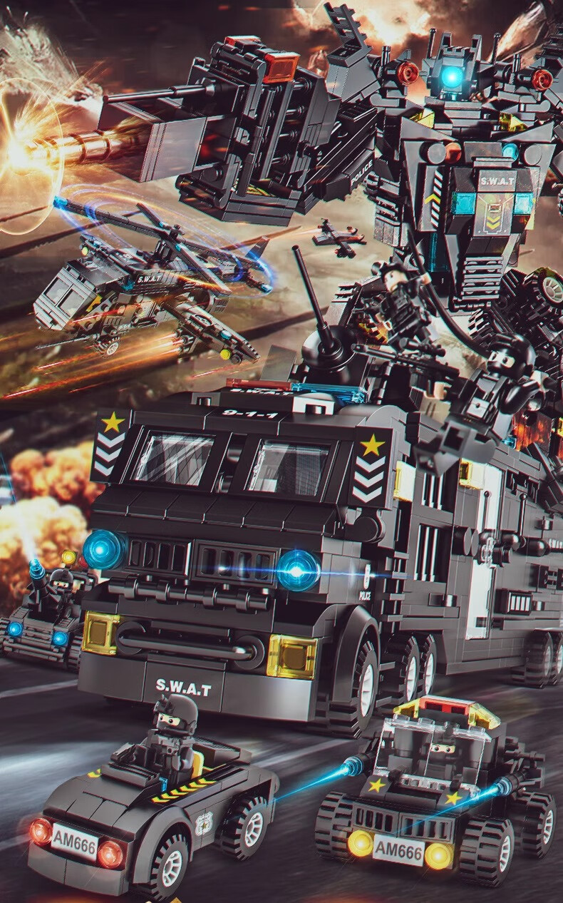 New Chinese Building Blocks Boys City Puzzle Assembling Picture Car Children SWAT Robot Toy Gift Black Hawk SWAT Team