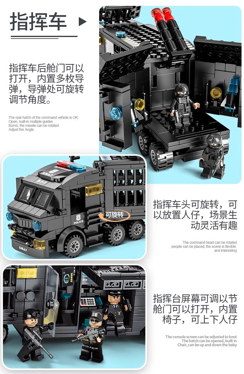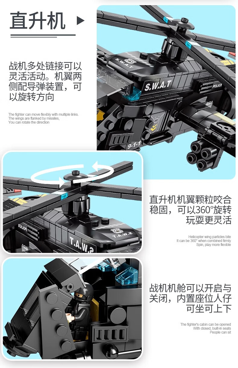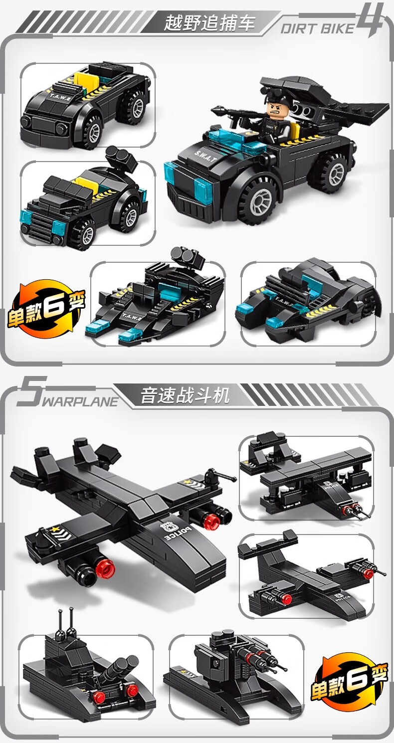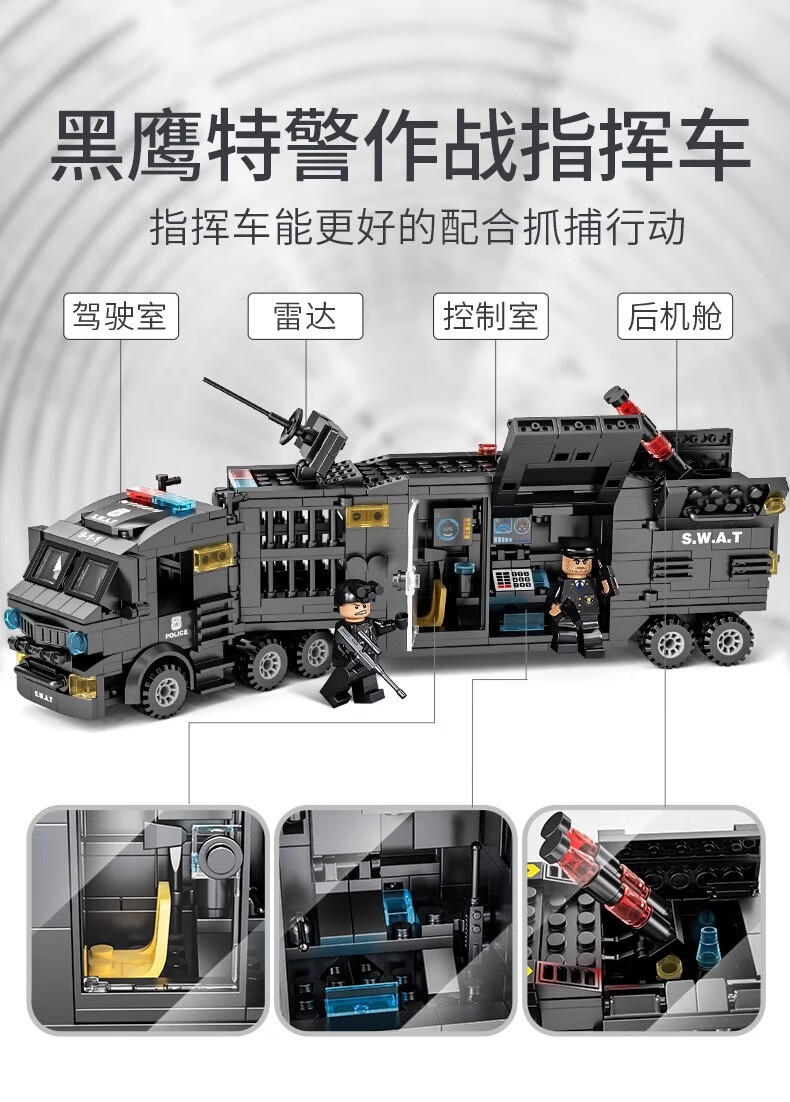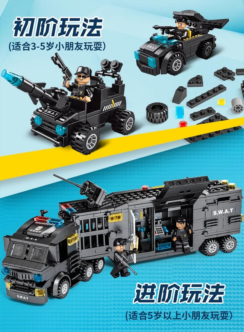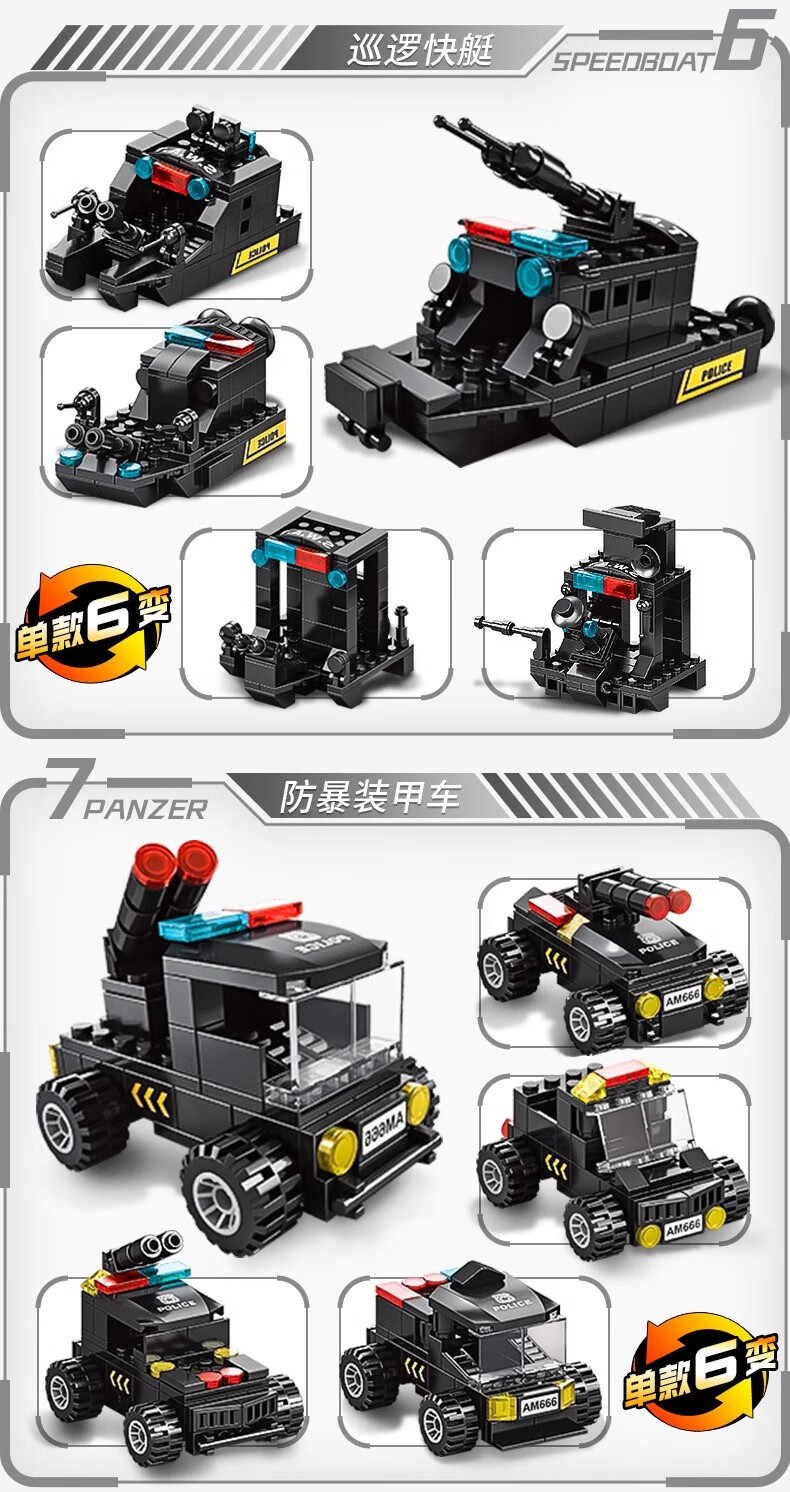 New Chinese Building Blocks Boys City Puzzle Assembling Picture Car Children SWAT Robot Toy Gift Black Hawk SWAT Team