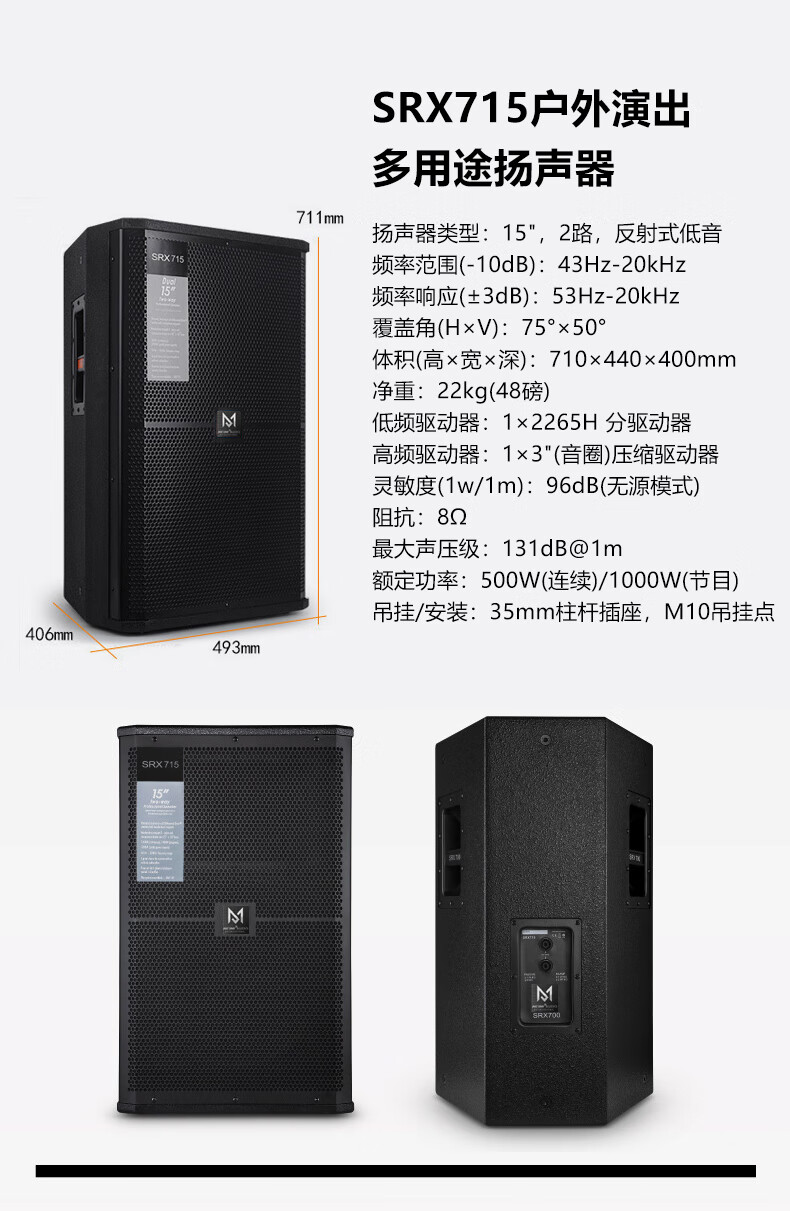 Meimi SRX7 series high-power single and double 12-inch 15-inch professional large-scale full-range speakers for performance high-power stage sound set dual 15-inch-170 magnetic bass-44-core tweeter/single