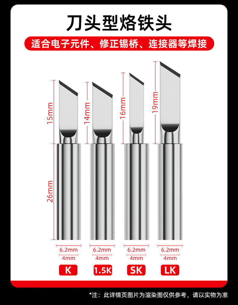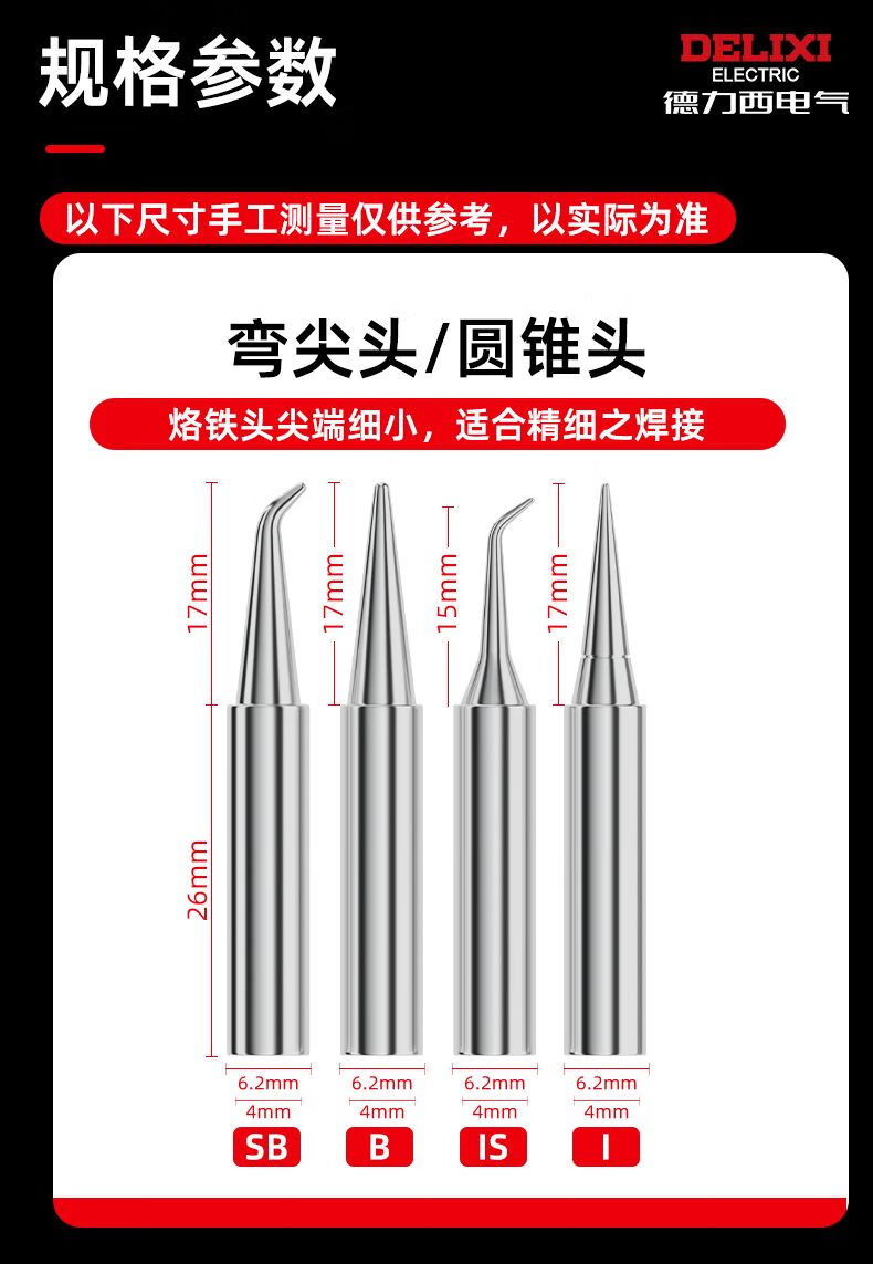 Delixi Electric constant temperature electric Luo iron head universal 936 internal heating chromium iron head curved tip flat head horseshoe head round tip SK tip (small blade) soldering iron tip