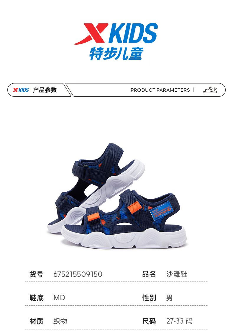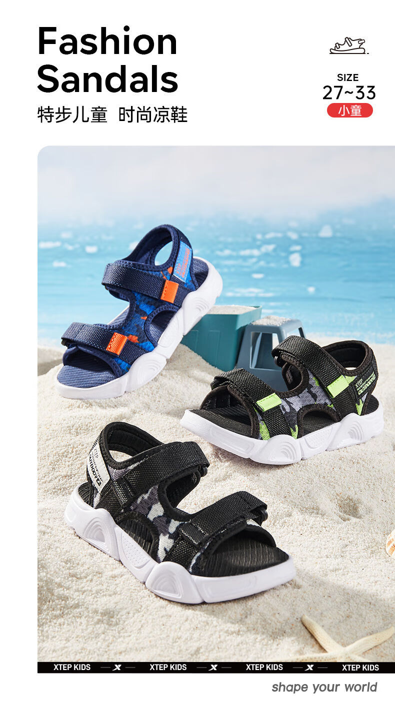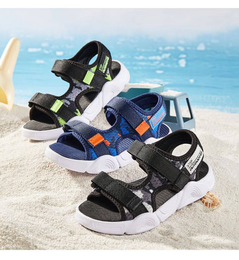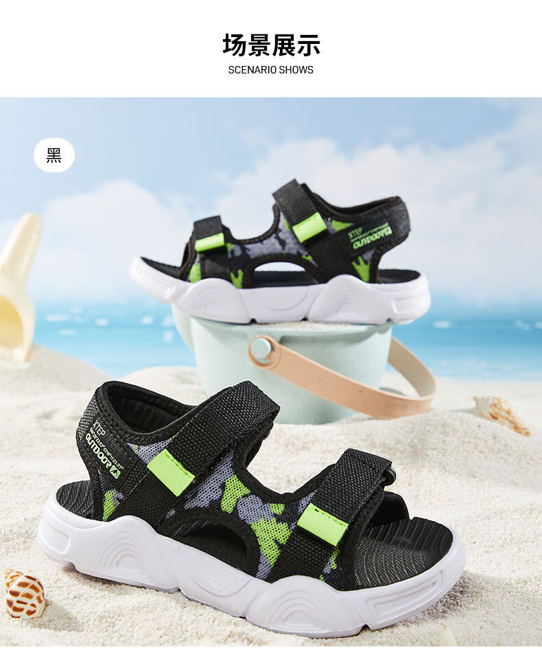 XTEP Children's 2025 Summer Beach Shoes Sandals New Handsome Sports Boys Young Children Wear-Resistant Breathable Students Black 31