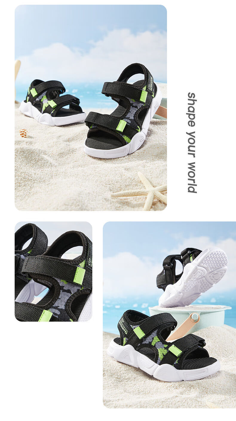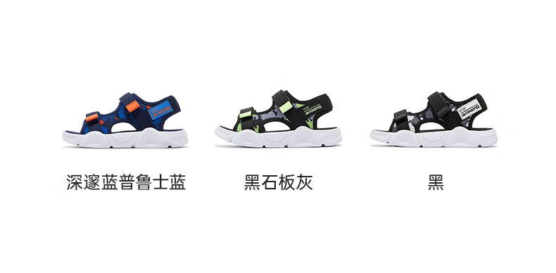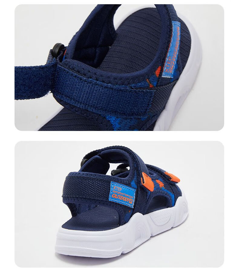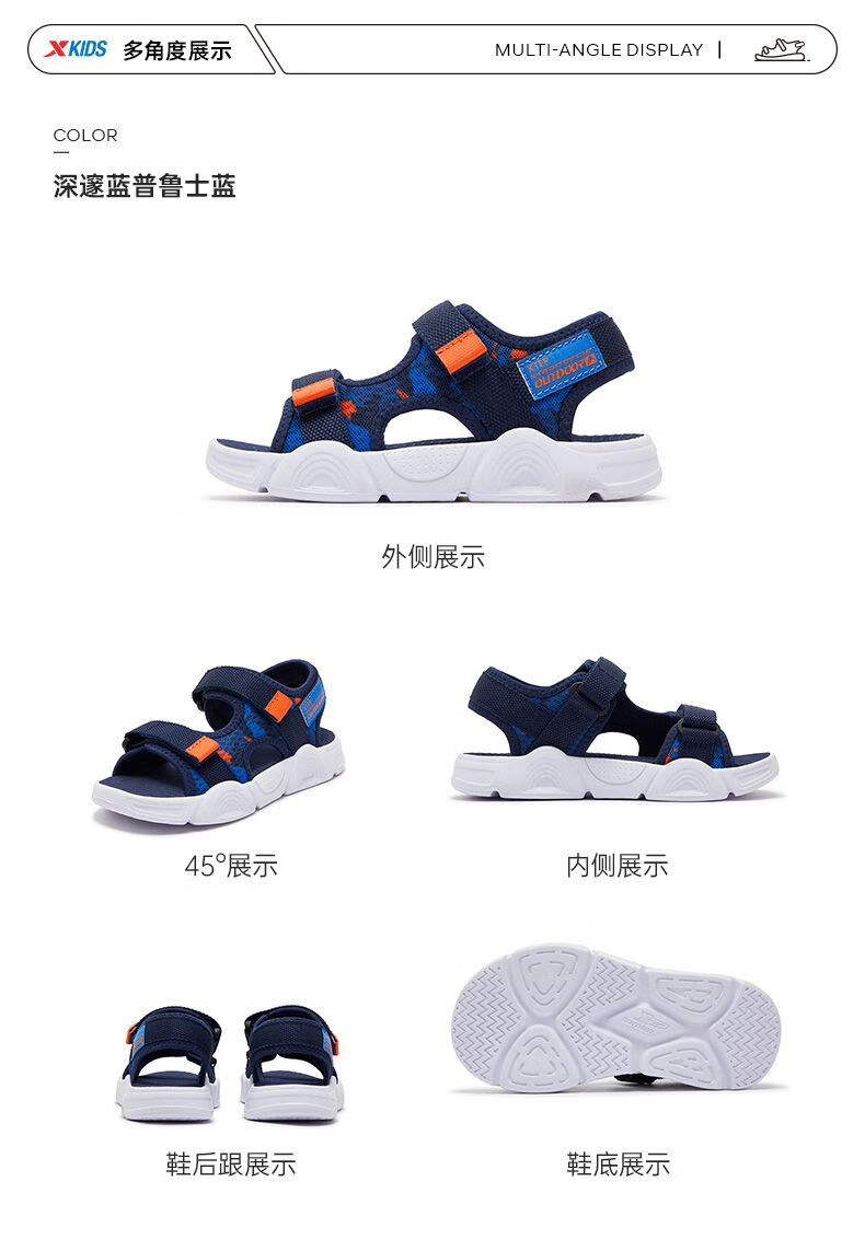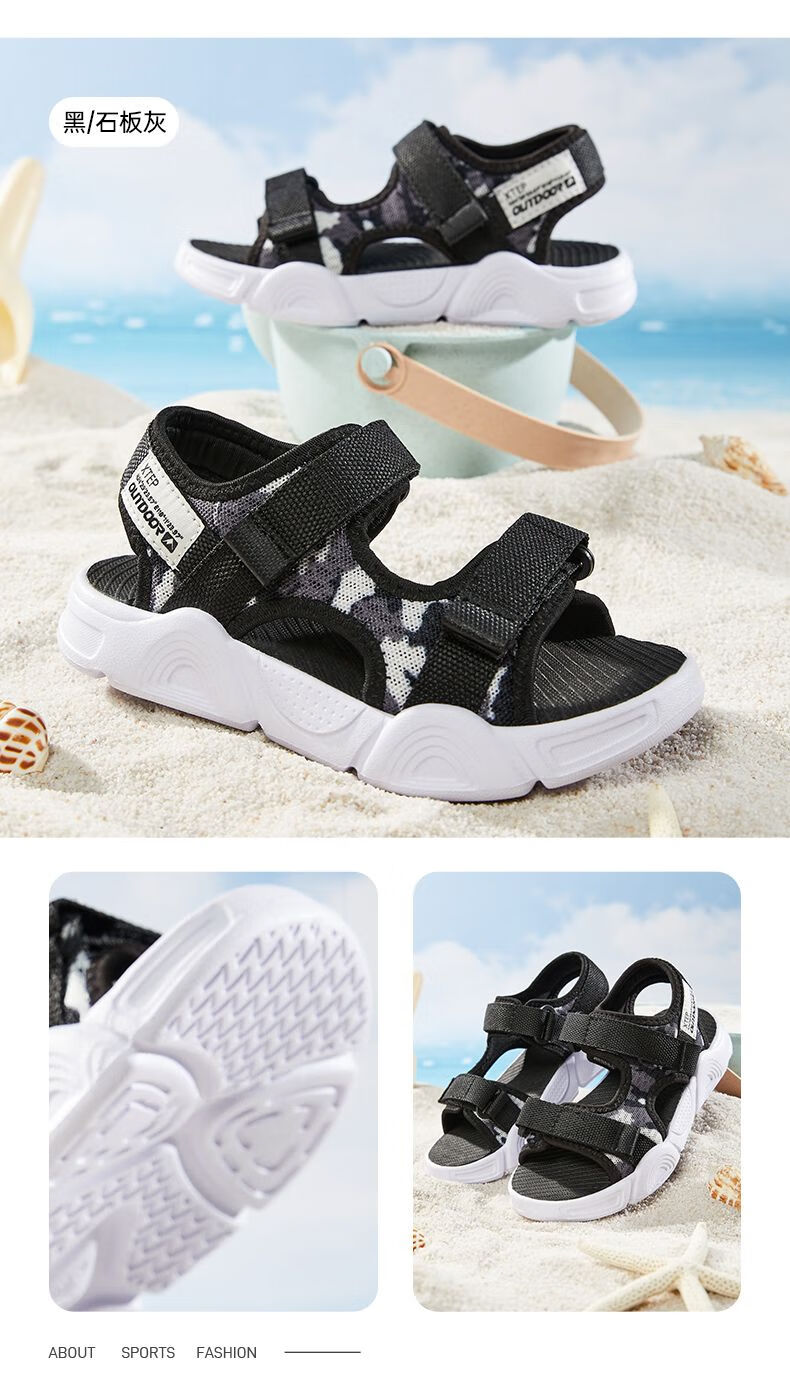 XTEP Children's 2025 Summer Beach Shoes Sandals New Handsome Sports Boys Young Children Wear-Resistant Breathable Students Black 31
