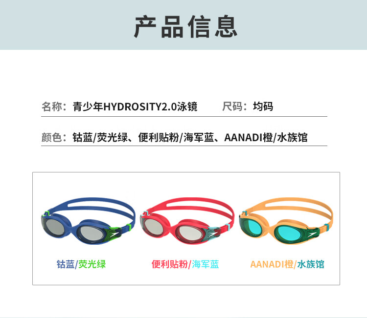 Speedo 25 new youth Hydrosity2.0 children's high-definition anti-fog swimming goggles large frame wide field of view sun protection swimming goggles cobalt blue wraparound lens, wide field of view