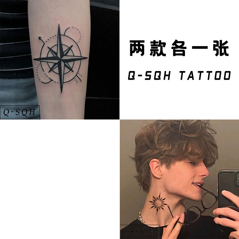 No. 1 Phoenix Compass Herbal Tattoo Sticker Semi-Domineering Flower Arm Wrist Cover Scar Dark Waterproof Long-lasting Tattoos for Men and Women Navigator Set of 8 Herbal Tattoo Stickers