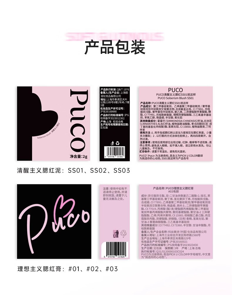 PUCO Blush Mud Cushion Mashed Potato Expansion and Shrinking Color Matte Makeup Atmosphere Natural Highlight Contouring and Brightening SS03 Undefined Grapefruit Powder Blush Mud
