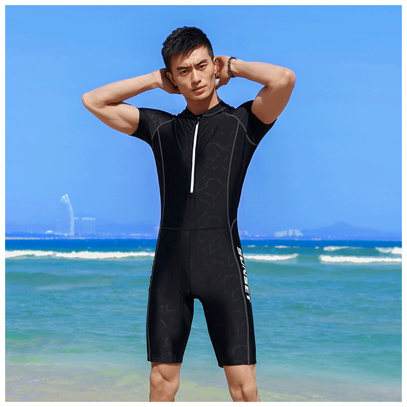 MORTEN SOLUM2025 new wetsuit one-piece men's black slim-fitting short-sleeved five-point beach sports swimsuit H95 L (height 155-170/weight 90-110 can be worn