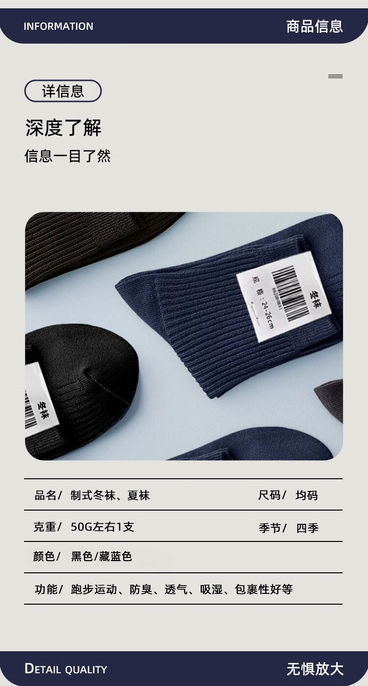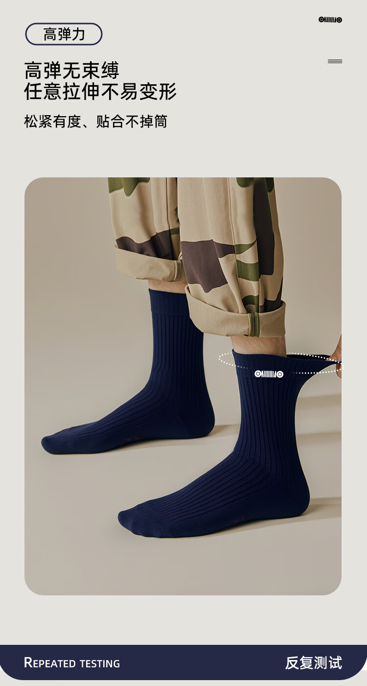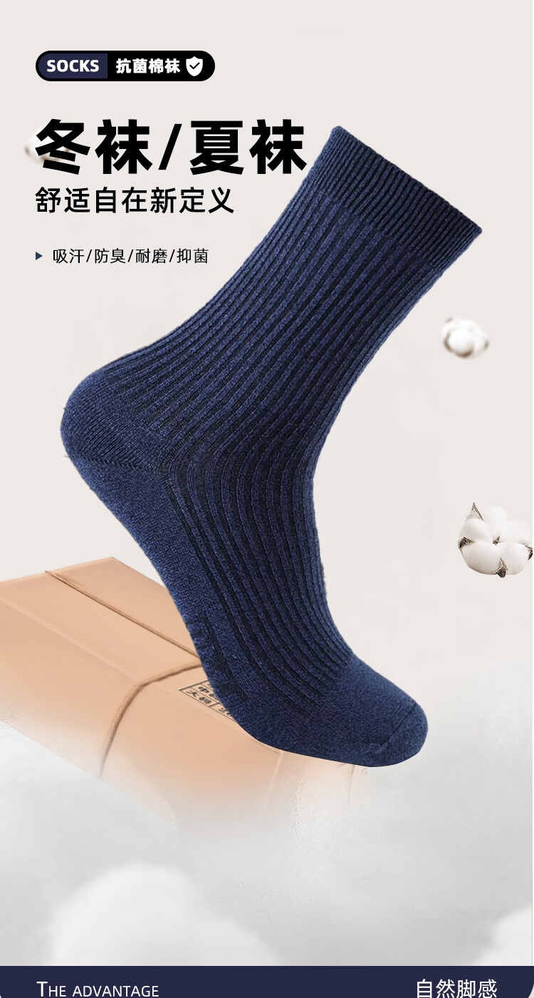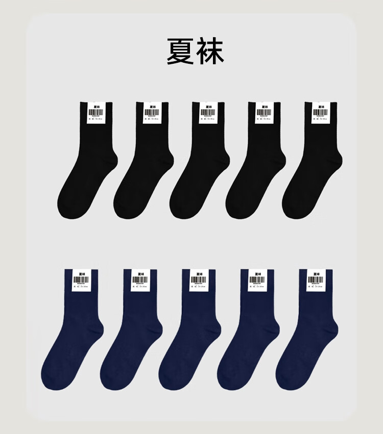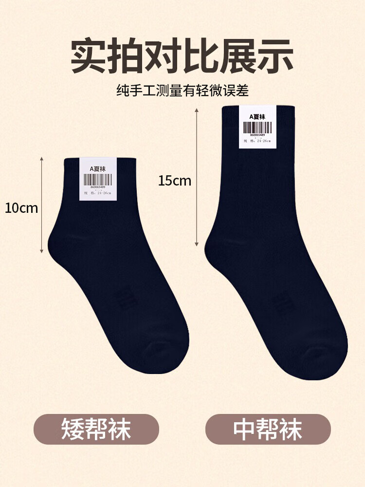 Jihua 3565 standard socks men's summer socks outdoor training sports deodorant wear-resistant cotton socks military training essential cotton socks medium top - navy blue cotton summer socks - 5 pairs 7A level anti-odor 24-26cm medium (40-44 feet)