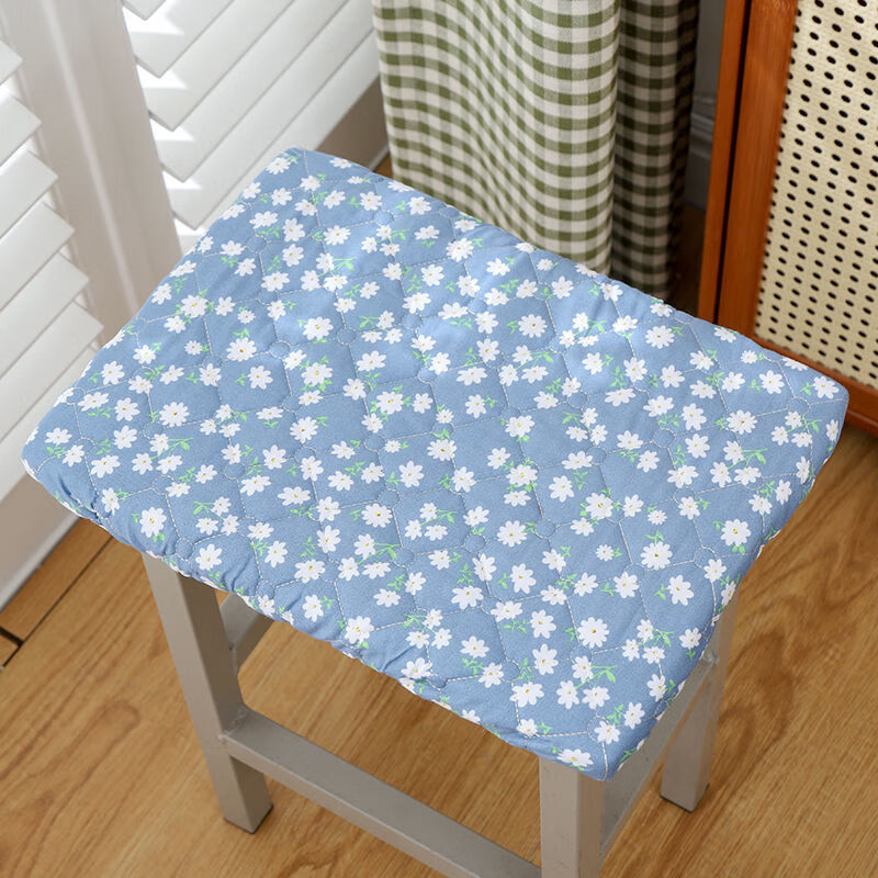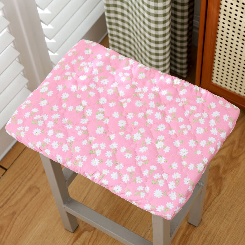 Rectangular bench, small square stool cushion, stool cover, dressing table stool cover, student cushion chair cover, small flower cloth (pink flower) double layer quilted, suitable for all seasons, suitable for stool covers with a stool surface of 24*34 cm