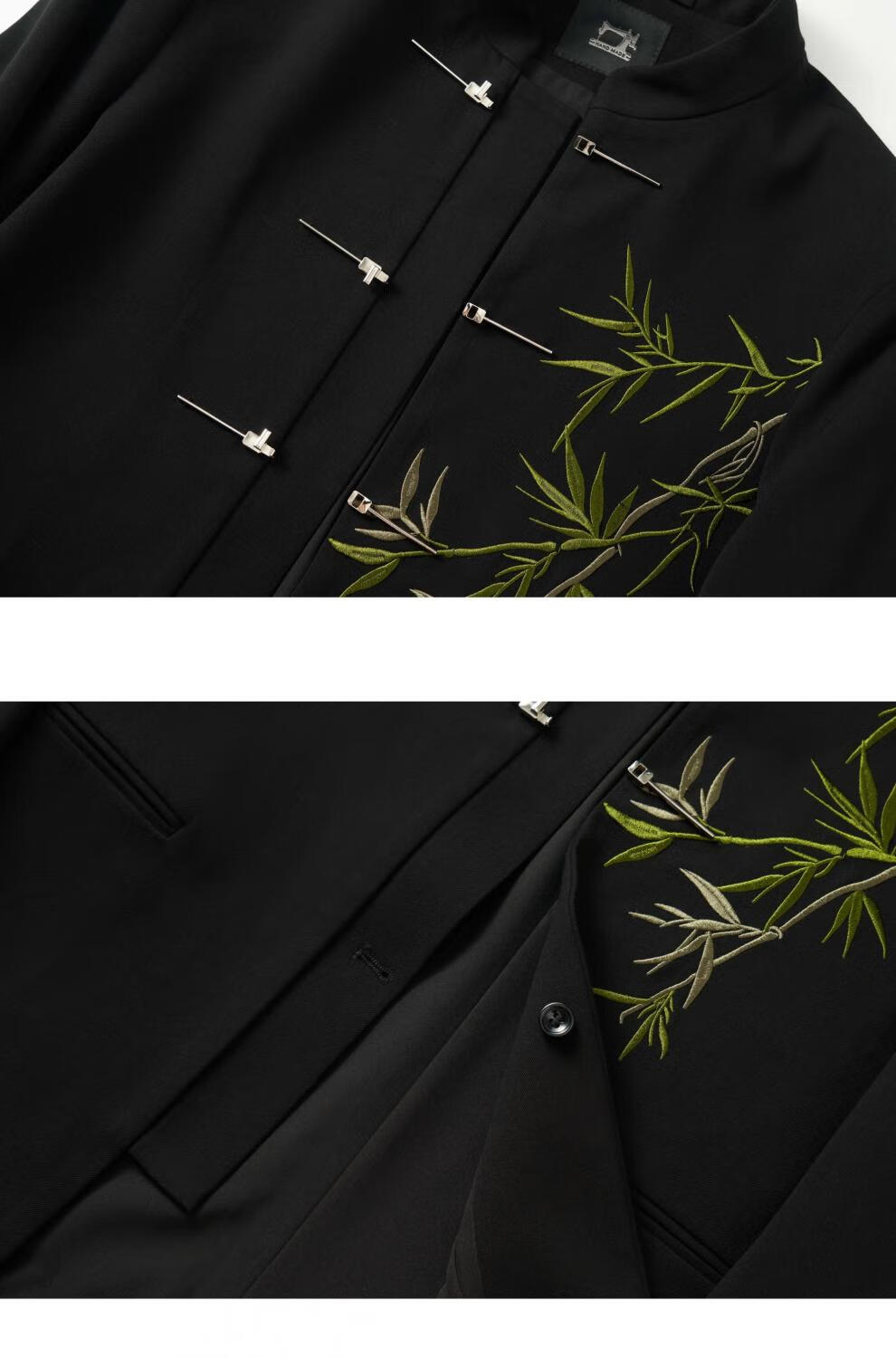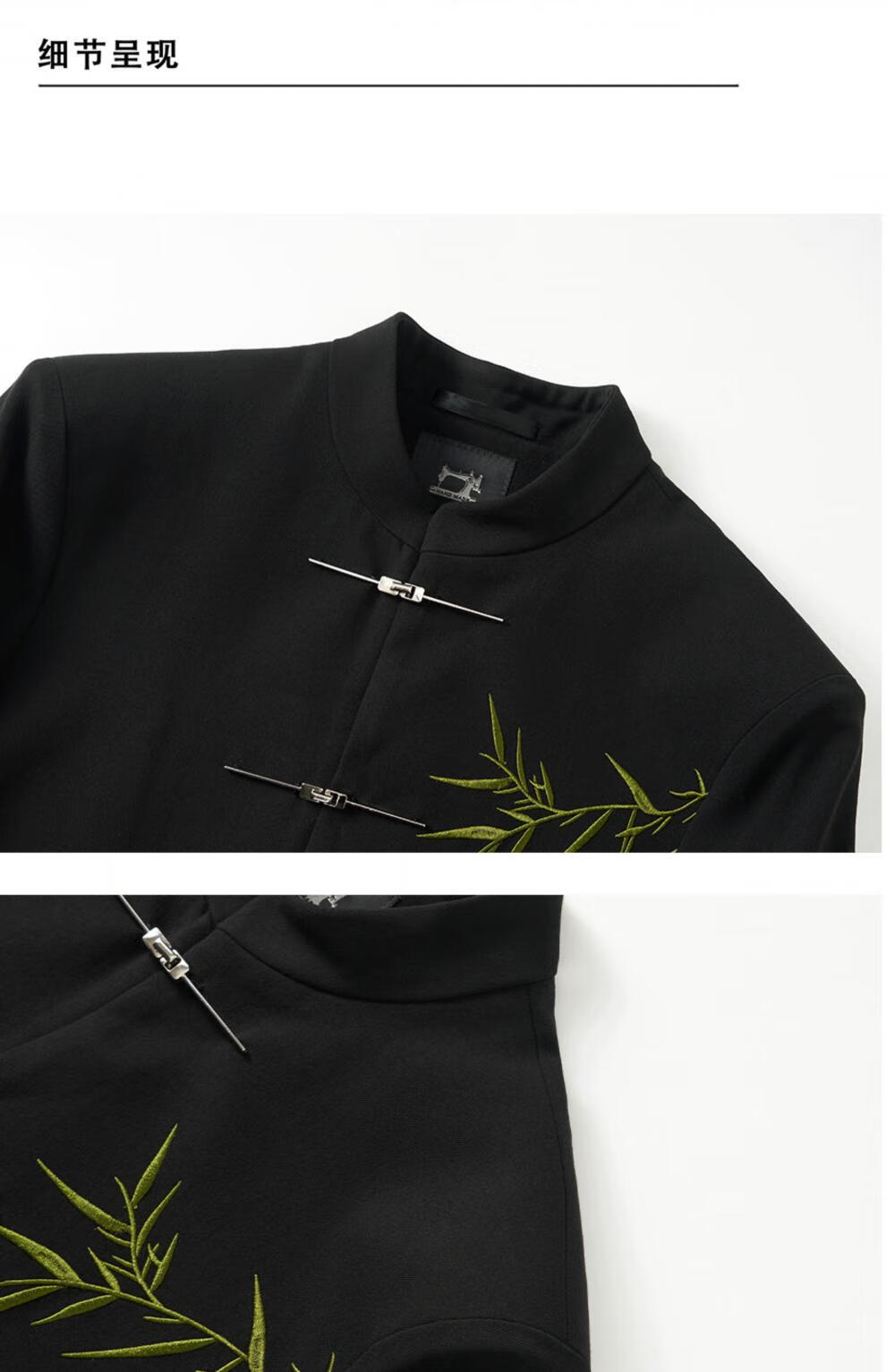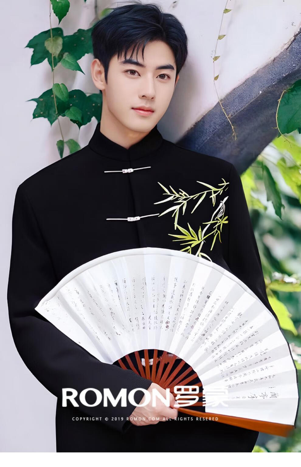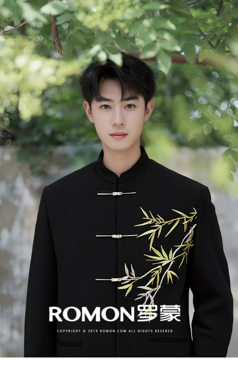 ROMON New Chinese Style Engagement Suit for Men Spring and Autumn New Embroidered Mao Suit Toast Suit Men's Dress Groom's Suit Black Suit XL (161Jin Jin equals 0.5kg -180Jin Jin equals 0.5kg)