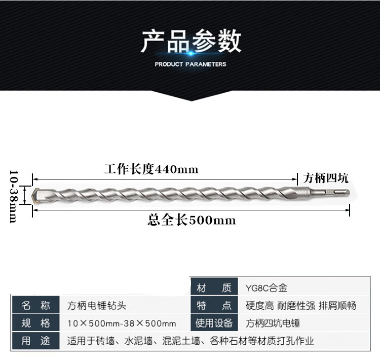 Shantou Lincun high-quality electric hammer drill bit 500 600mm extended impact drill bit through wall drill square shank round shank concrete hole drill square shank 12*500