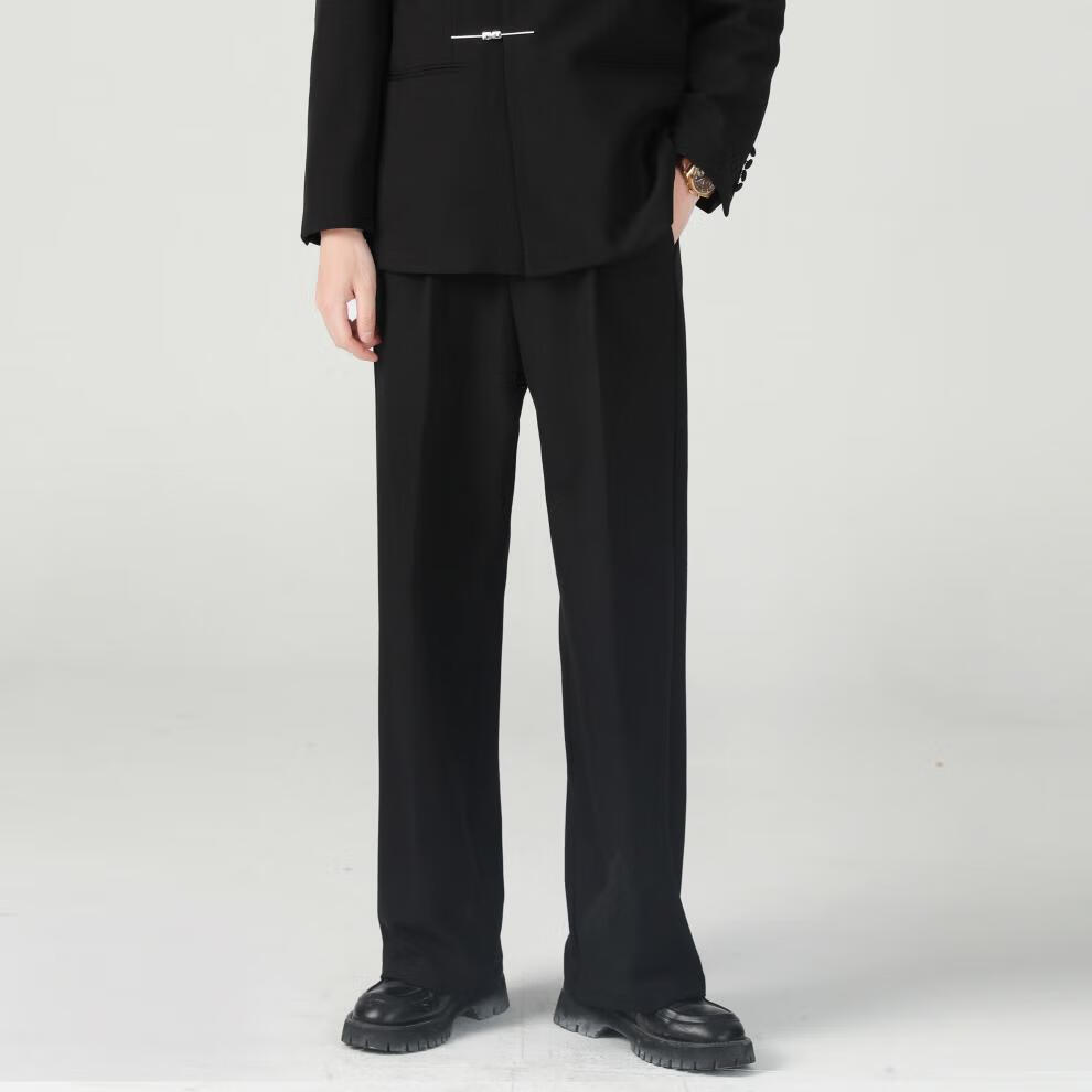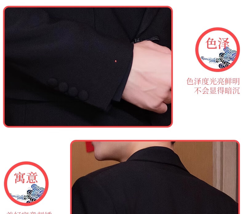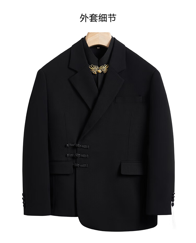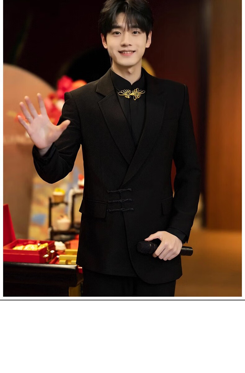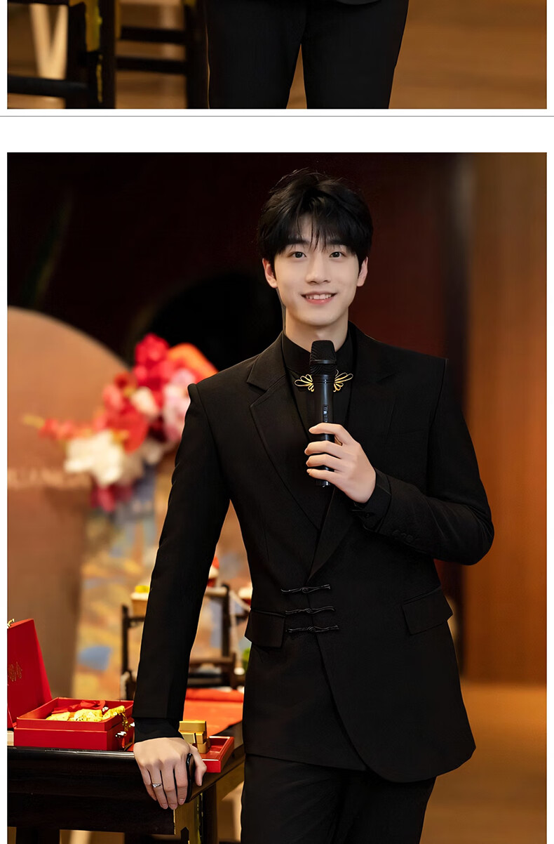 ROMON high-end new Chinese-style Zhongshan suit for men engaged, groom, wedding, Chinese style suit, Tang suit jacket for men, black suit + pants + gold button embroidered shirt XL