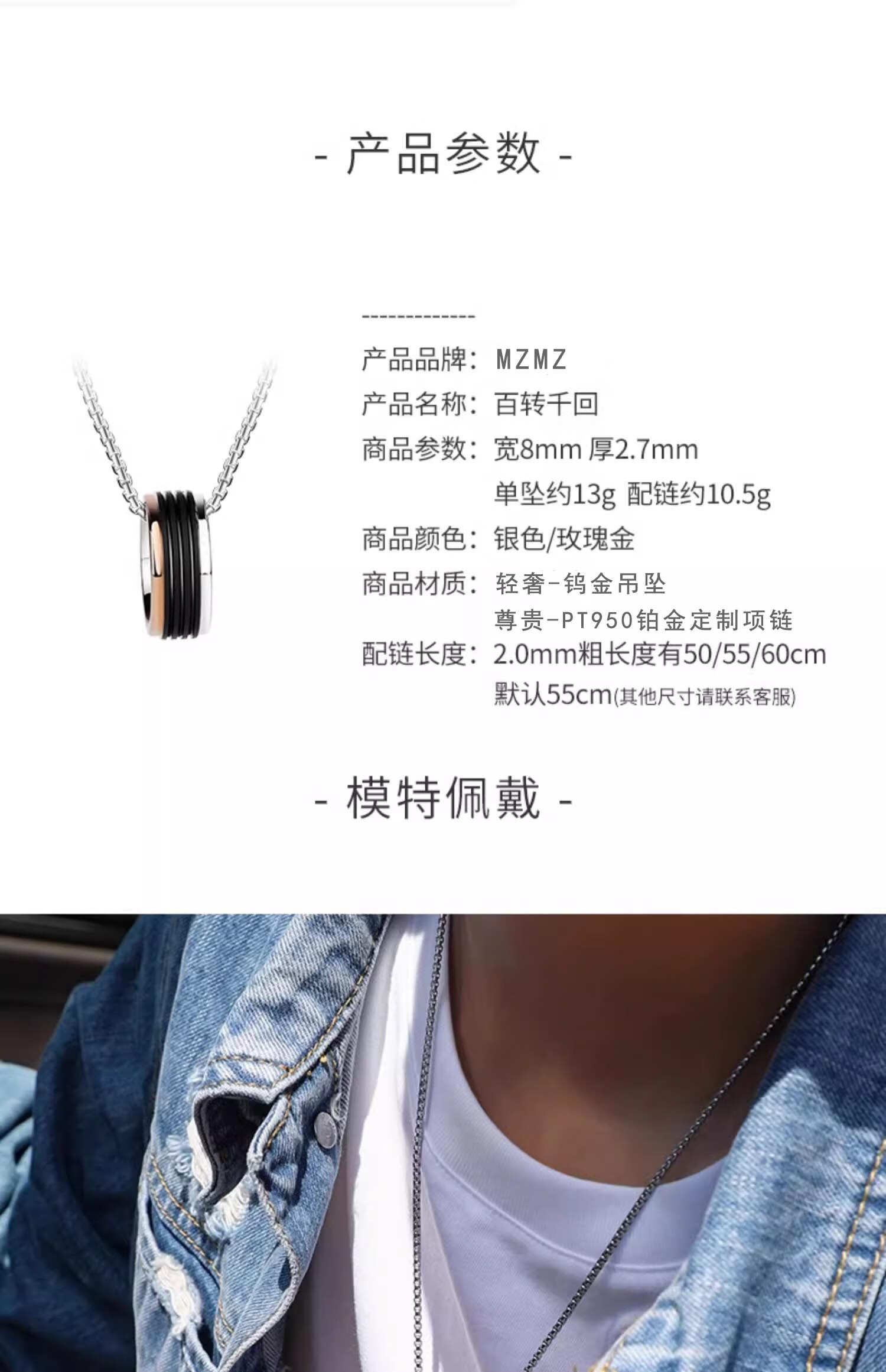 MZMZ platinum necklace men's pt950 platinum fashion pendant trendy hip-hop accessories Valentine's Day birthday gift light luxury necklace with a thousand turns and temperament