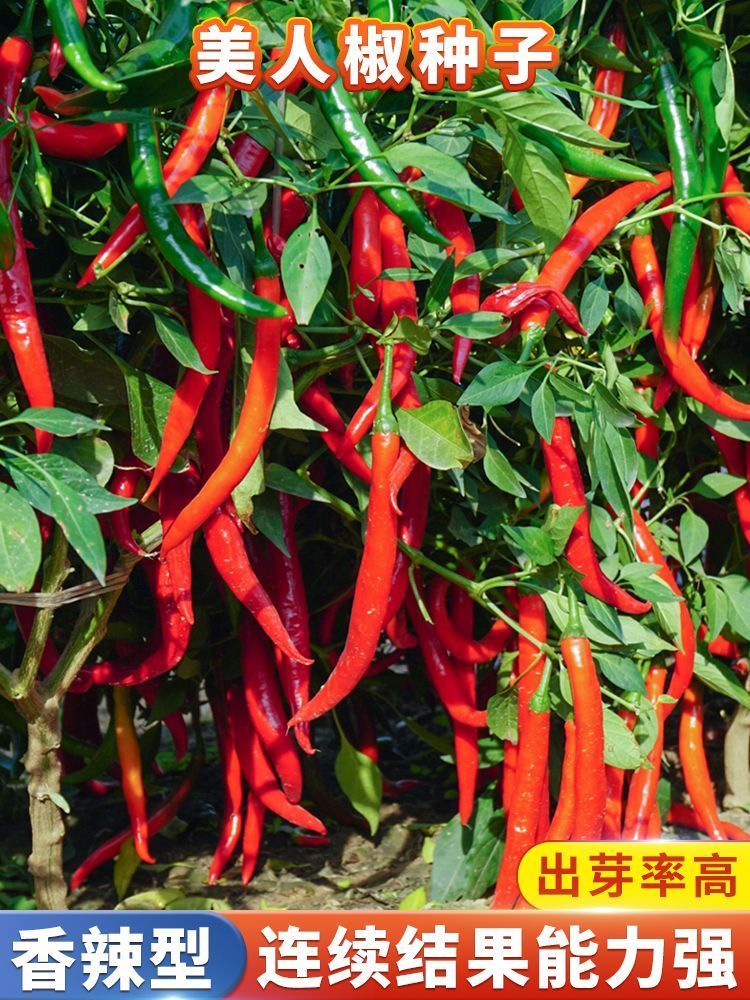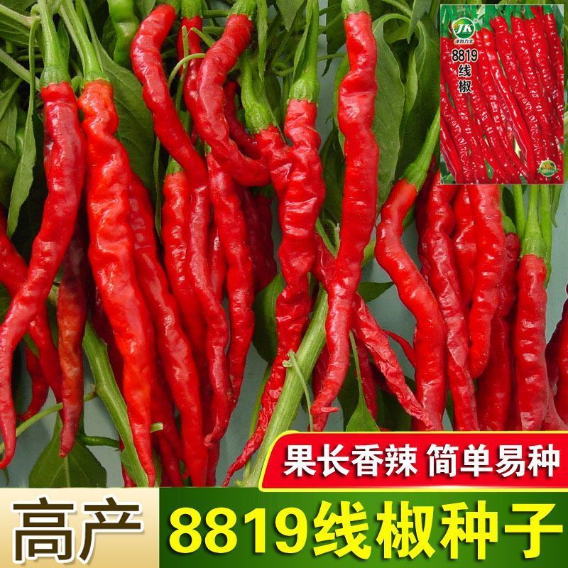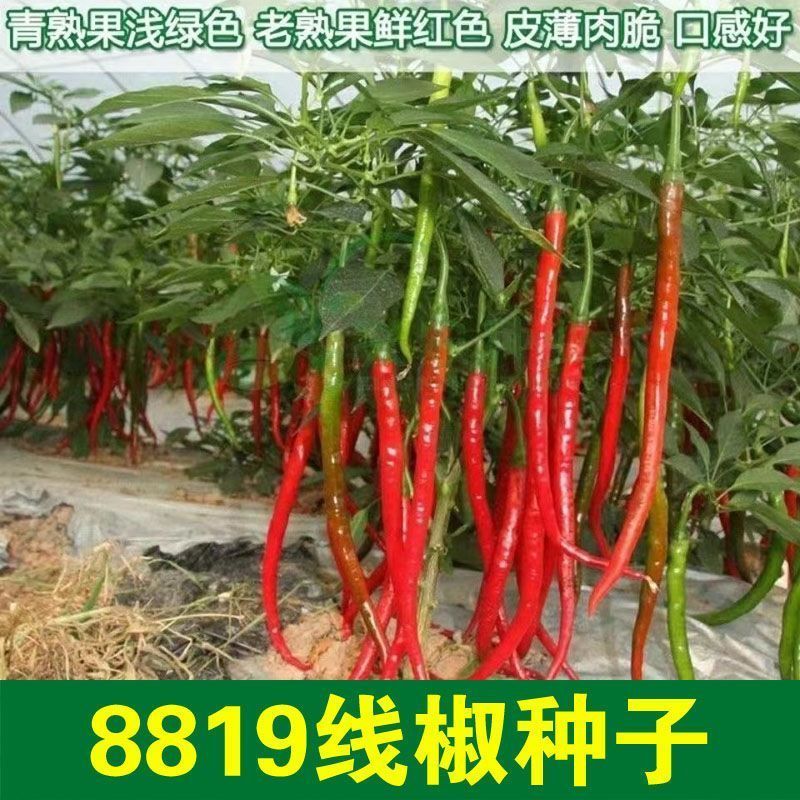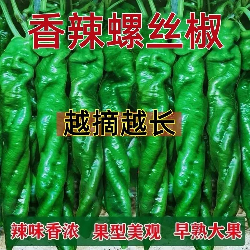 Spicy screw pepper seeds, golden screw green pepper, pig intestine pepper seeds, garden field balcony potted vegetable seeds, new species 8819 long-line pepper, about 300 capsules, 1 pack