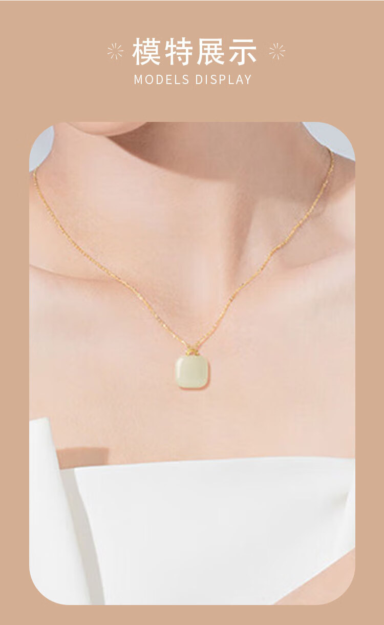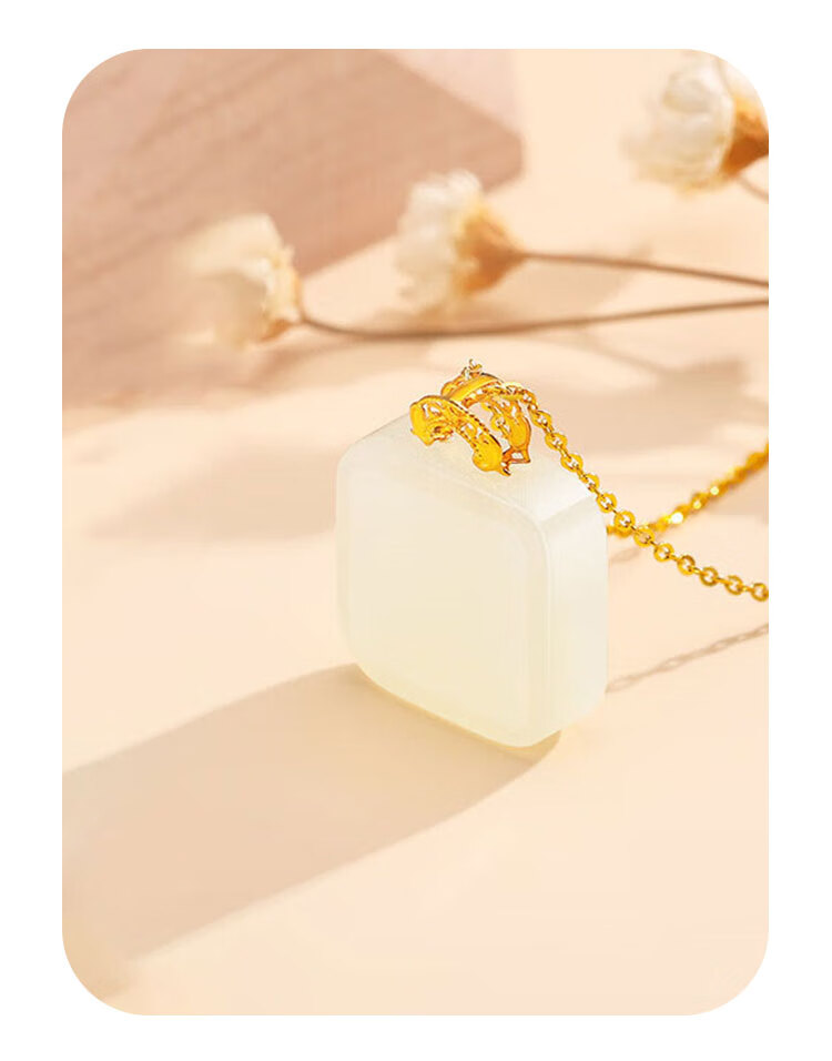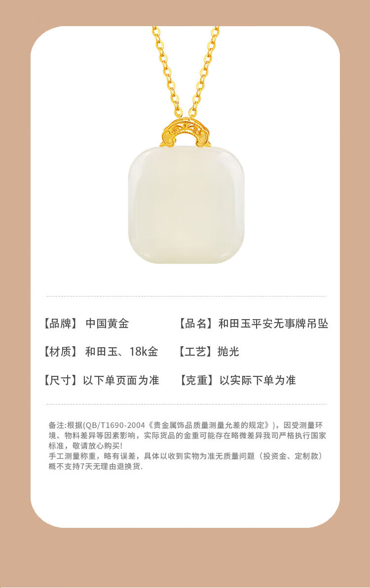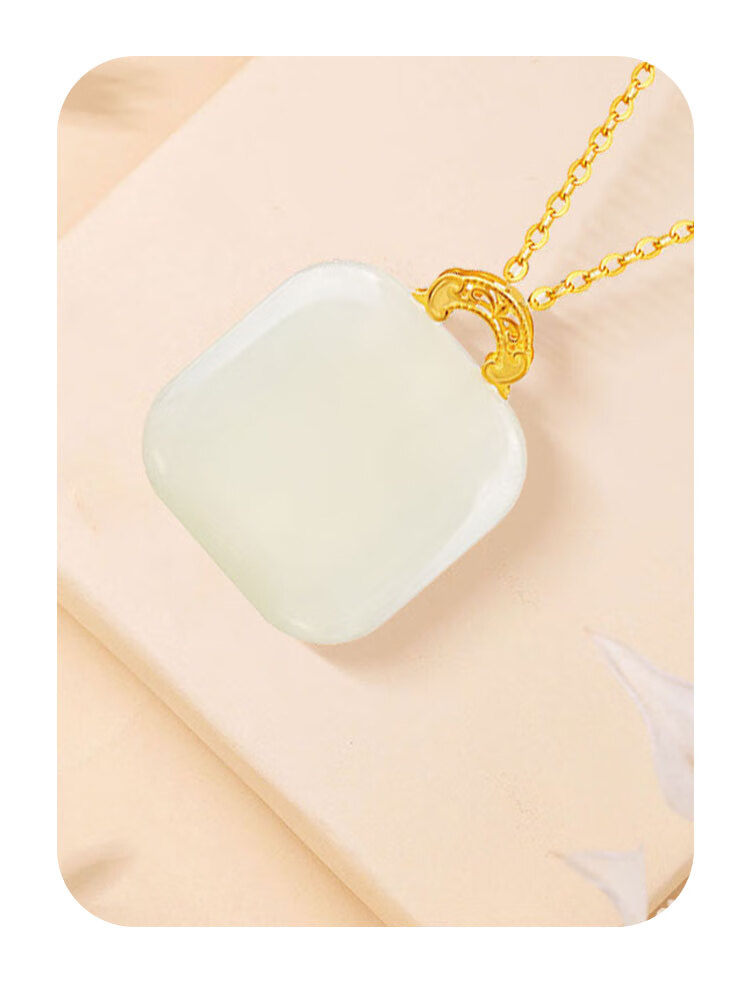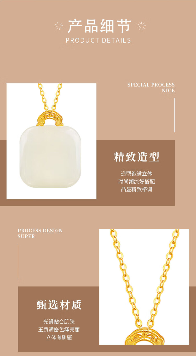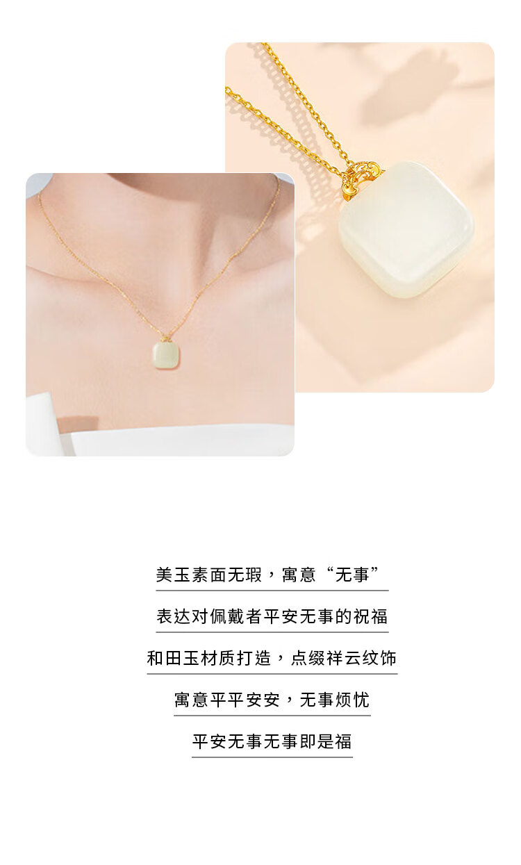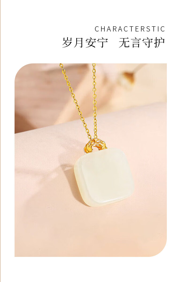 CHINA GOLD 18K Gold Necklace for Women Versatile Hetian Jade Ping An Wu Shi Brand Pendant Holiday Birthday Gift for Girlfriend and Lover 18K Hetian Jade Pendant with S925 Chain