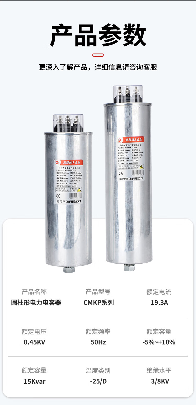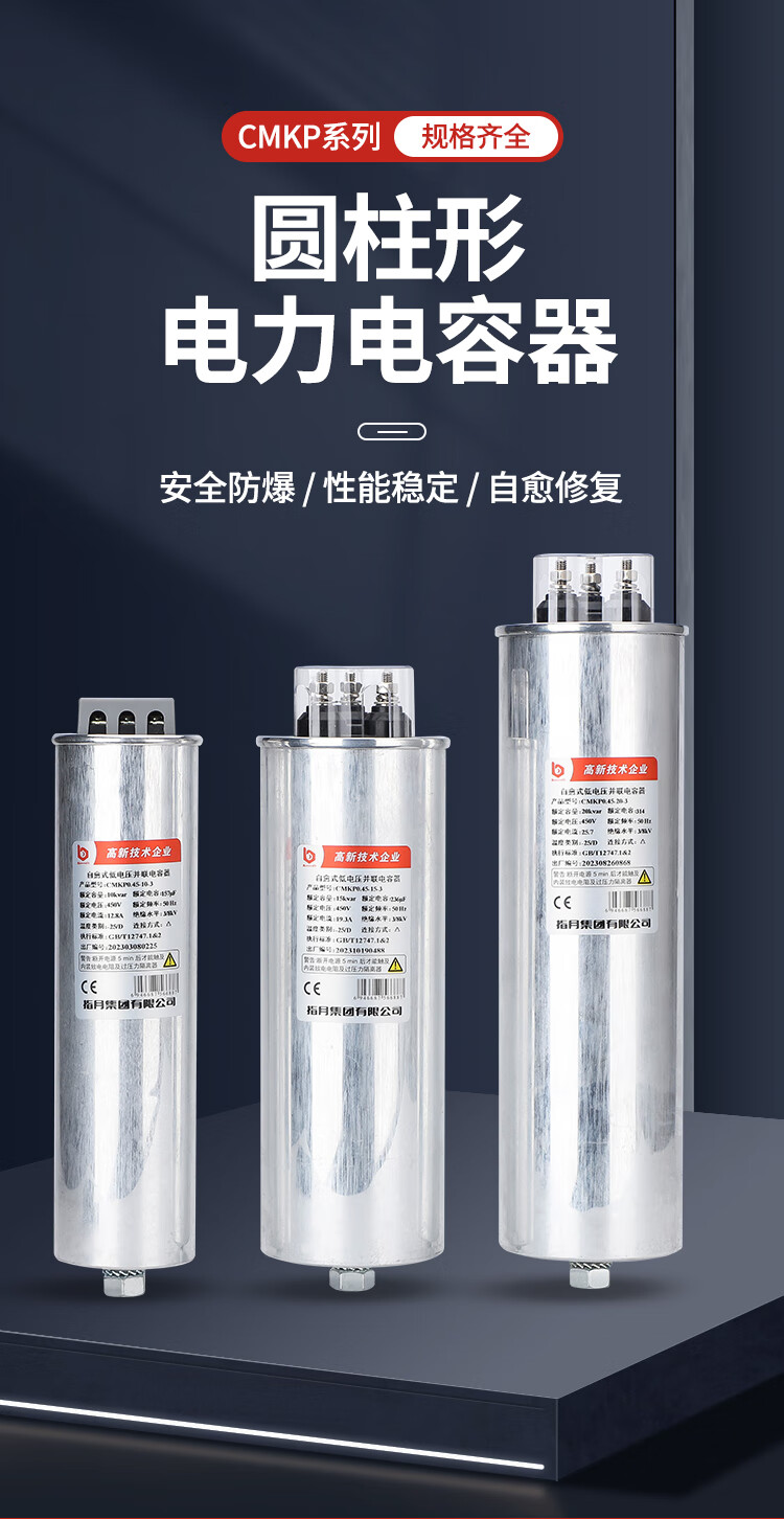 Power capacitor cylindrical self-healing low-voltage parallel reactive power compensation indexer CMKP450V-30KVAR-3 CMKP0.525-40-3