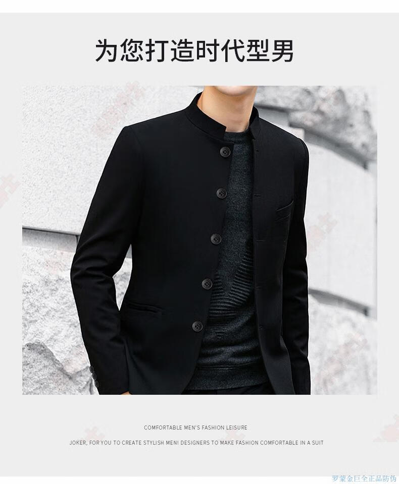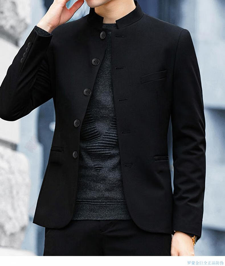 Luo Meng Gentleman Mao Suit Young People New Chinese Style Men's Republic of China Stand Collar Suit Jacket Men's Suit Large Size Trendy Mao Suit S 85-105Jin Jin is equal to 0.5 kg