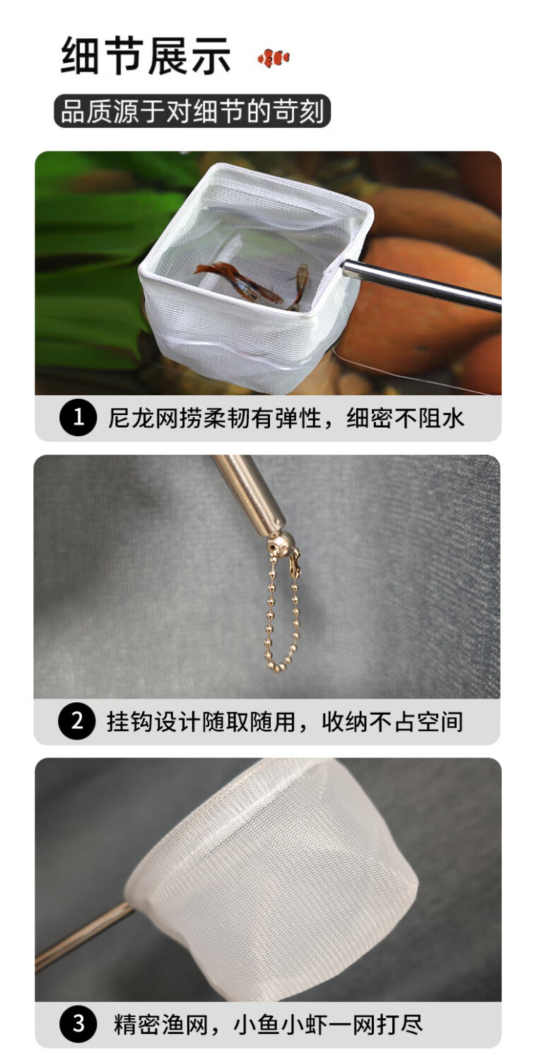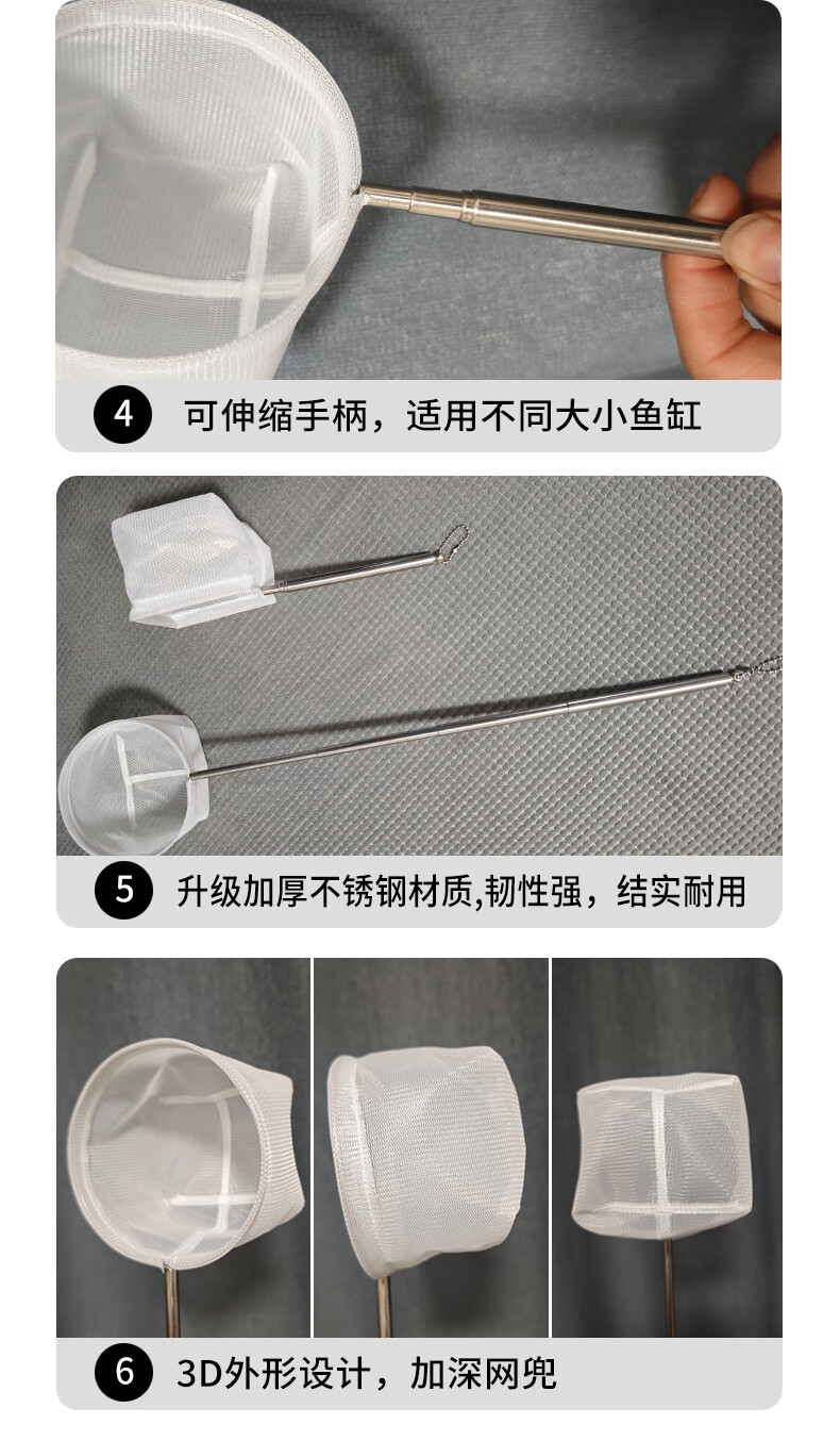 Chaosihui stainless steel retractable fishing net fish tank fishing small 3d fishing net pocket dense net tropical ornamental fish fishing net small square retractable stainless steel