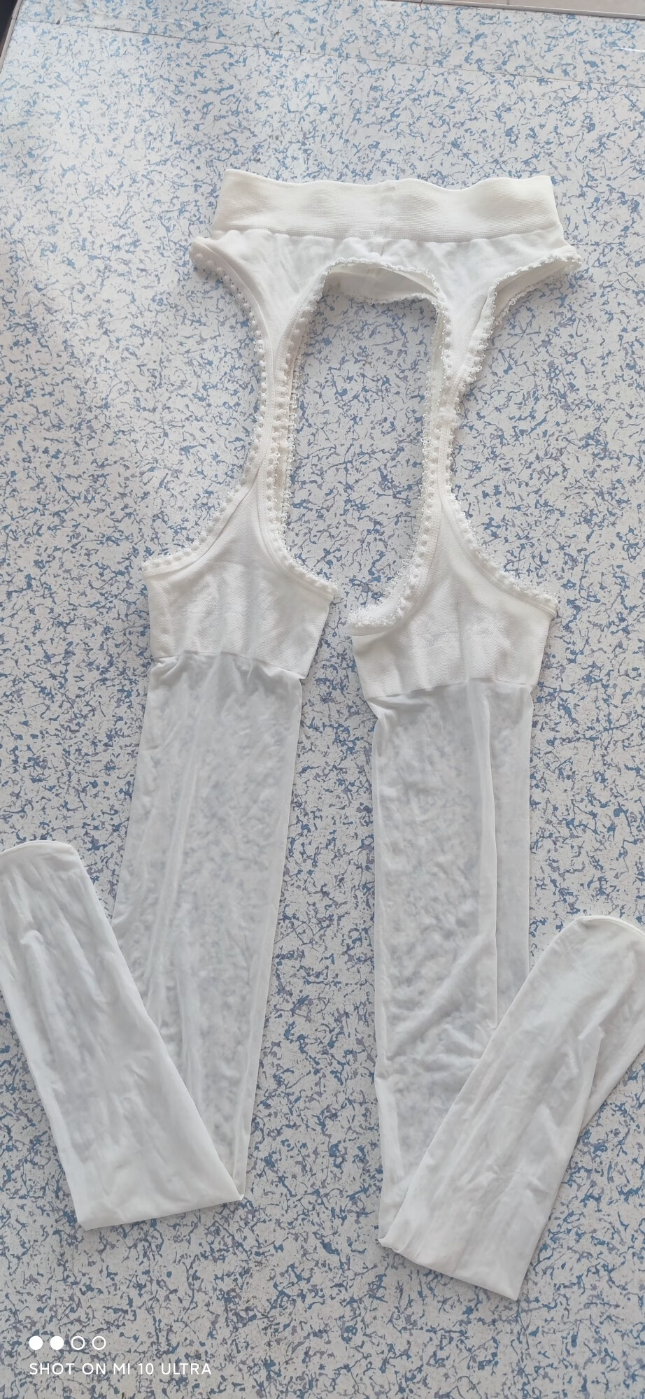 Feiyu Tenderness Series Mask Milk Silk Ultra-Thin Four-Side Crotch Hollow Lace Suspender One-piece Sexy Long Pantyhose White One Size