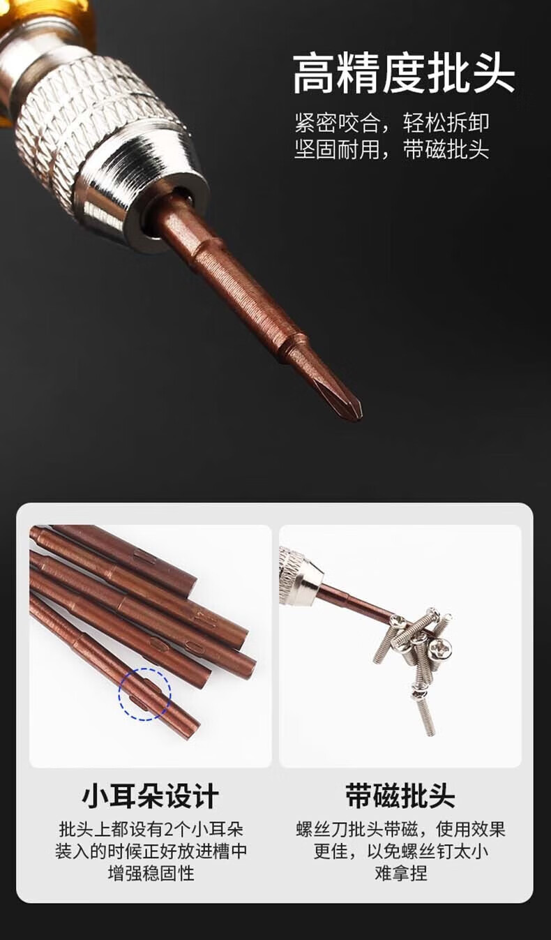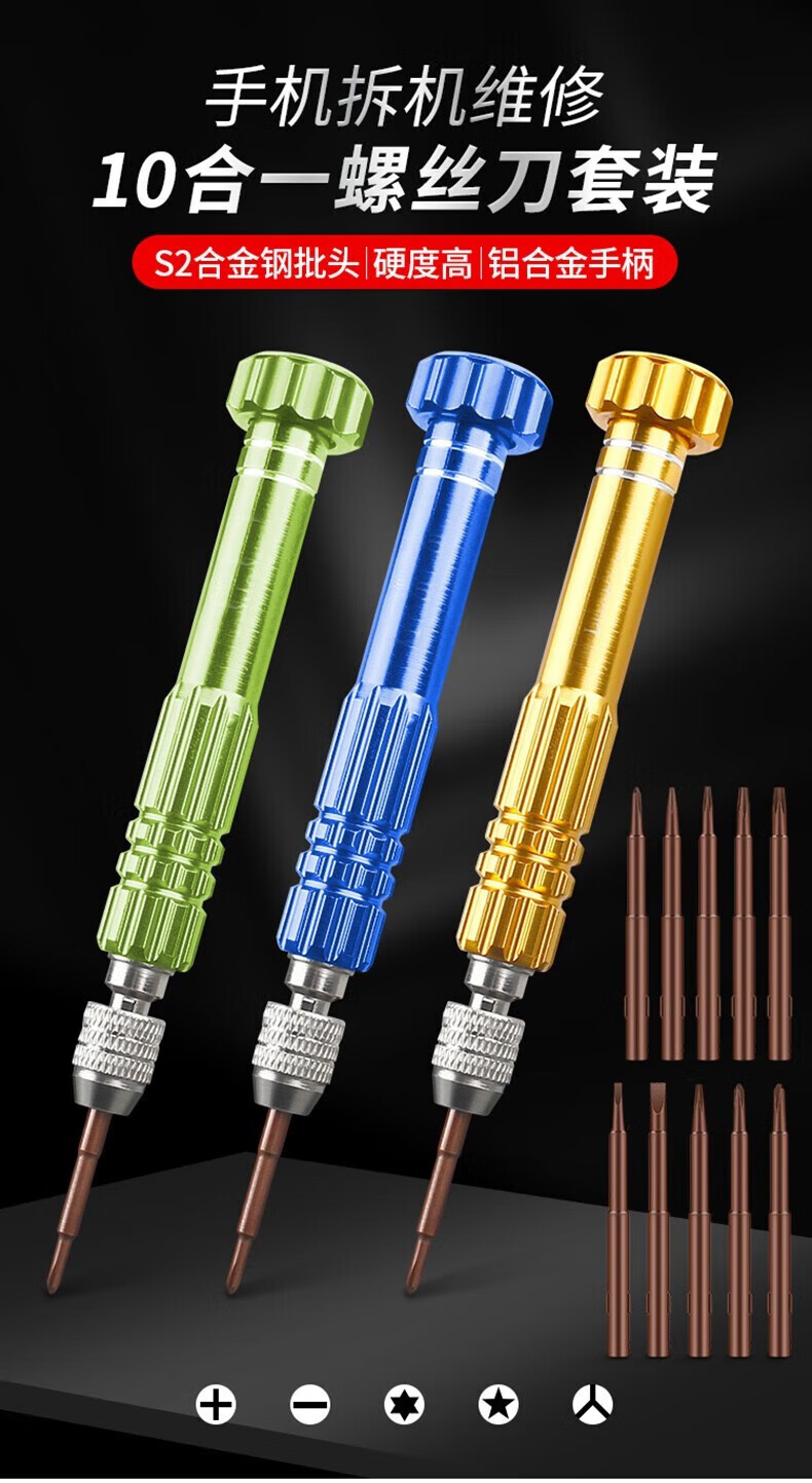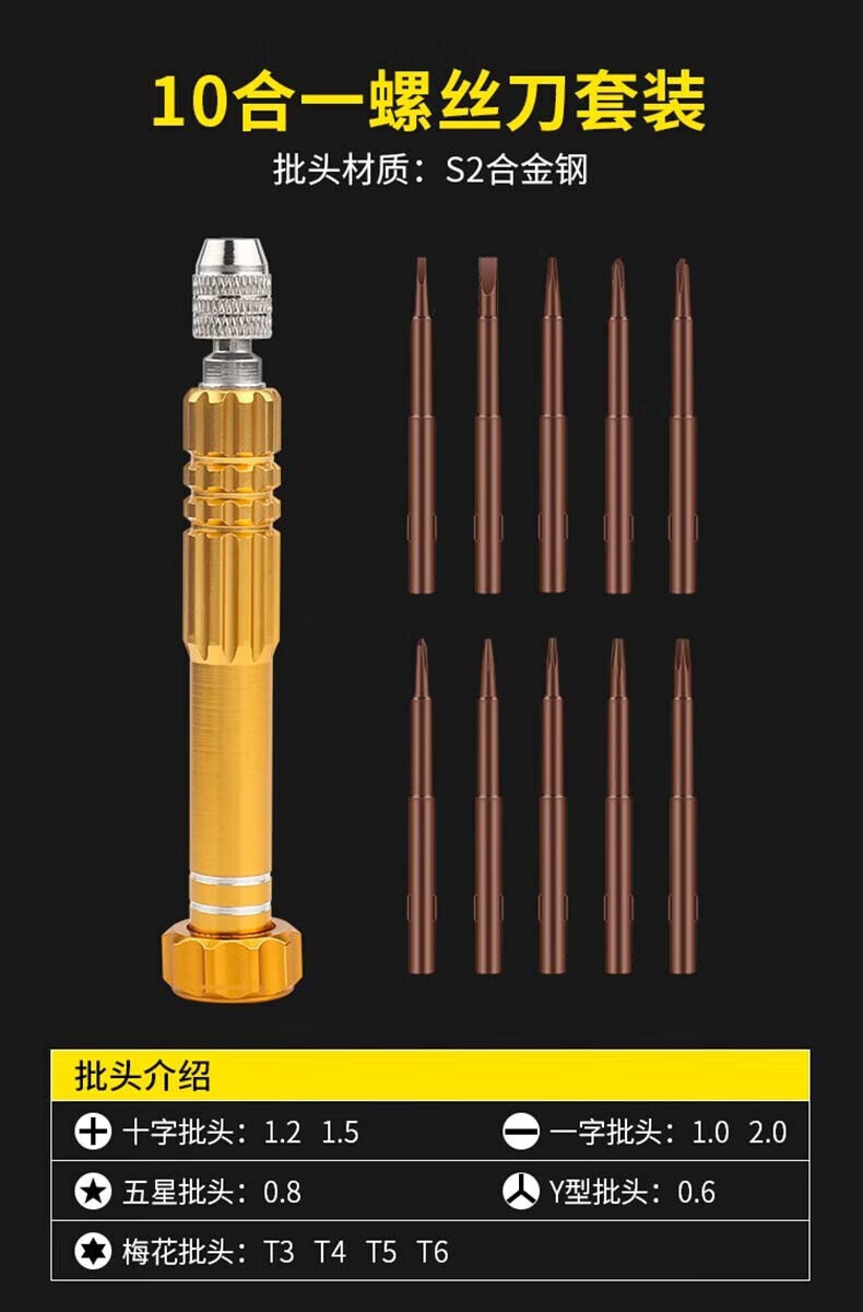 Xiwen 10-in-1 precision screwdriver set, magnetic screwdriver, small repair and disassembly tool for mobile phones, yellow
