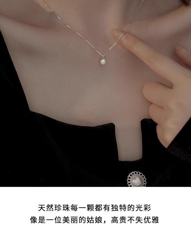 Zhuxi single pendant freshwater pearl necklace women's 2025 new sterling silver necklace high-end jewelry authentic clavicle chain 6MM natural pearl 999 pure silver