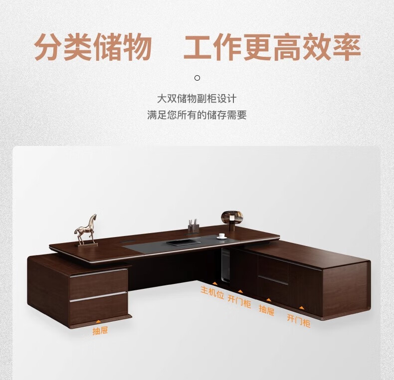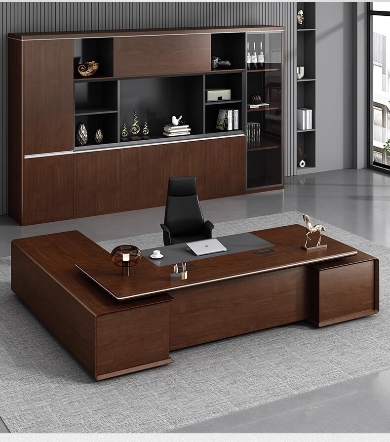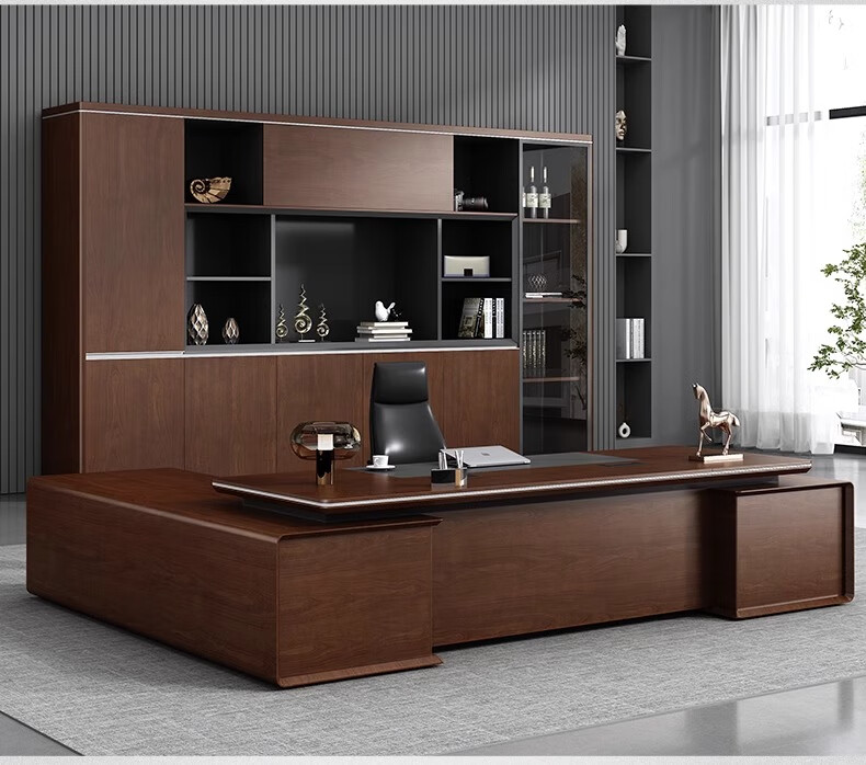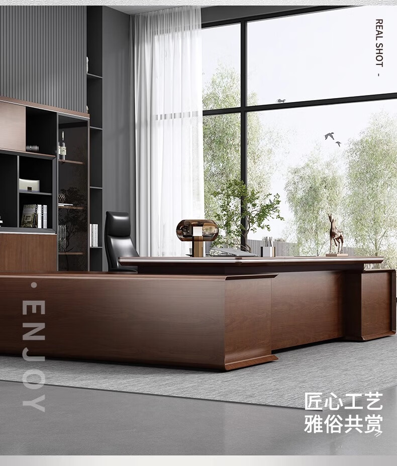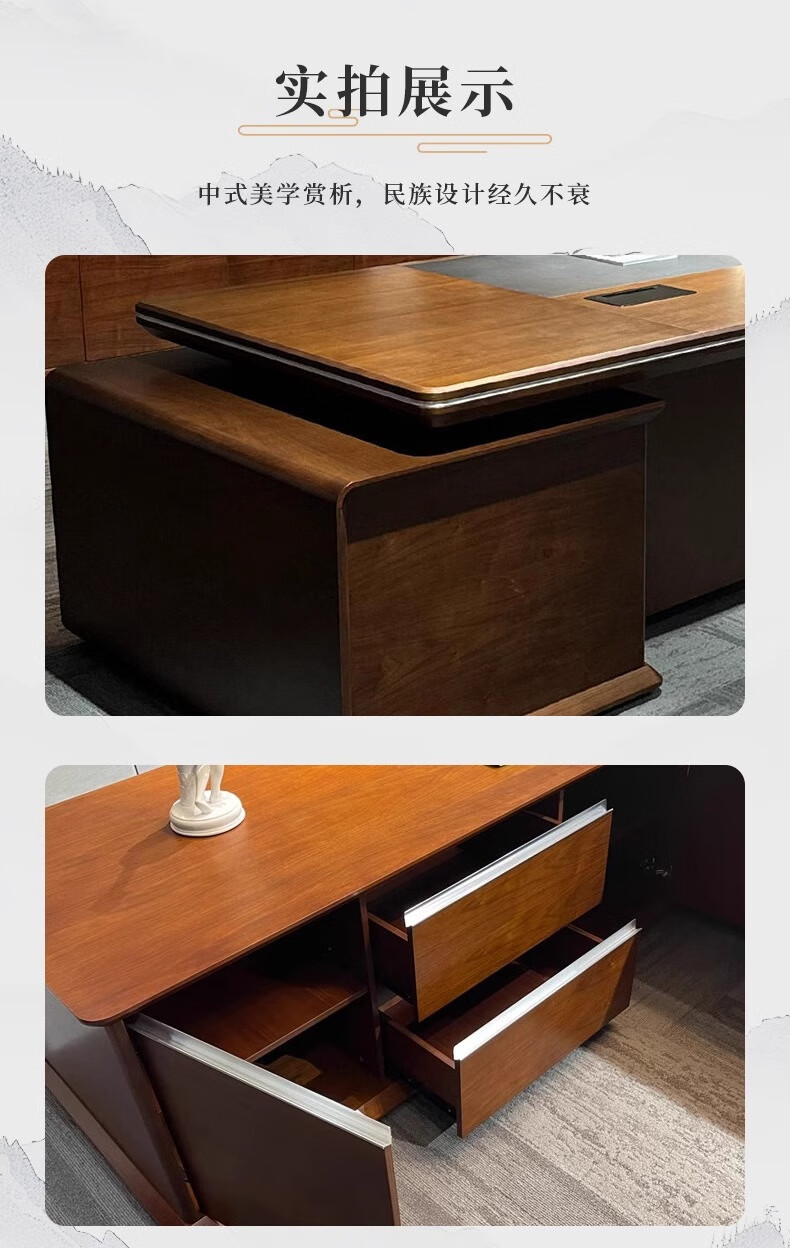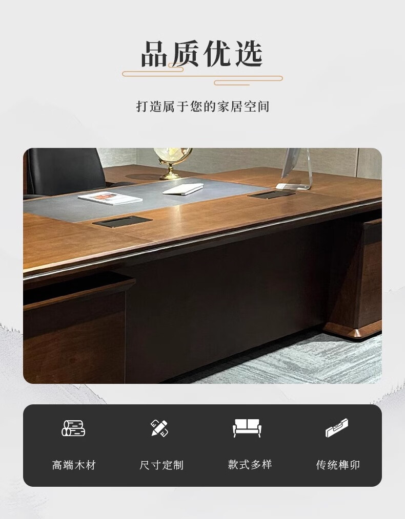 Aosenmingxin Chinese high-end boss desk President desk solid wood walnut mountain pattern desk Chairman's office executive desk 2.0 meters boss desk