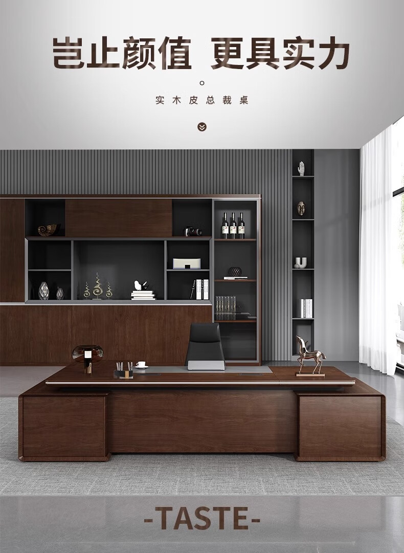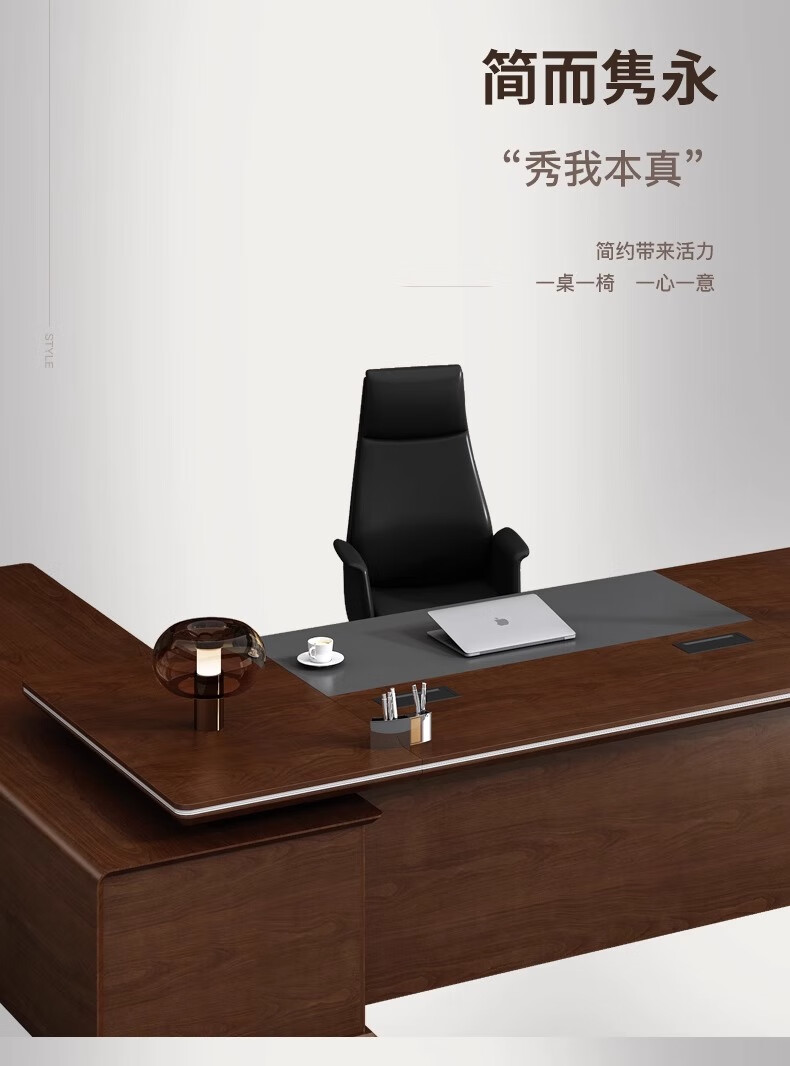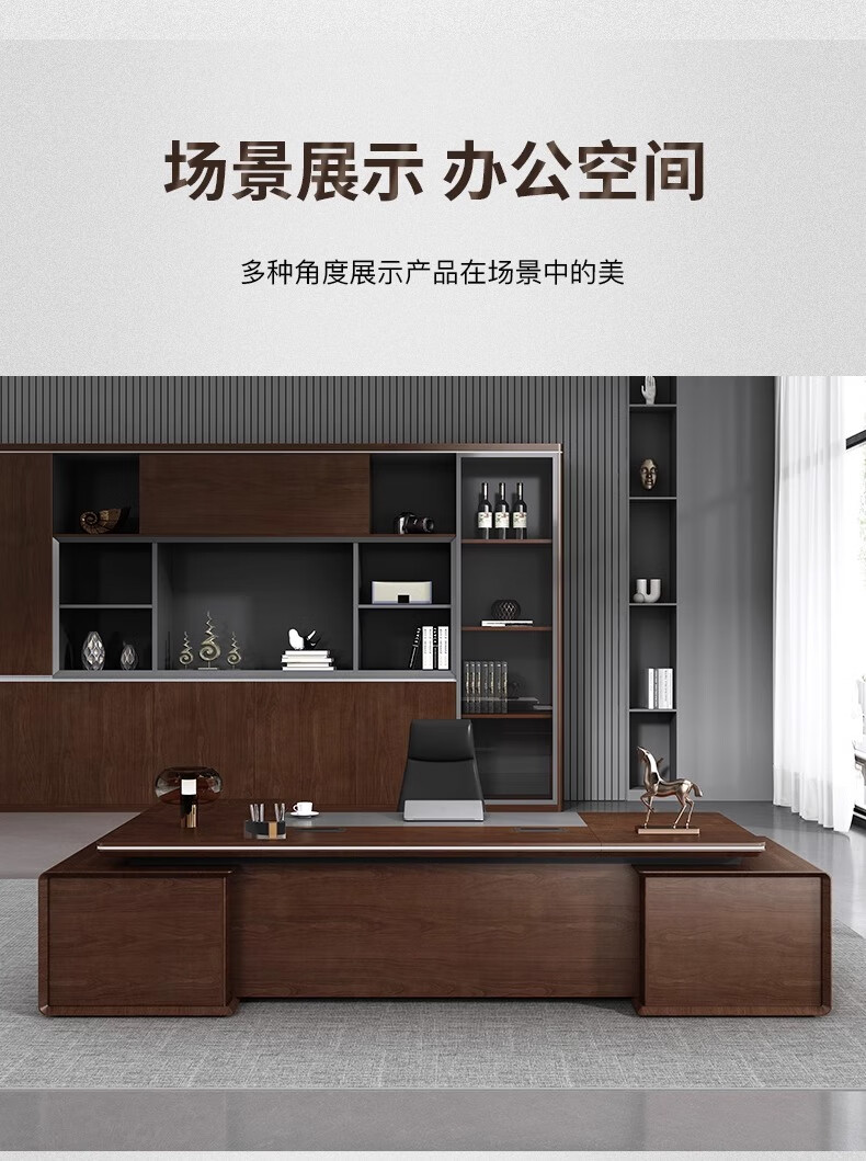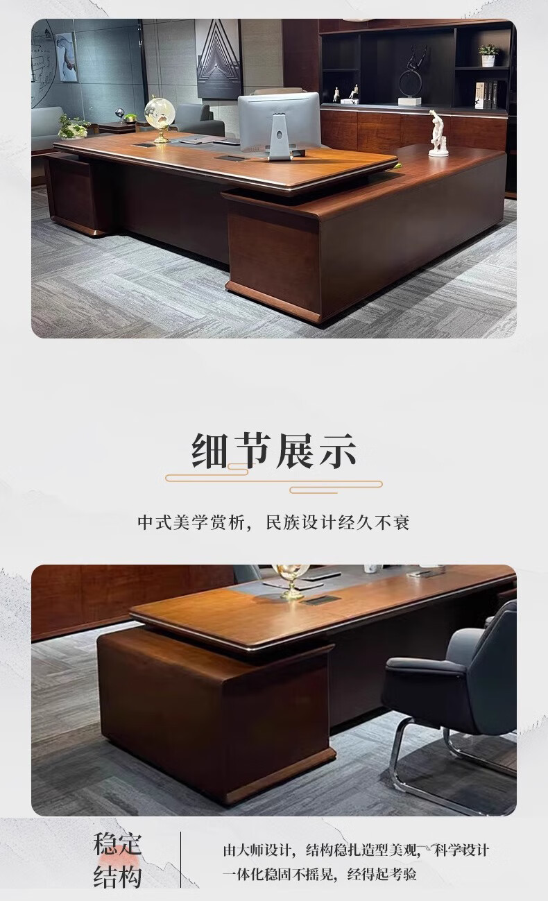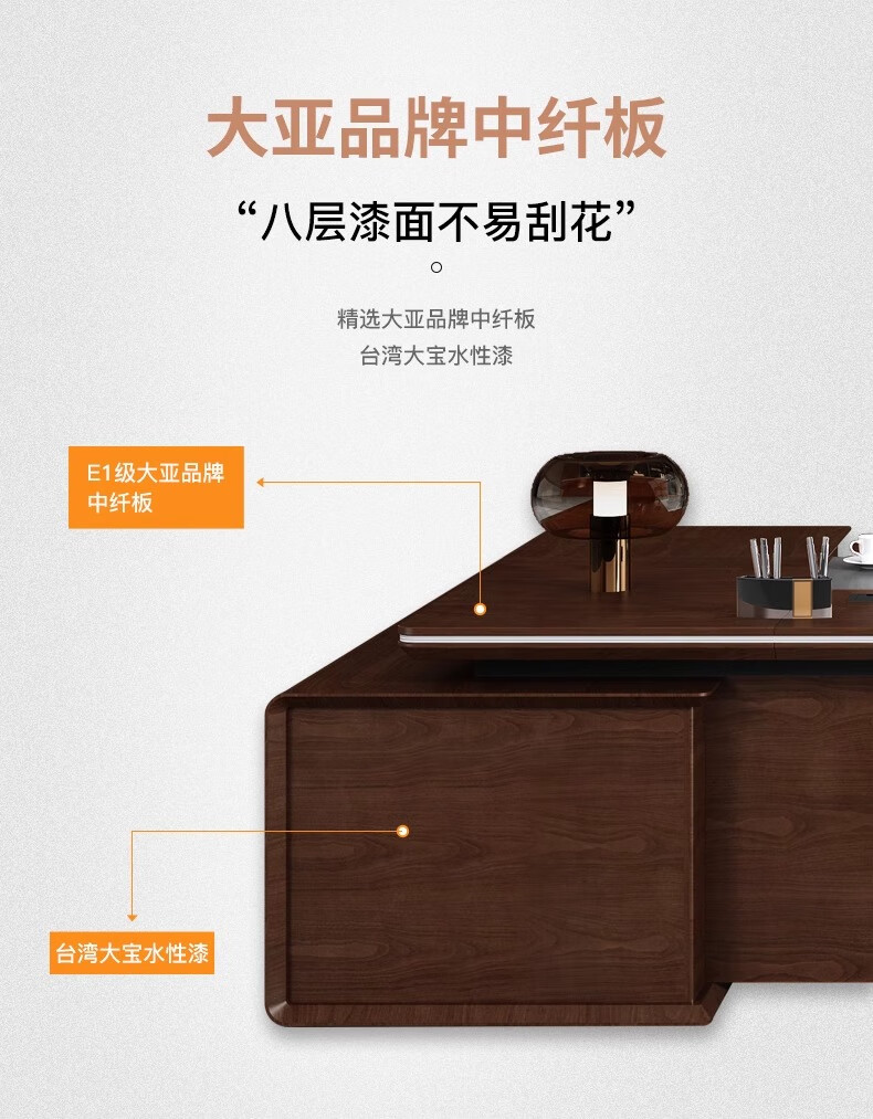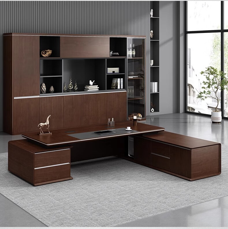 Aosenmingxin Chinese high-end boss desk President desk solid wood walnut mountain pattern desk Chairman's office executive desk 2.0 meters boss desk