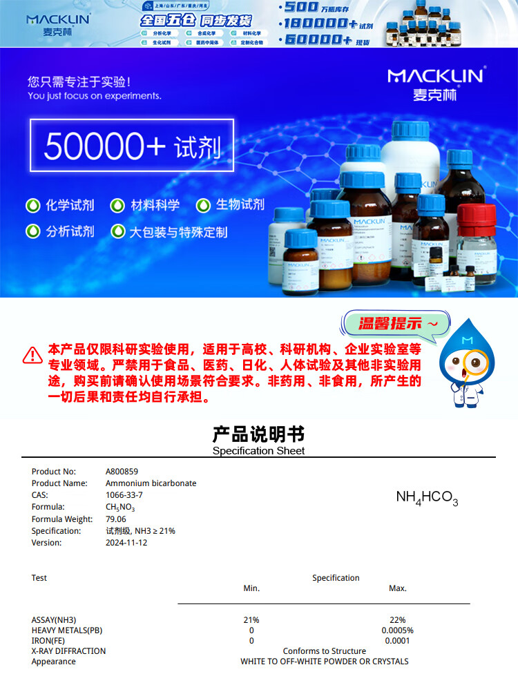 Macklin ammonium bicarbonate CAS 1066-33-7 A800859-500g