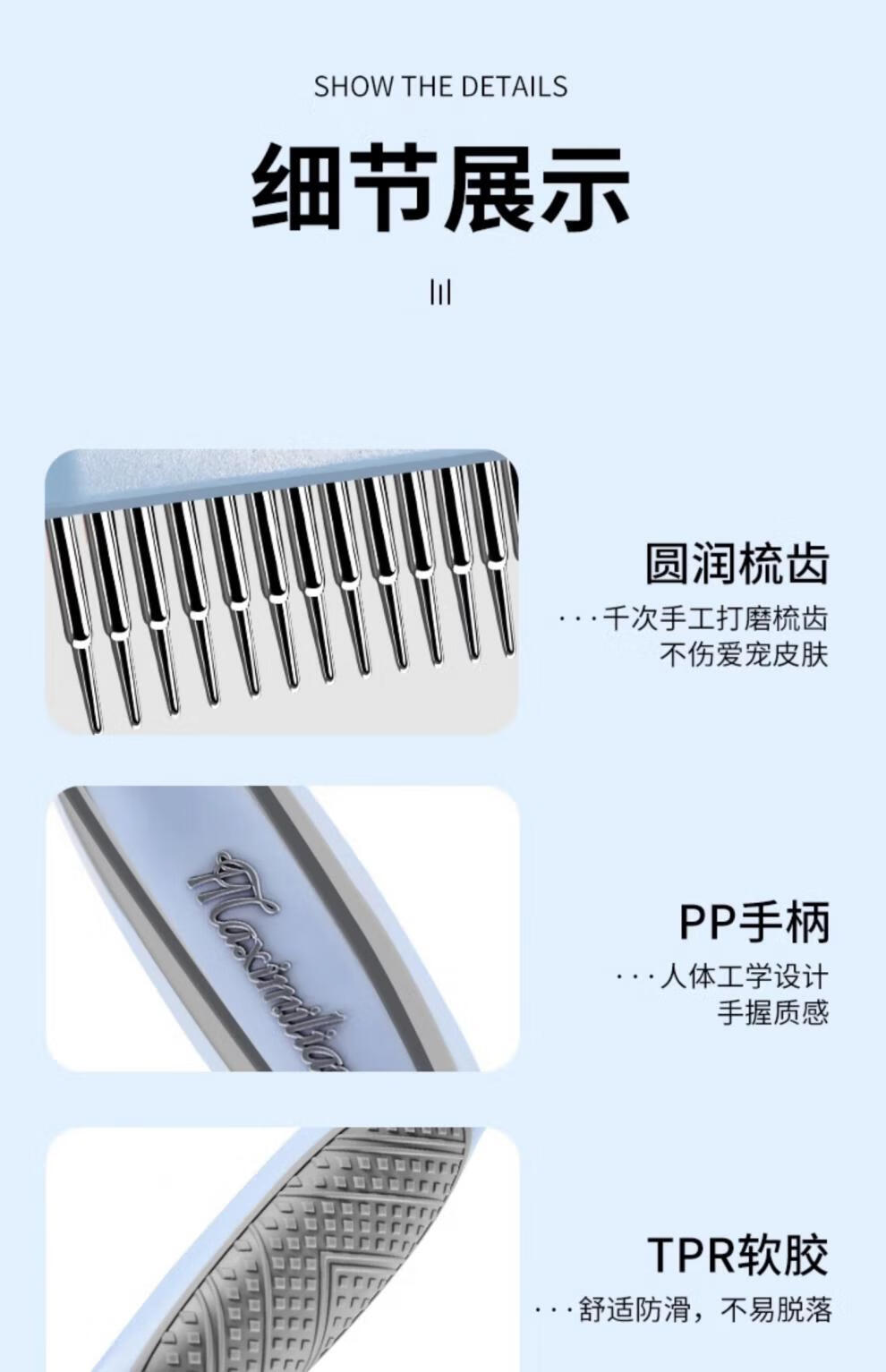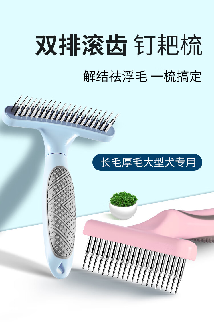 Pekingese dog hair comb, border collie comb, golden retriever pet nail rake comb, large dog Samoyed dog dehairing brush, sky blue massage nail rake comb, special for medium and large dogs