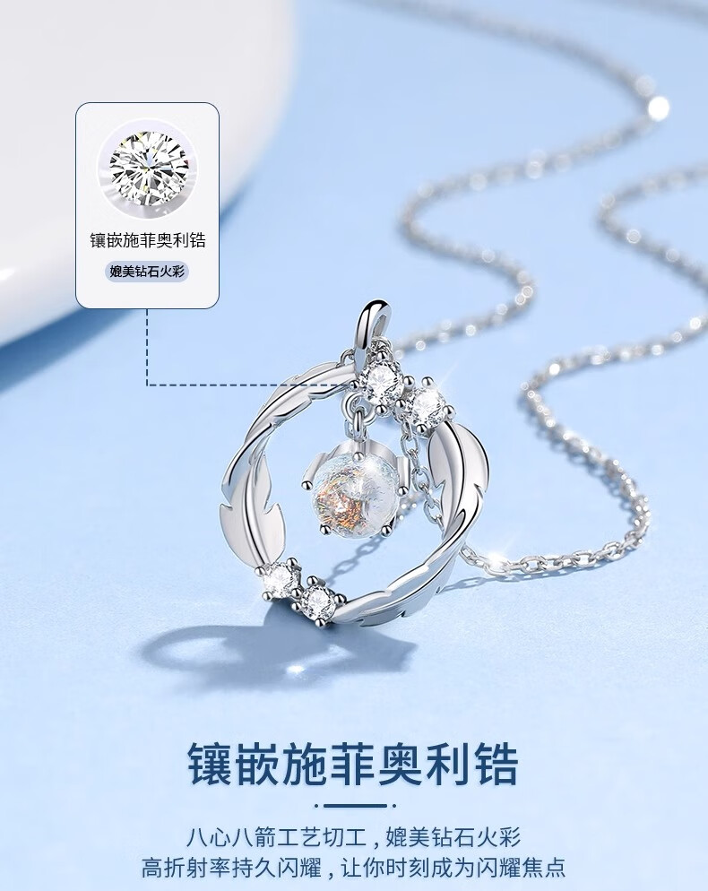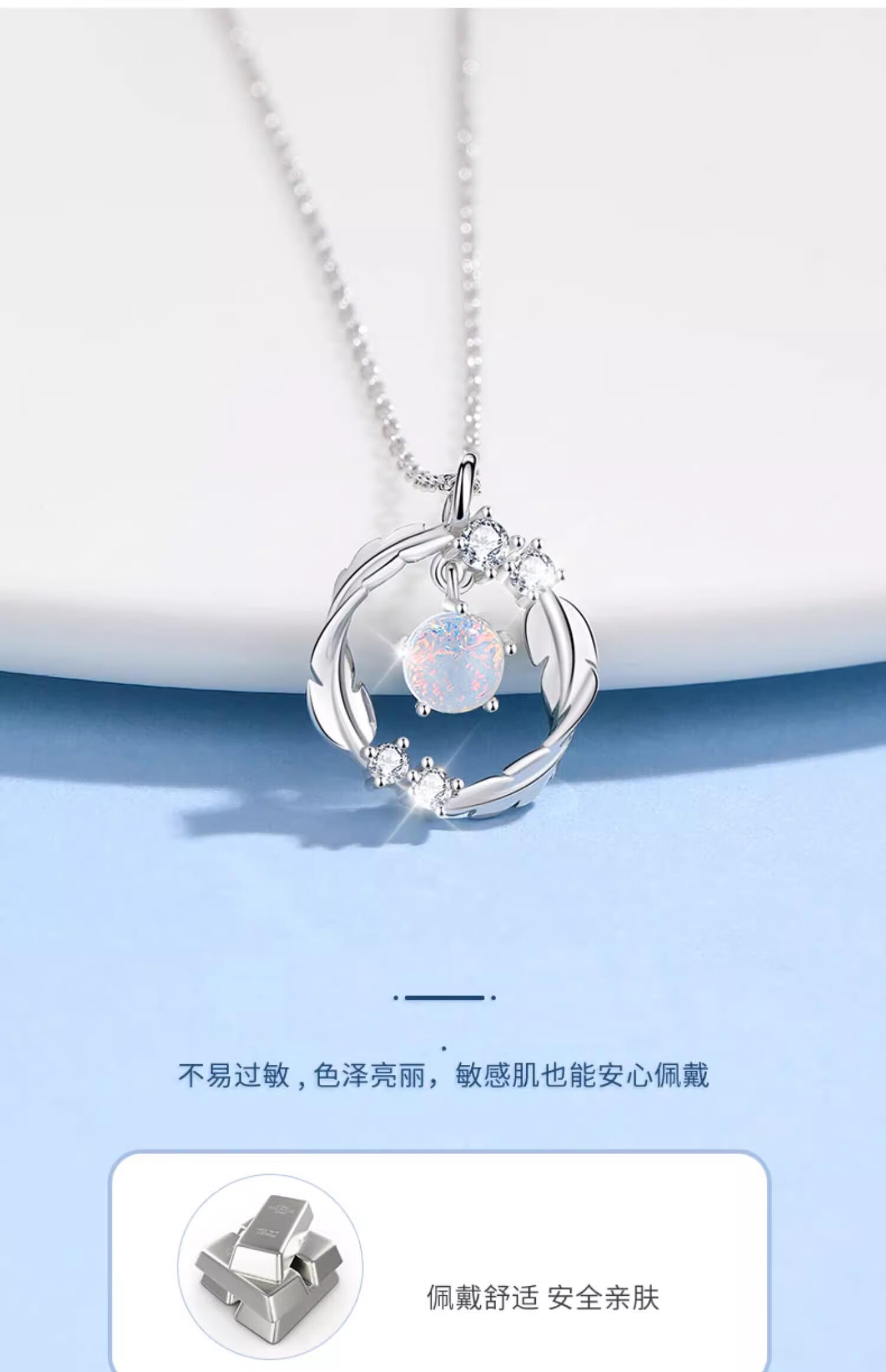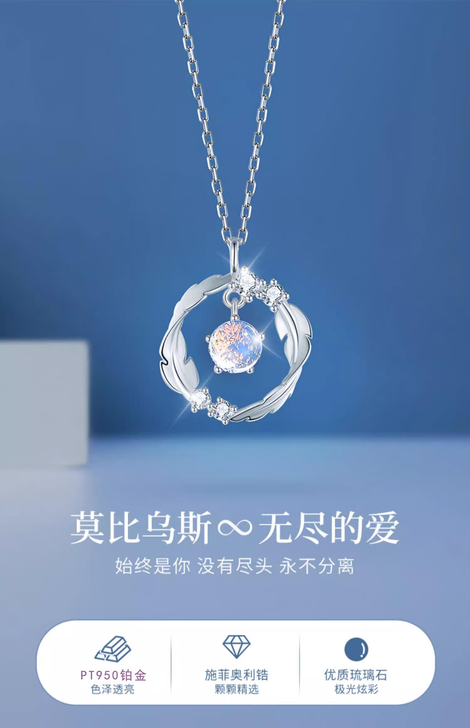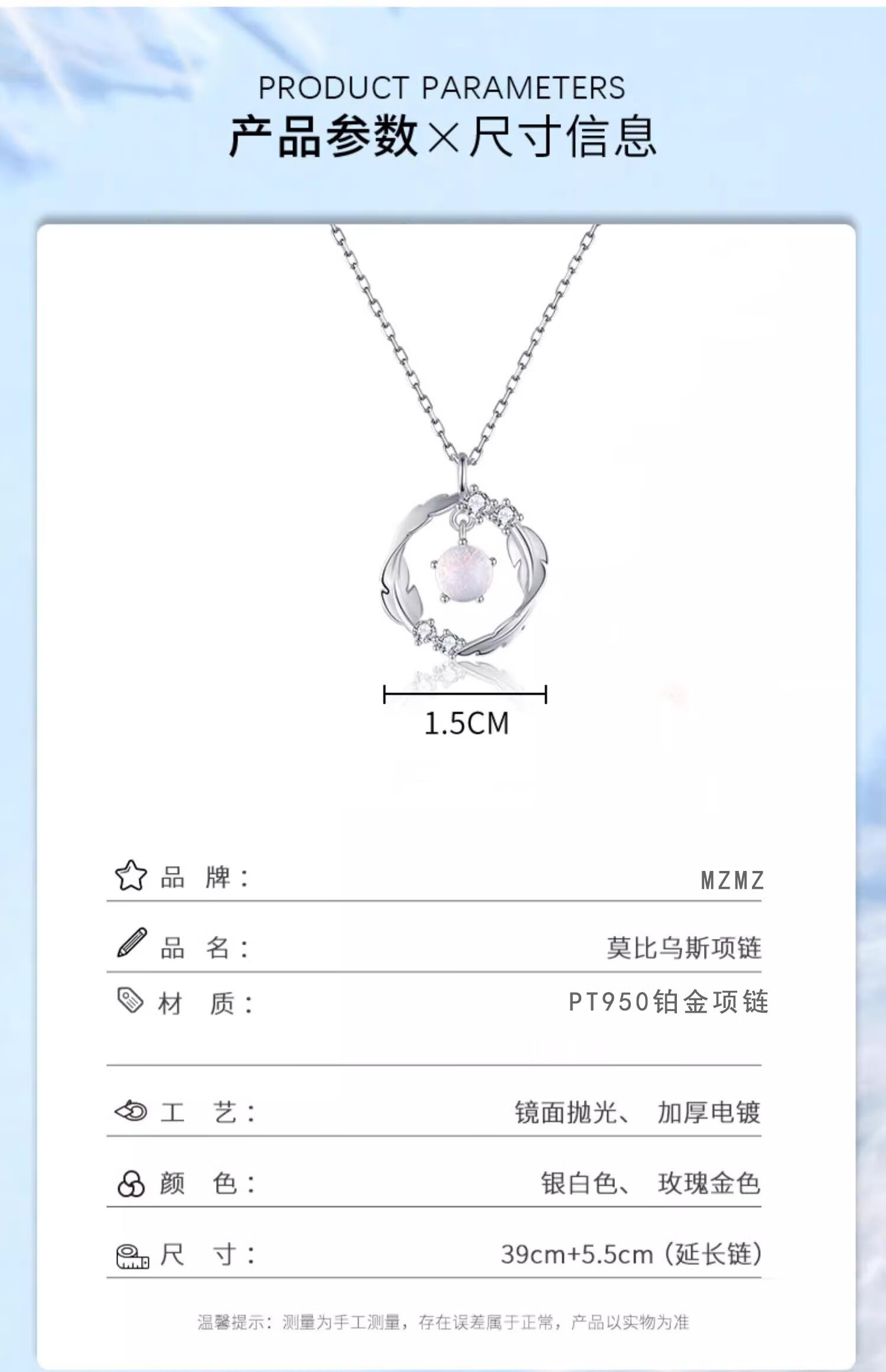 MZMZ platinum necklace for women pt950 platinum fashion new pendant clavicle chain Valentine's Day birthday gift for girlfriend PT950 platinum necklace + blue eucalyptus bird pendant