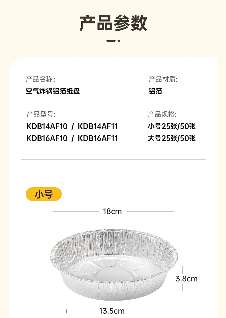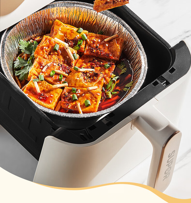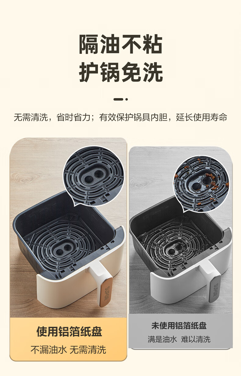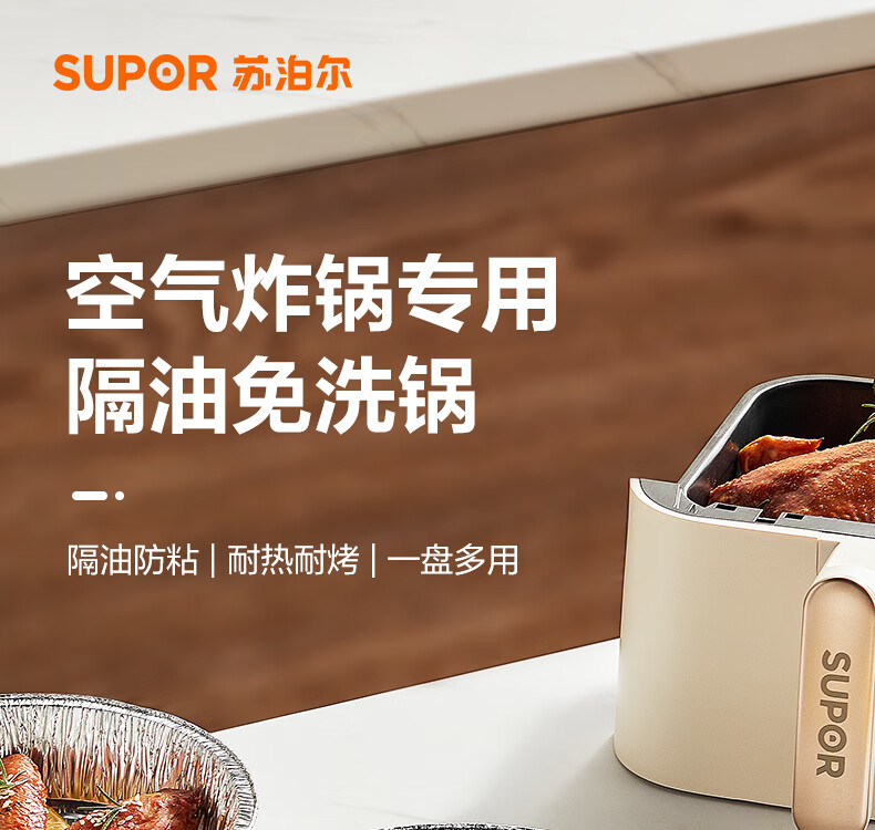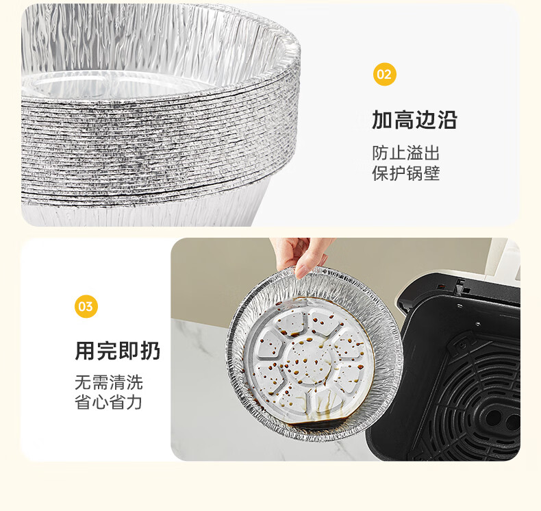 SUPOR Heightened tinfoil plate, special paper for air fryer, oil-proof and anti-stick tinfoil bowl, tinfoil paper, universal oven baking pan, large tinfoil paper, diameter 16cm*50 sheets