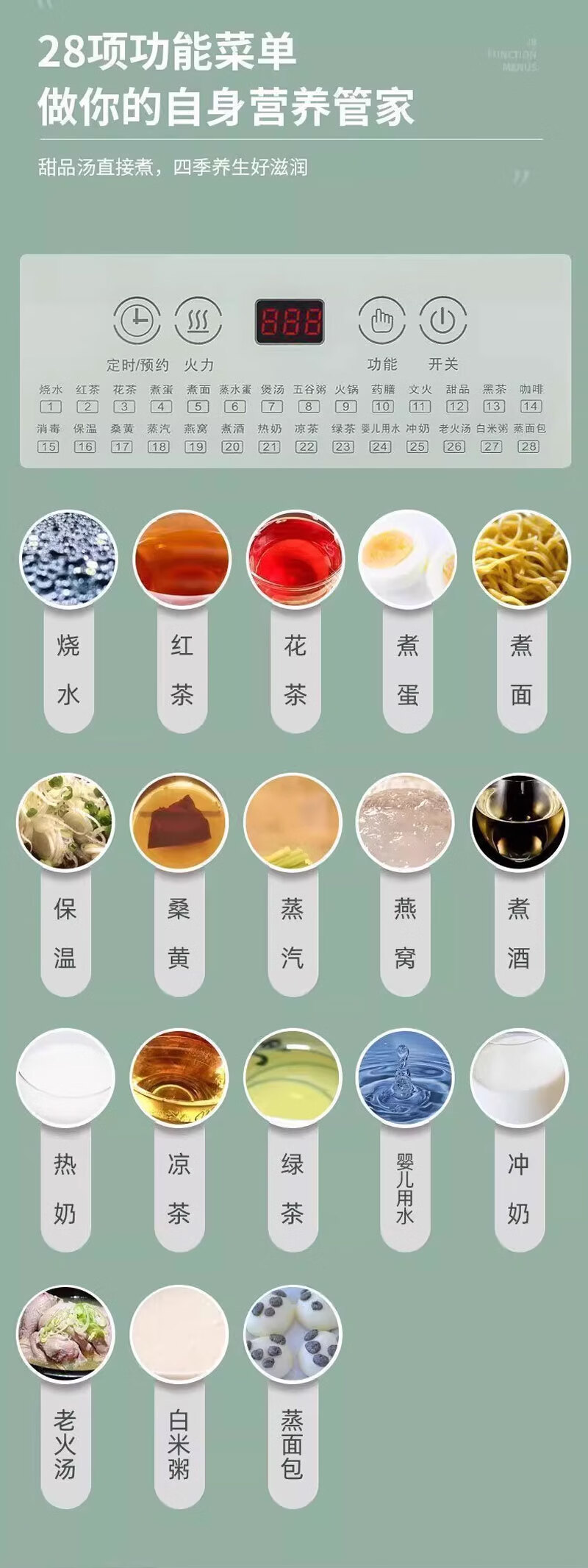 Power health kettle, kettle, hot water kettle, constant temperature kettle, teapot, teapot, integrated glass, fully automatic, small household, multifunctional office, large capacity 1.8L, upgraded thickened glass + 28 functions