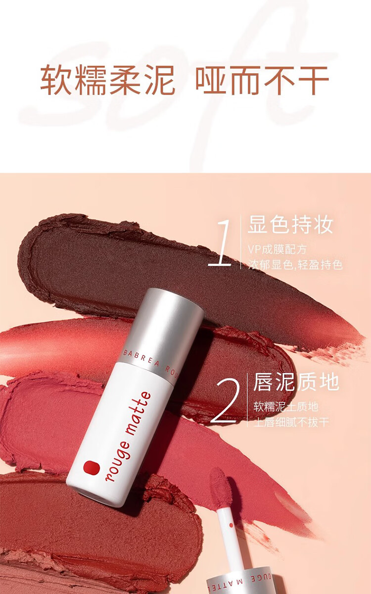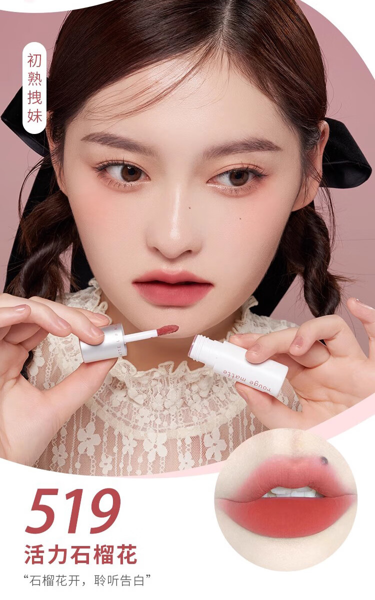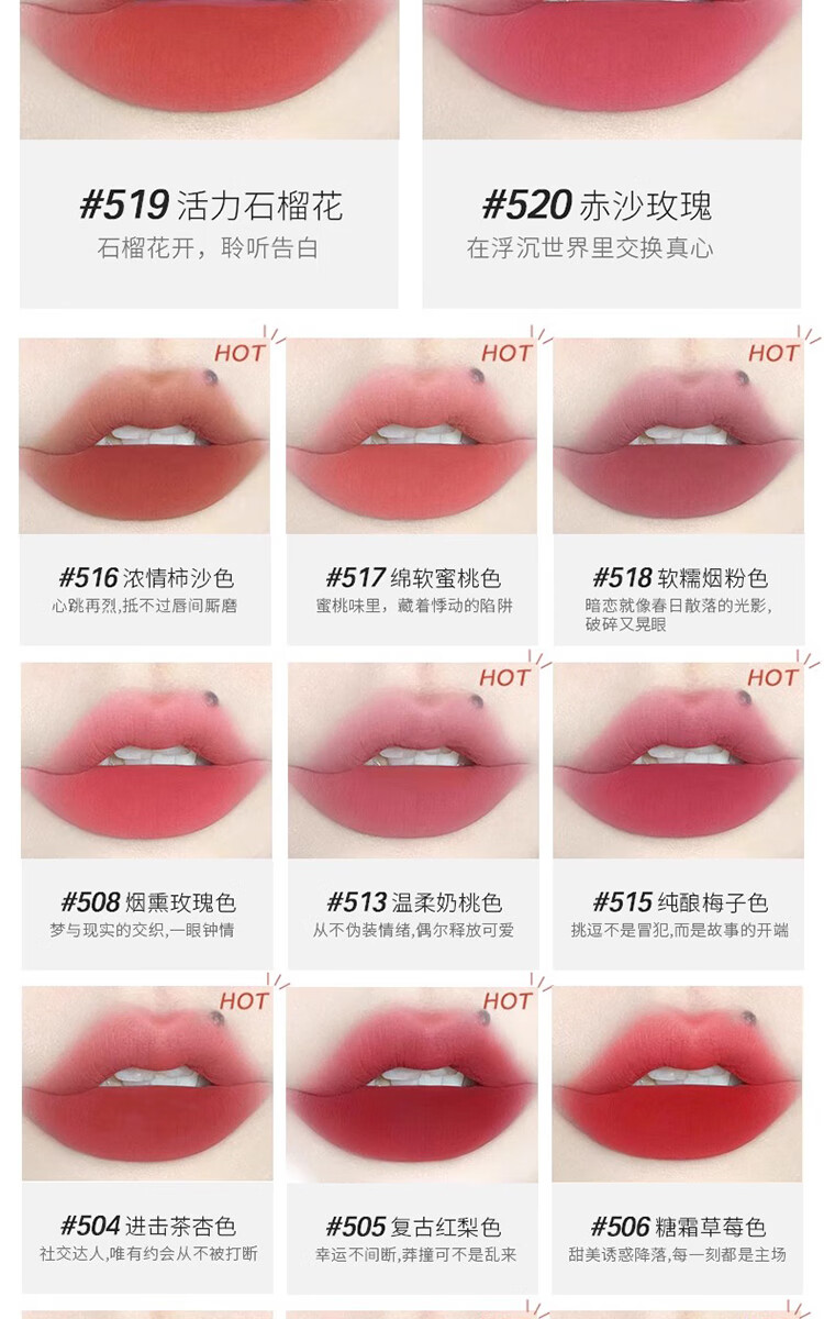 Barbera Lip Mud Lip Glaze Matte matte affordable Barbera lipstick is not easy to stick to the cup and shows pigmentation New Year's gift for students #519 First-ripened Girl (Vibrant Pomegranate Color)