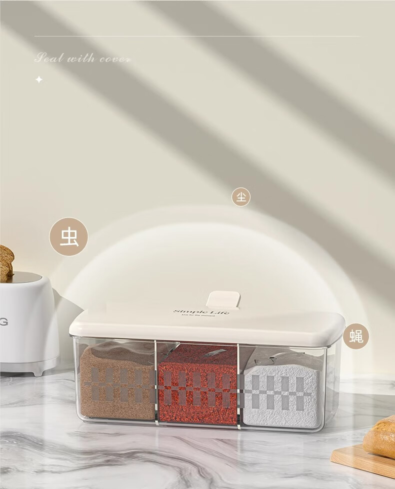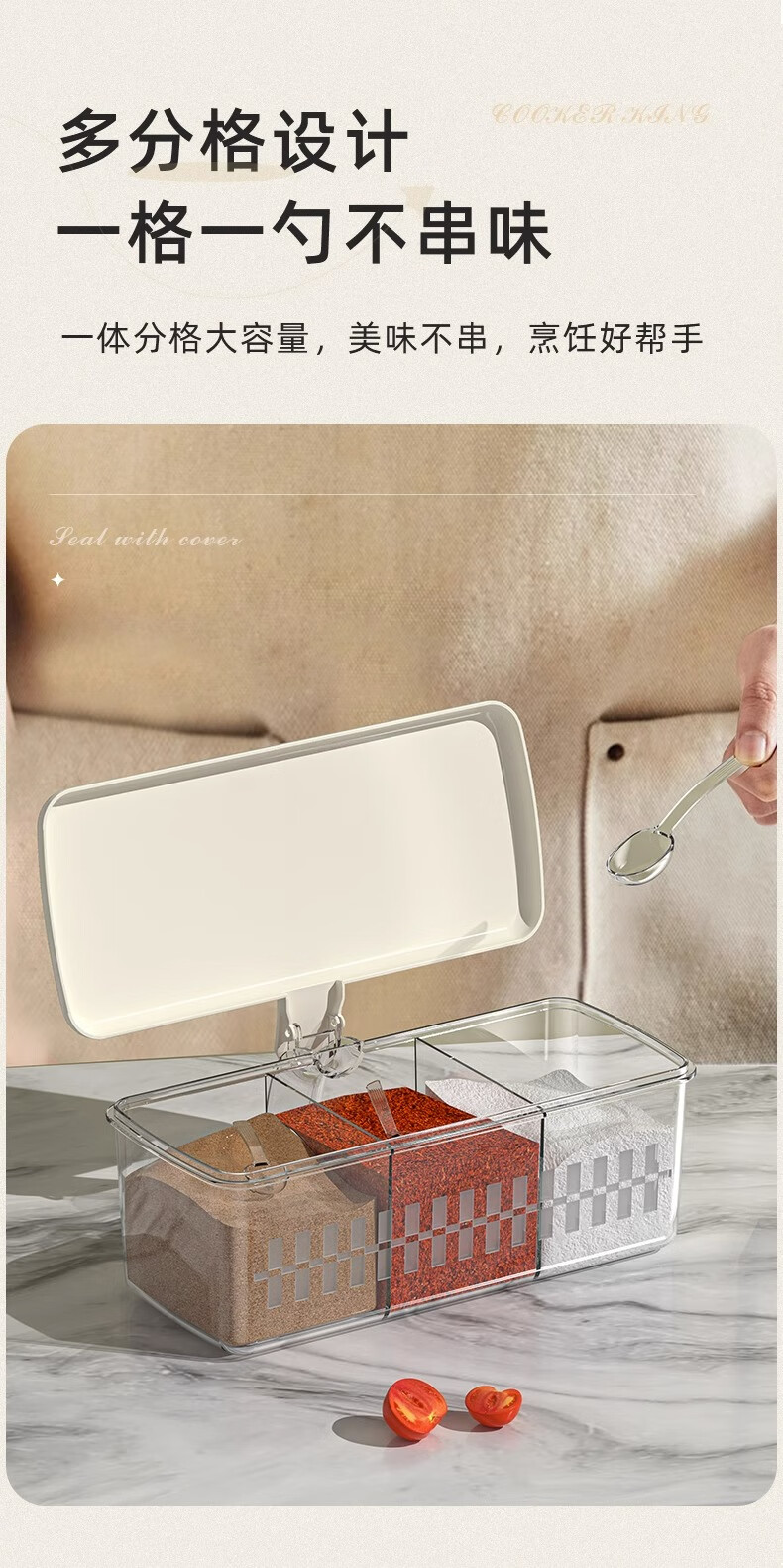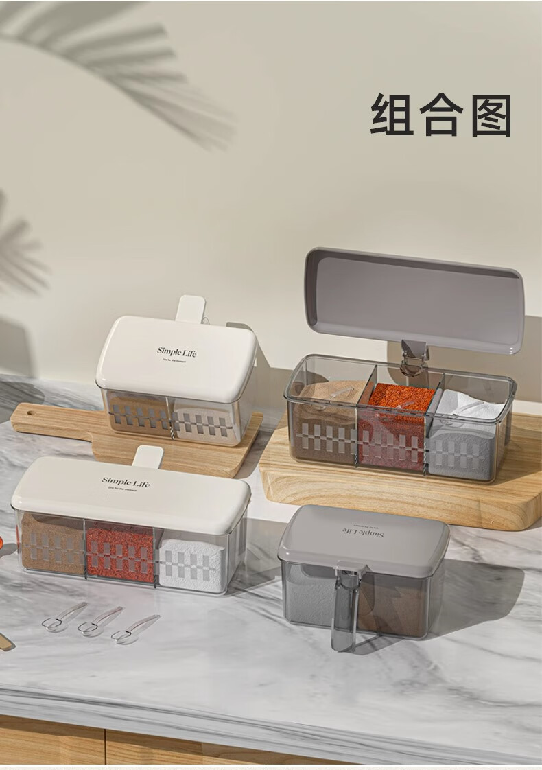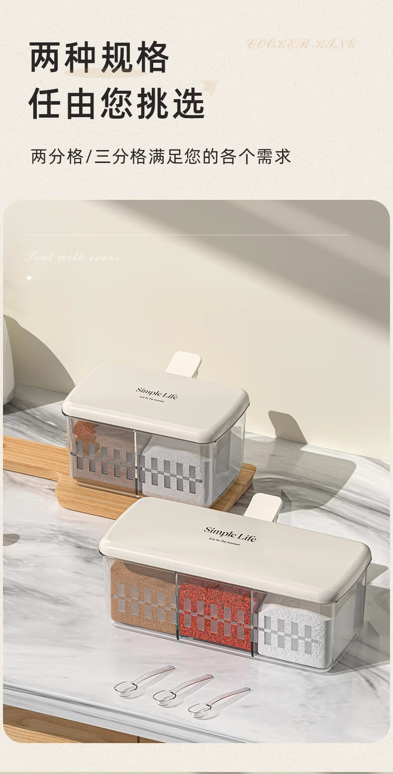 Seasoning box home kitchen seasoning jar combination set one-piece multi-compartment salt, MSG and pepper storage condiment seasoning bottle, cream and white two compartments, refuse odor/free 2 spoons, no Specifications