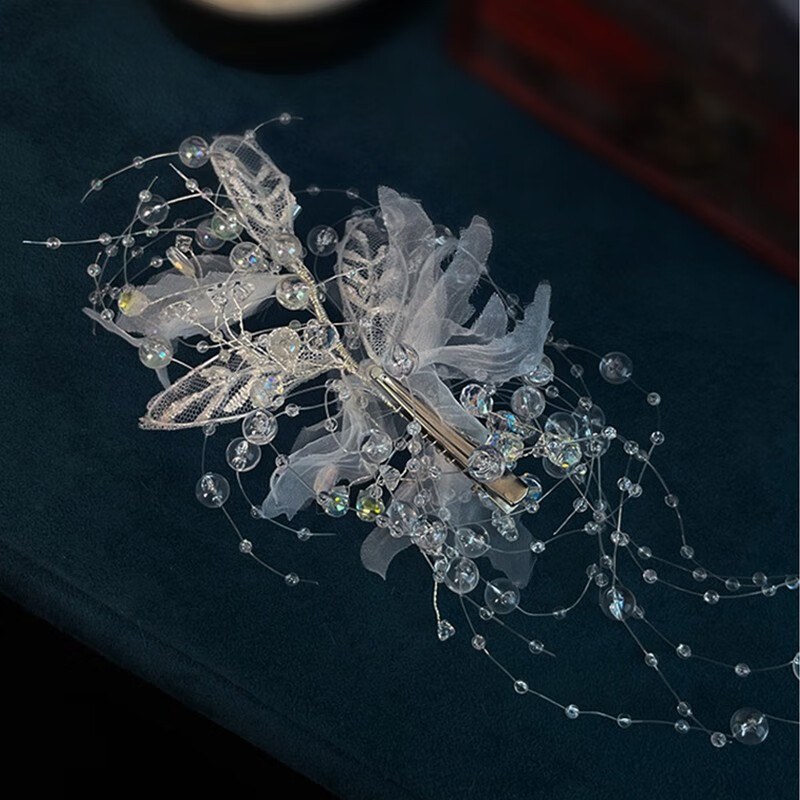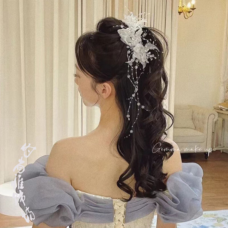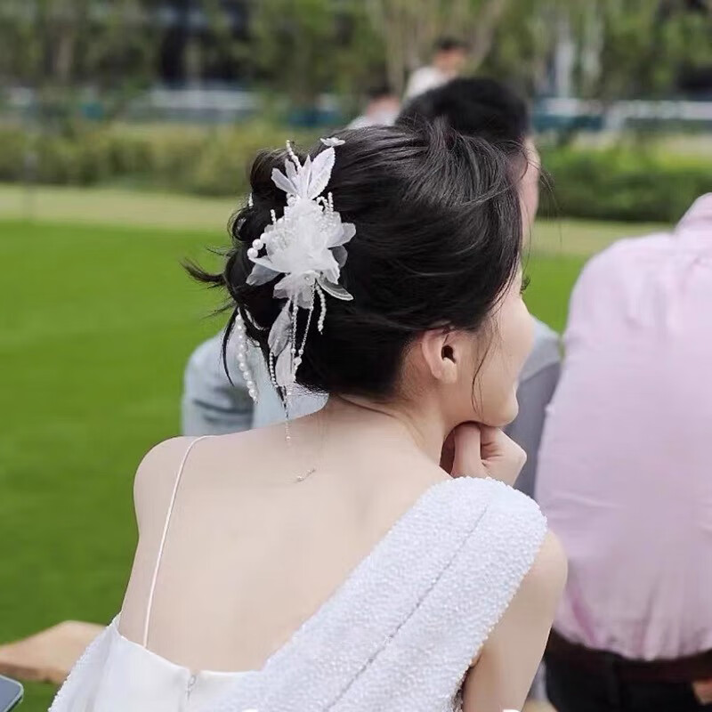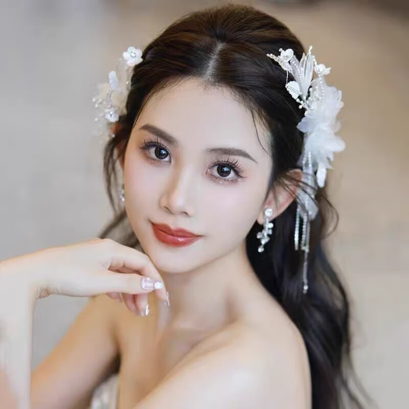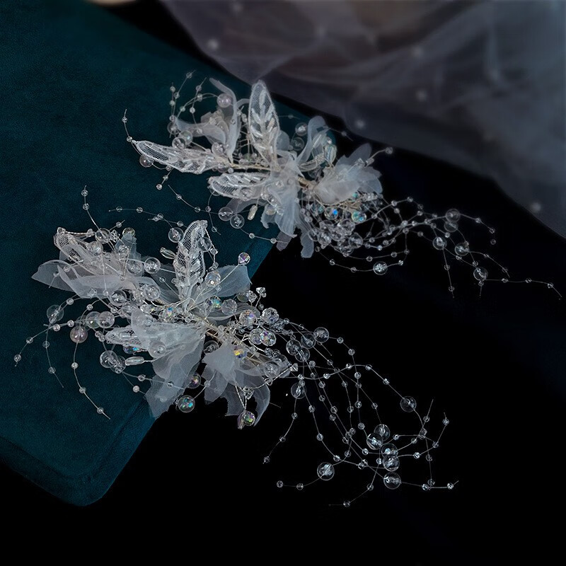 Olevo new flower bridal headdress fairy style edge clip tassel clip Korean fashion wedding dress wedding high-end hair accessories crystal transparent tassel clip set