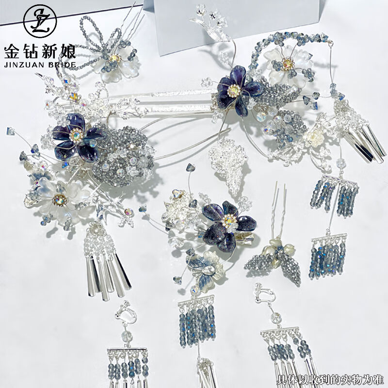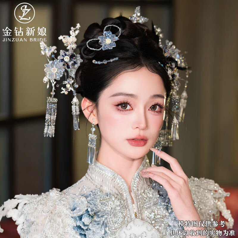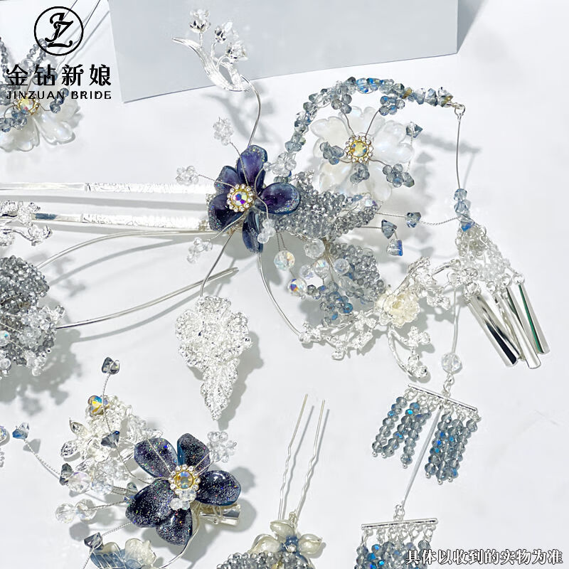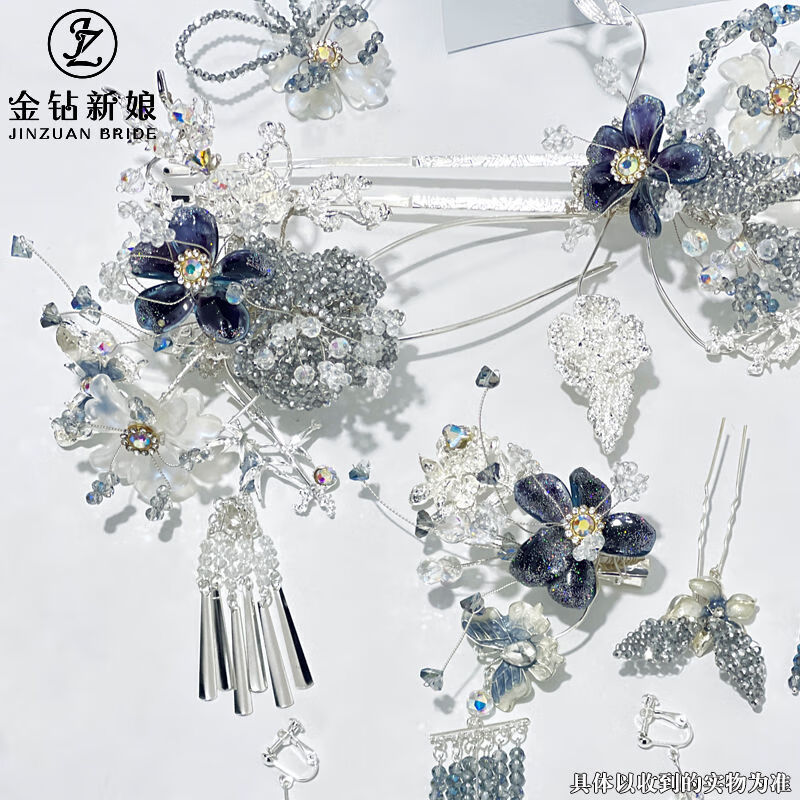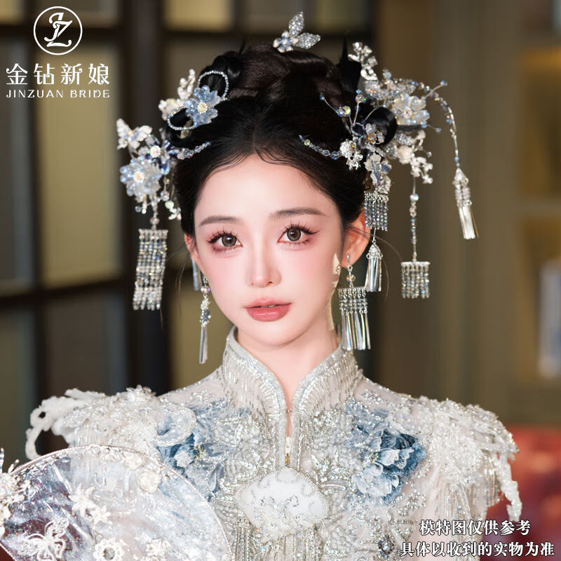 Olevo bride Chinese-style Xiuhe dress silver headdress age-reducing ancient style Xiuhe hair accessories dragon and phoenix gown wedding ancient costume wedding accessories silver Xiuhe headdress earrings set ear clip style ear