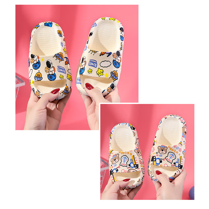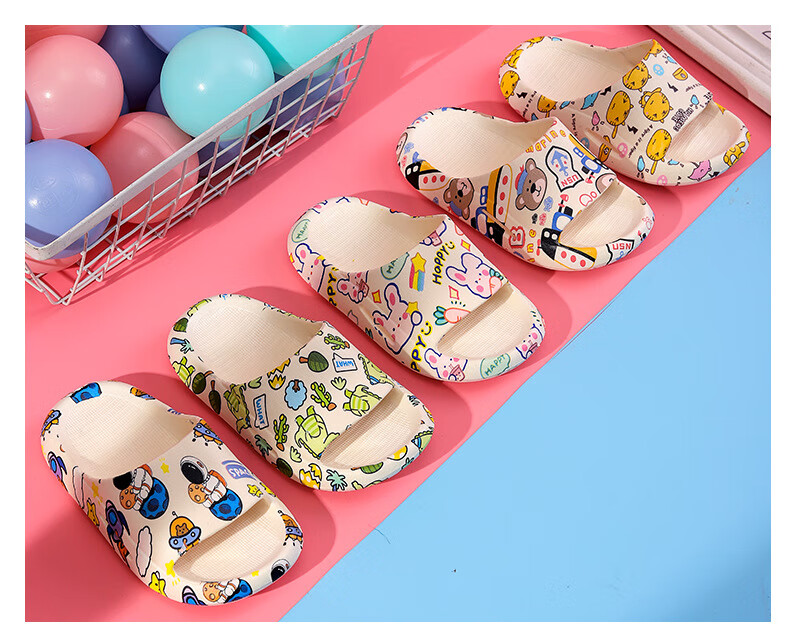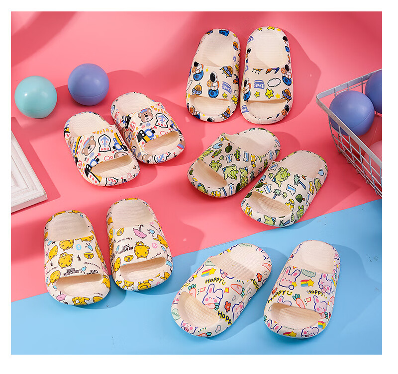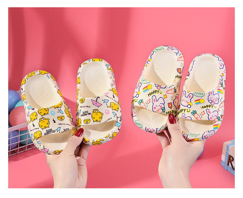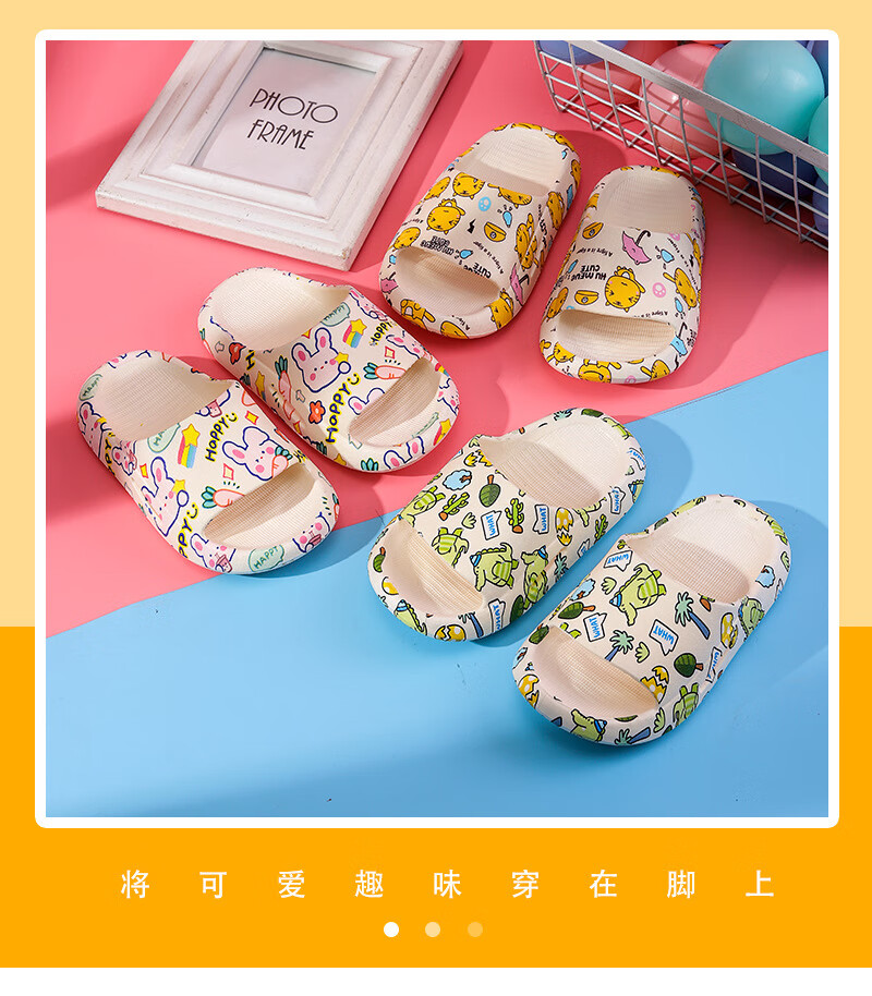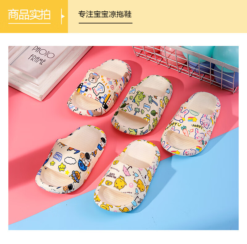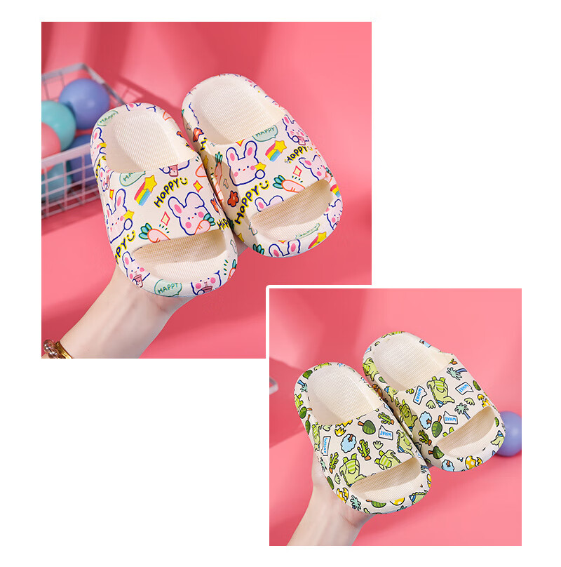 Cartoon printed children's slippers summer household soft-soled baby girl's slippers bathroom PVC boys' slippers comfortable pink bunny 26-27 (foot length 160mm)