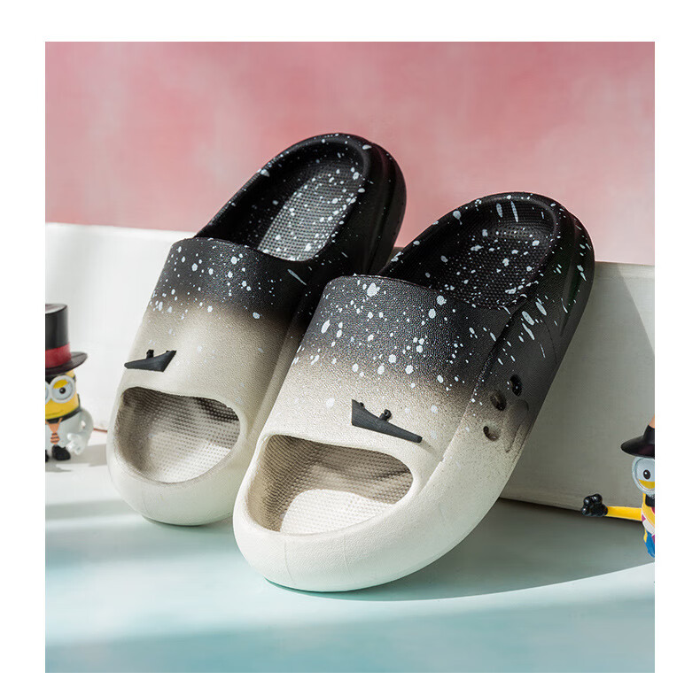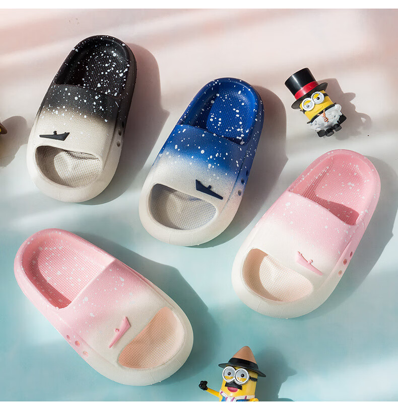 Children's slippers, fashionable gradient summer middle-aged children's home slippers, soft soles, comfortable outer wear, boys' sandals and slippers, gradient black 32/33 (suitable for feet 19 cm long)