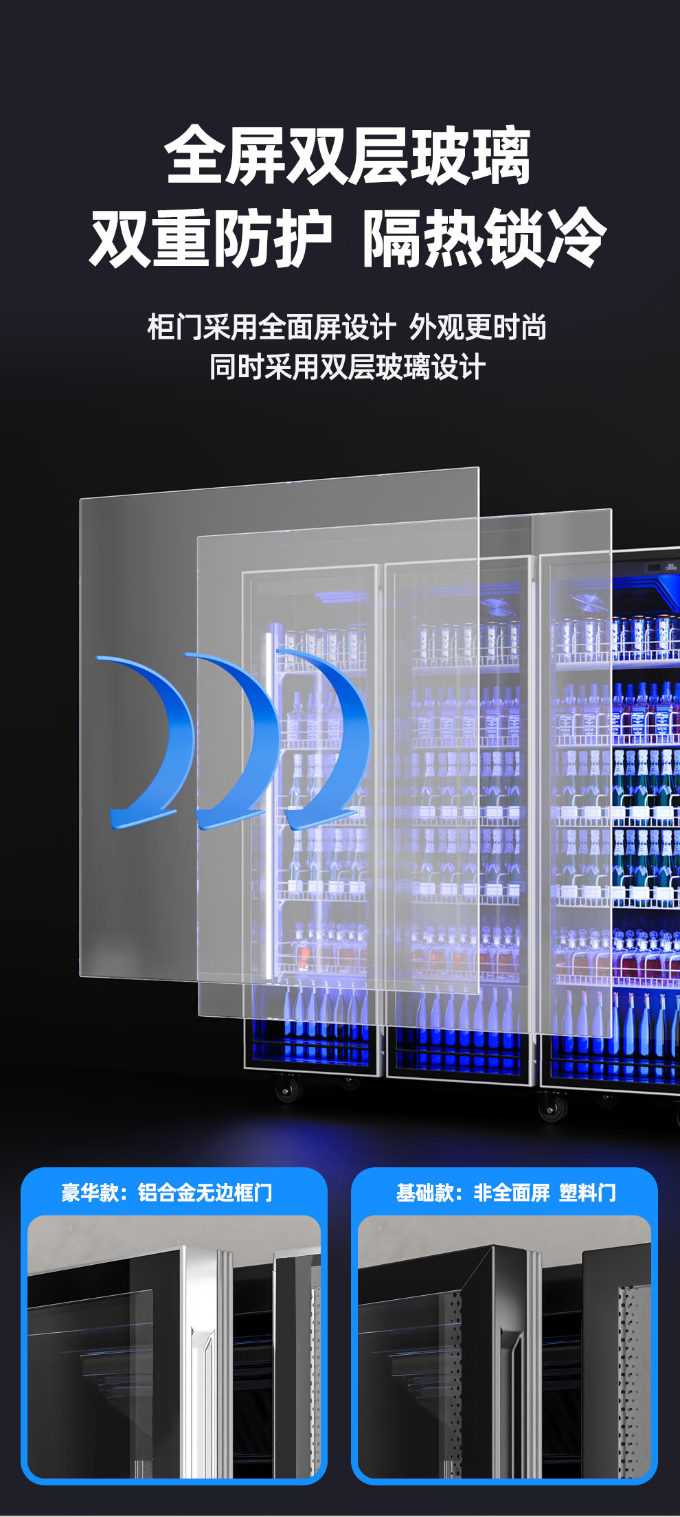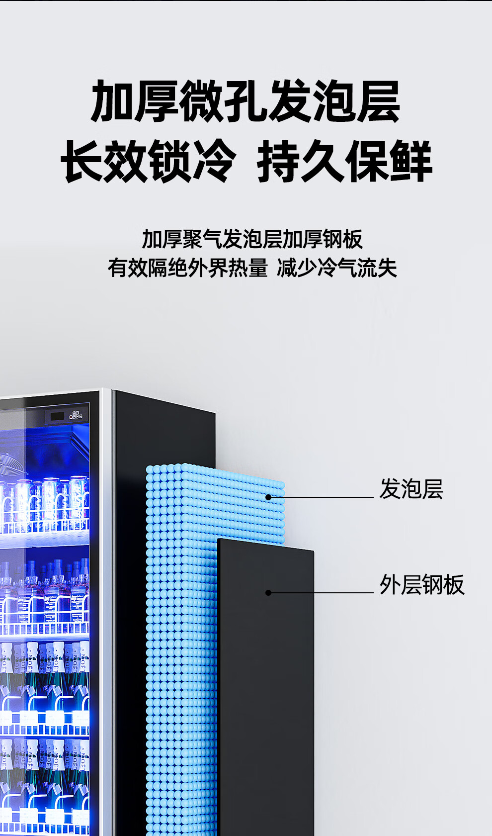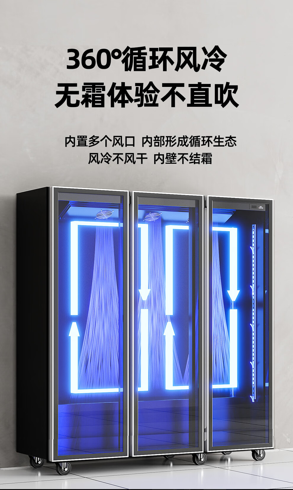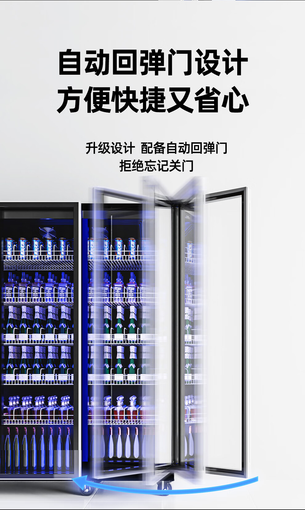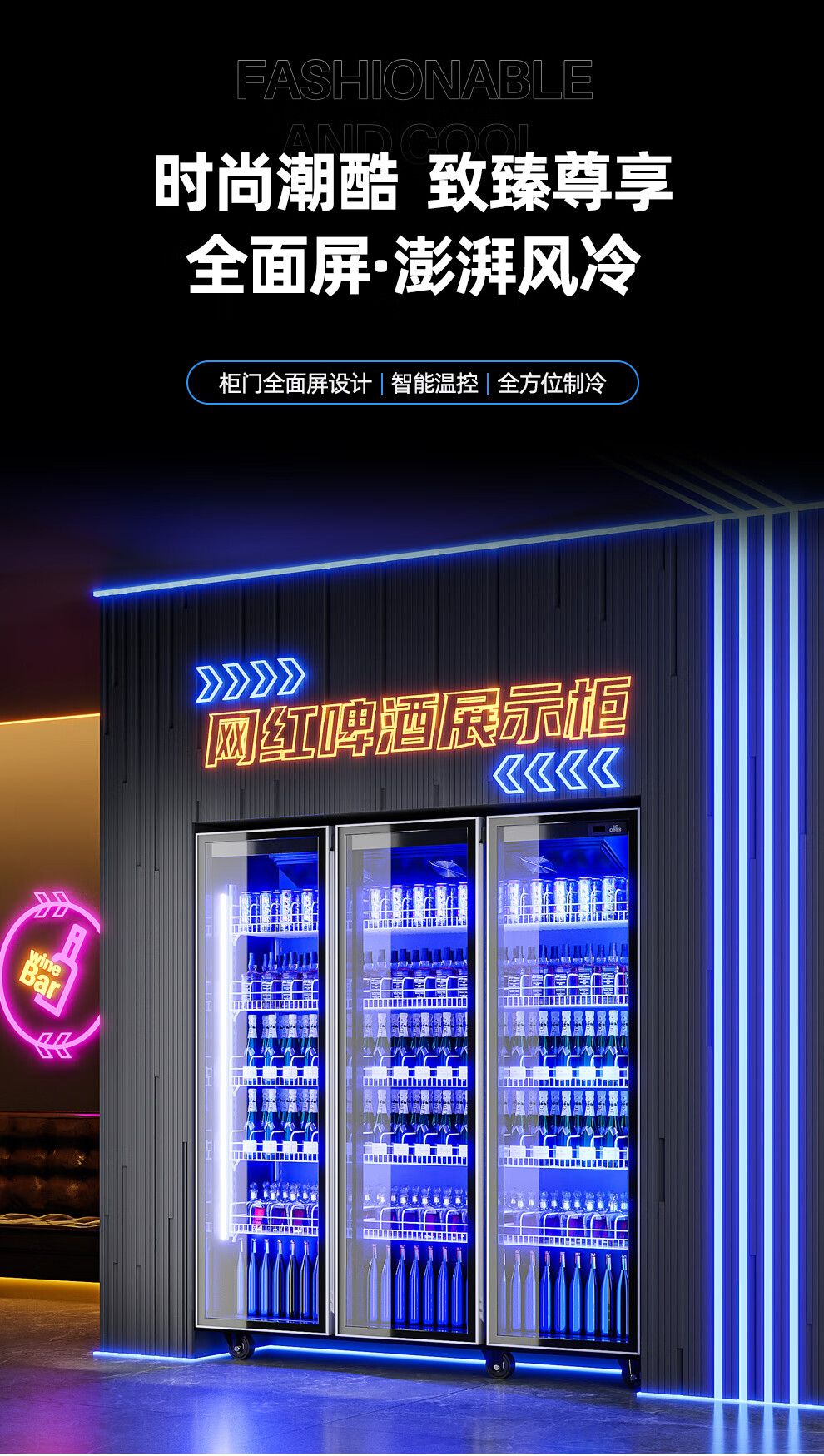 Powerful air-cooled frost-free display cabinet refrigerated internet celebrity beer cabinet supermarket convenience store refrigerator freezer commercial bar wine storage cabinet full screen cold drink cabinet rebound door beverage cabinet single door wine cabinet 620*600*2010 Pro frequency conversion energy saving + coating anti-fog