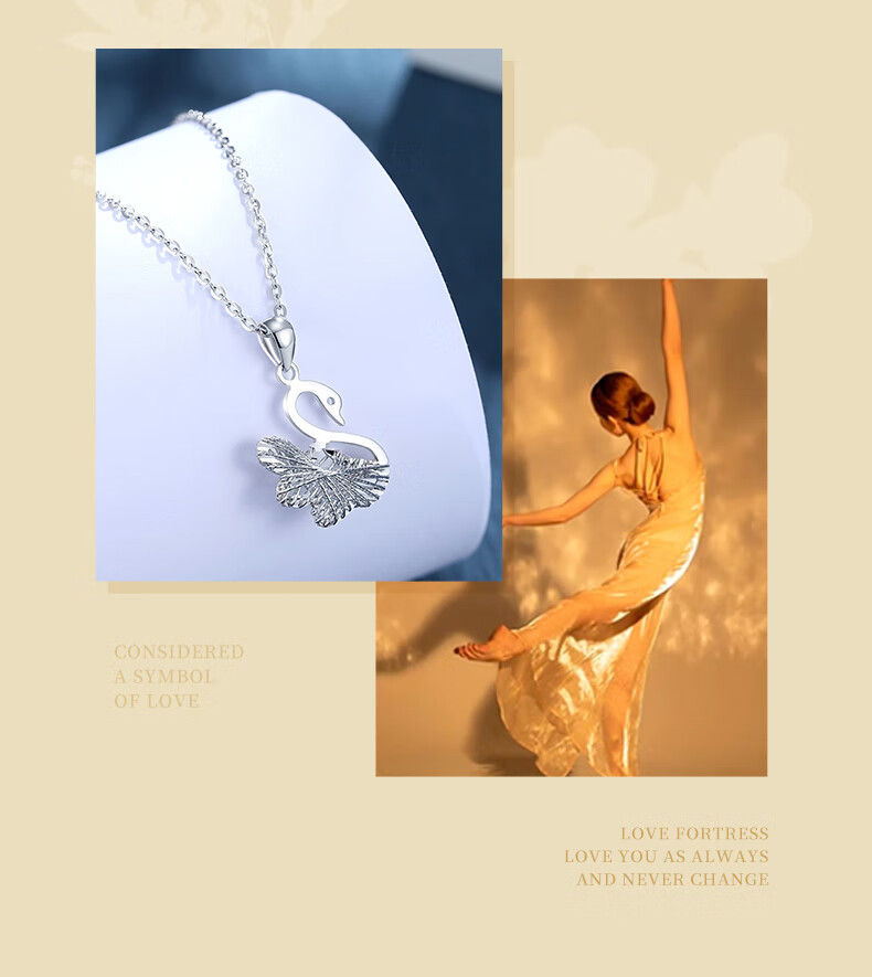 CHINA GOLD Swan Platinum Necklace Women's Fashion Platinum Pendant Clavicle Chain 520 Valentine's Day Gift for Girlfriend and Wife's Birthday Platinum Swan Pendant* with Silver Chain
