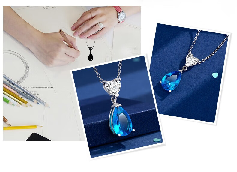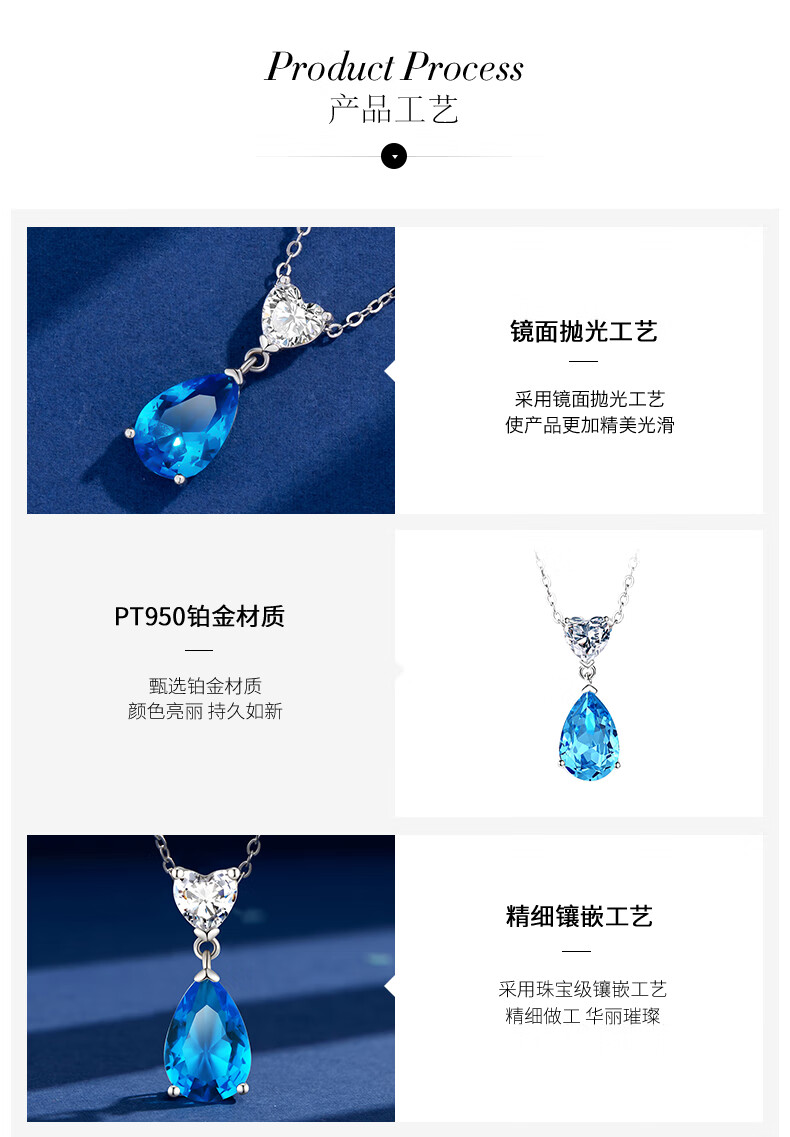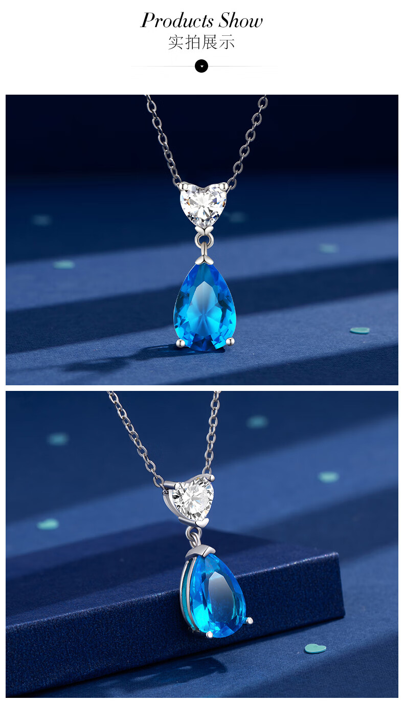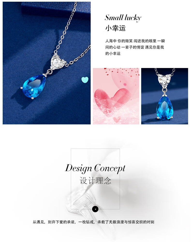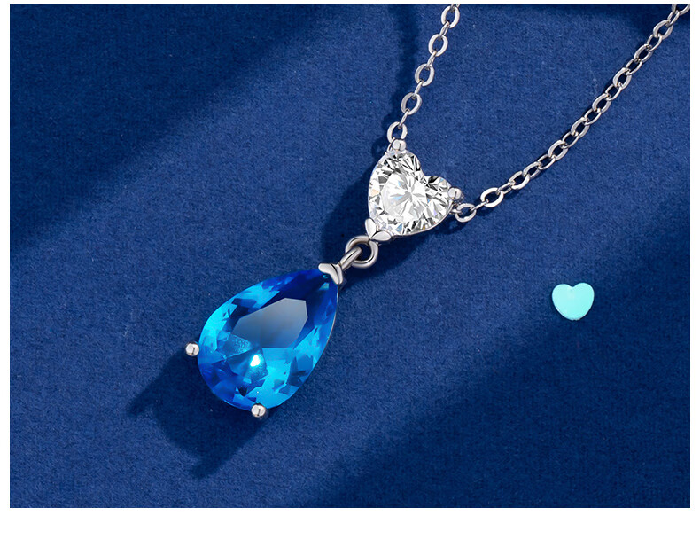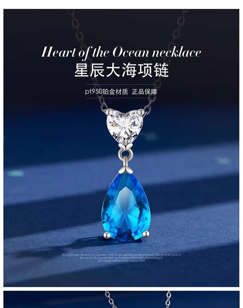Grace Girl Platinum Necklace Heart of the Ocean Blue Topaz Platinum Pendant Heartfelt Birthday Gift for Girlfriend for Valentine's Day Platinum Heart of the Ocean Necklace + Light Luxury Gift Box