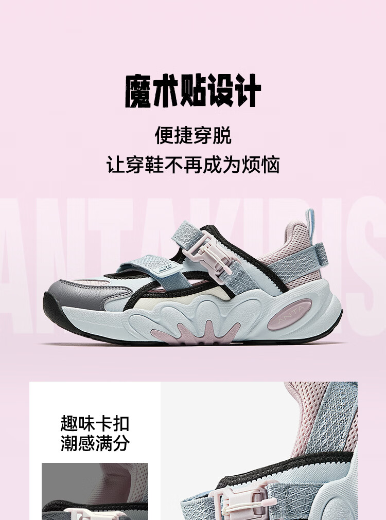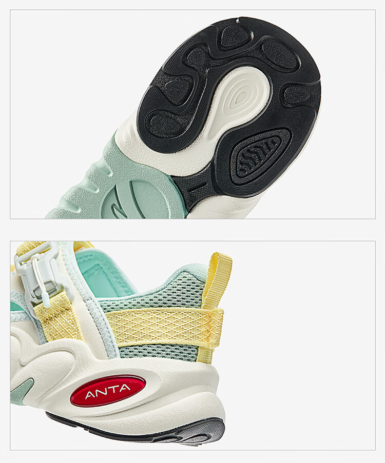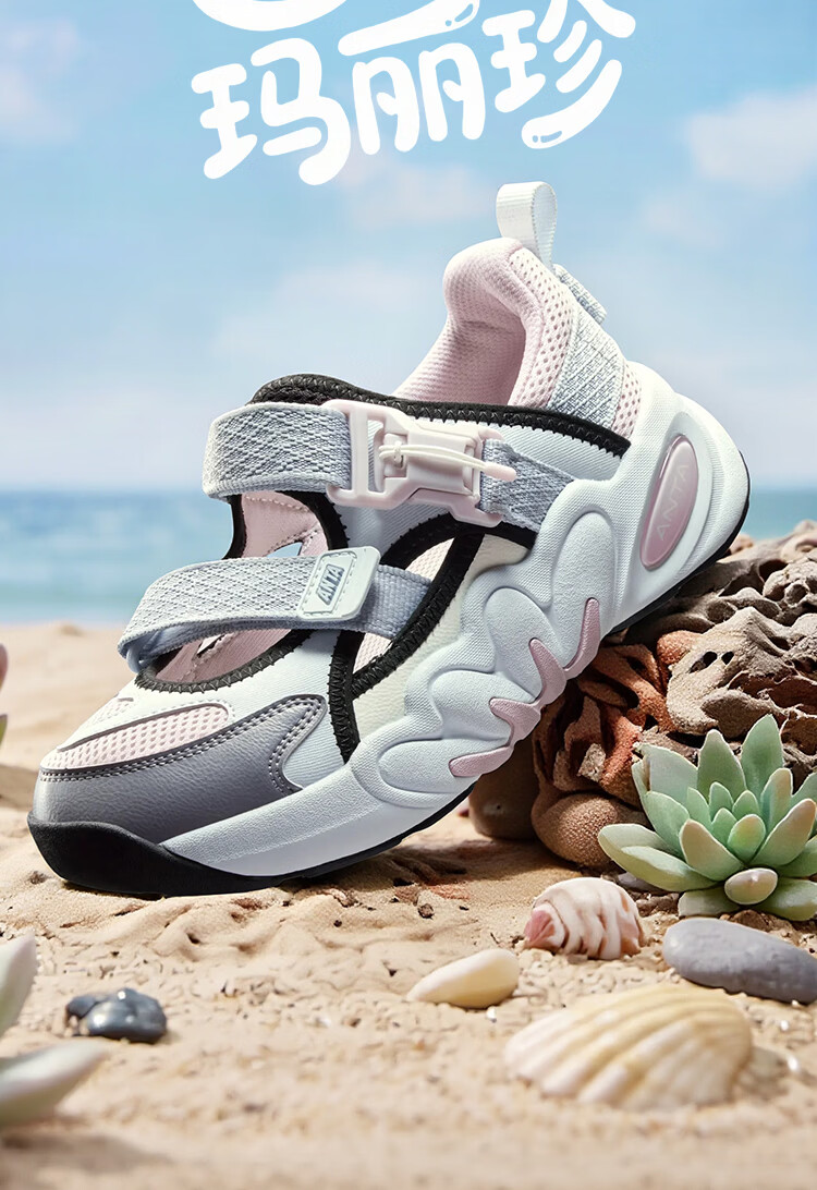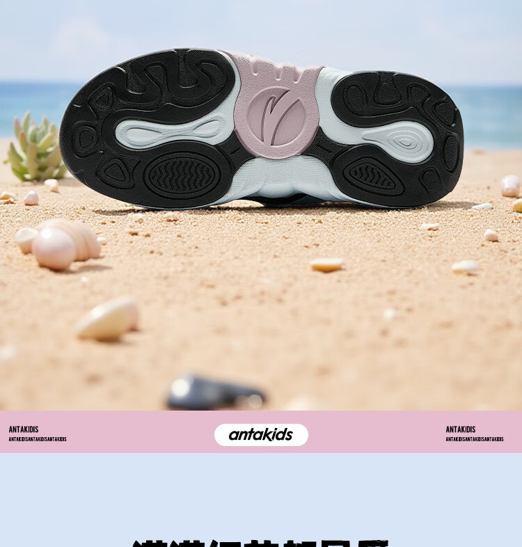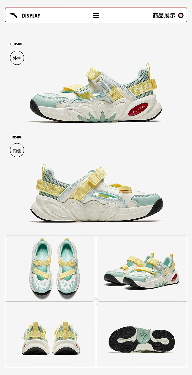 ANTA children's sandals, girls' shoes, 2026 summer new product, succulent Mary Jane outdoor sports shoes, beach shoes, black/mud lime/solar green-1 36, inner length of the shoe 23cm