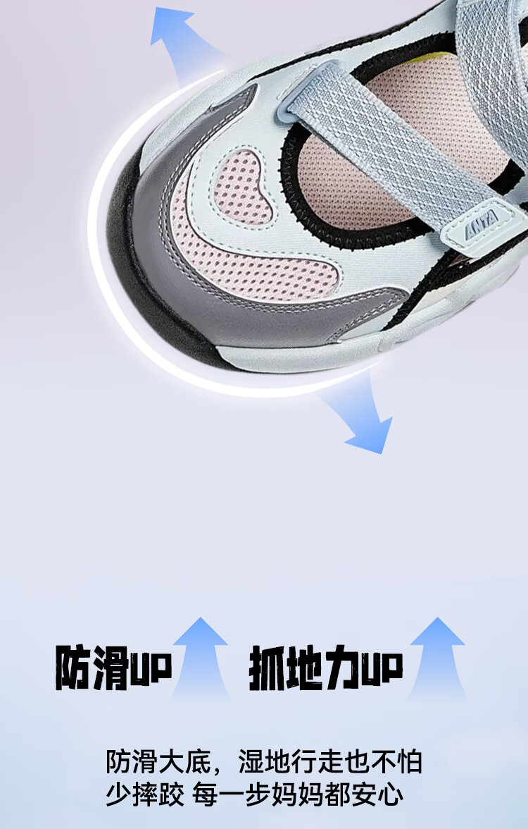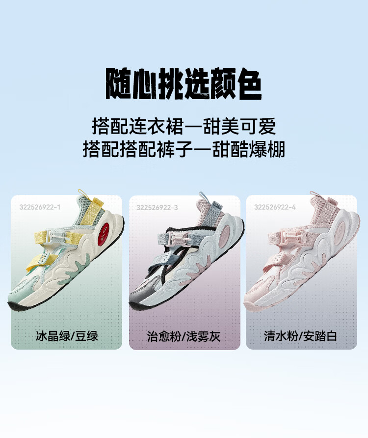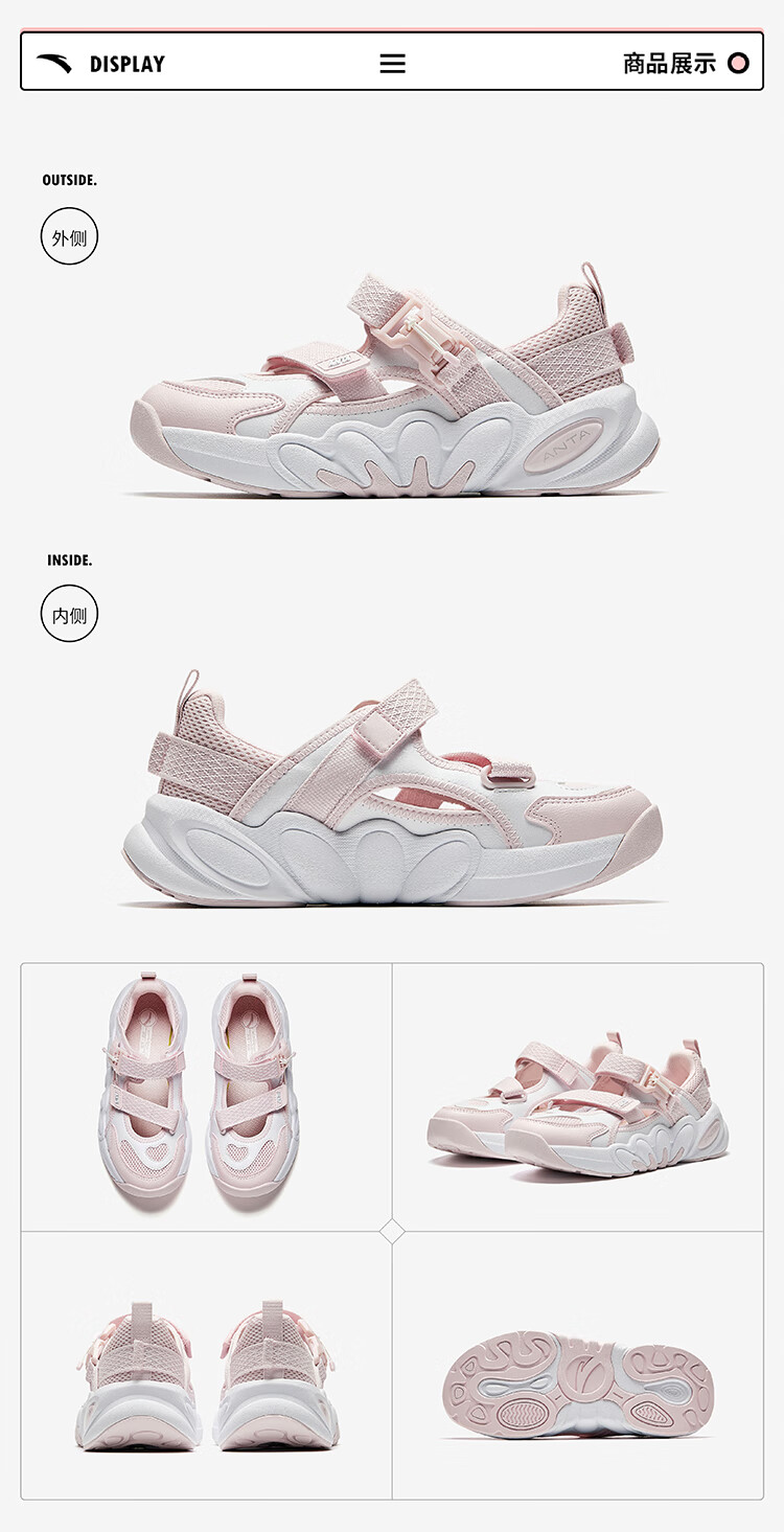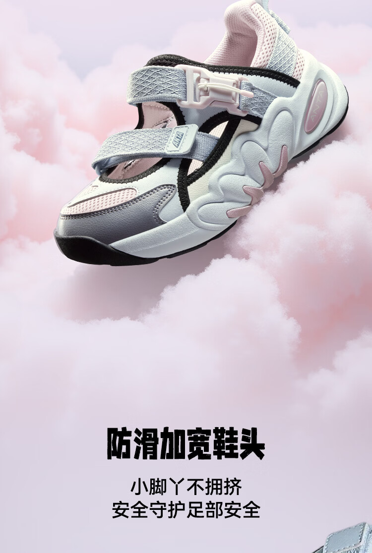 ANTA children's sandals, girls' shoes, 2026 summer new product, succulent Mary Jane outdoor sports shoes, beach shoes, black/mud lime/solar green-1 36, inner length of the shoe 23cm