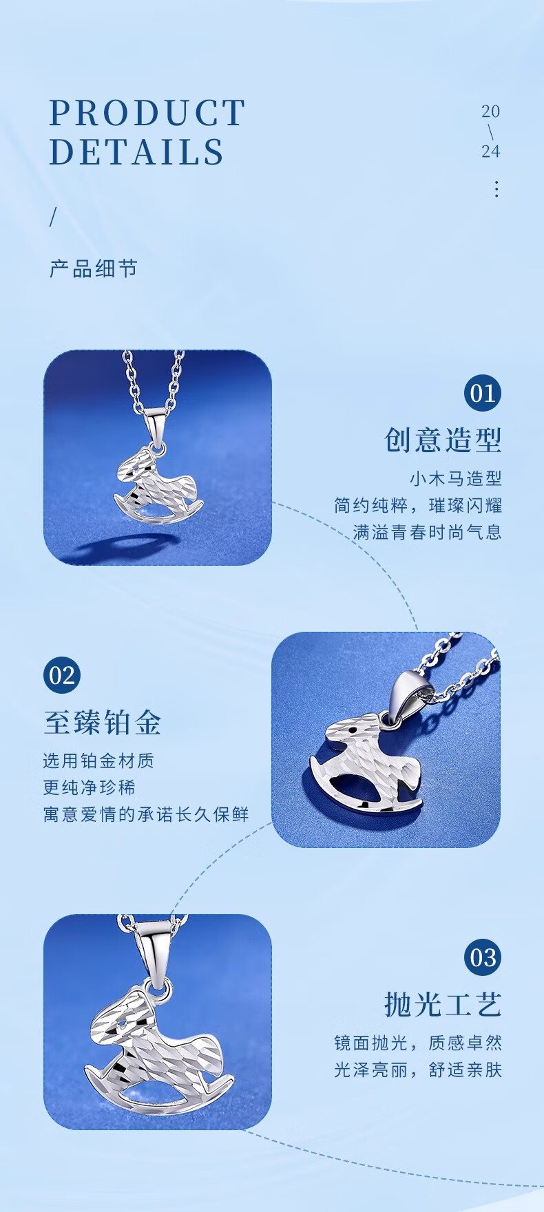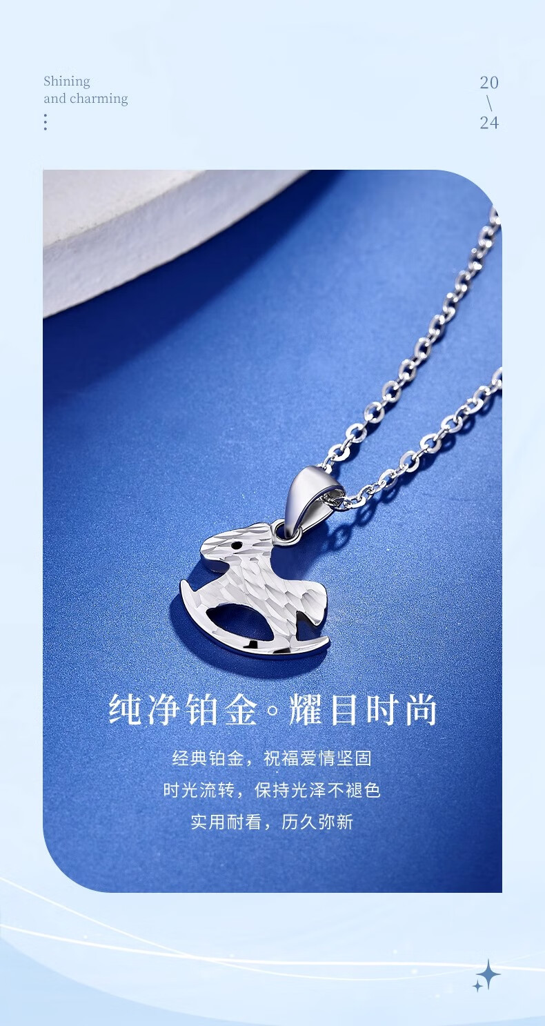 China Gold (CHINA GOLD) platinum necklace pt950 Trojan horse platinum pendant pendant female clavicle chain wedding gift to girlfriend birthday gift PT950 platinum Trojan pendant about 1.4g free silver chain