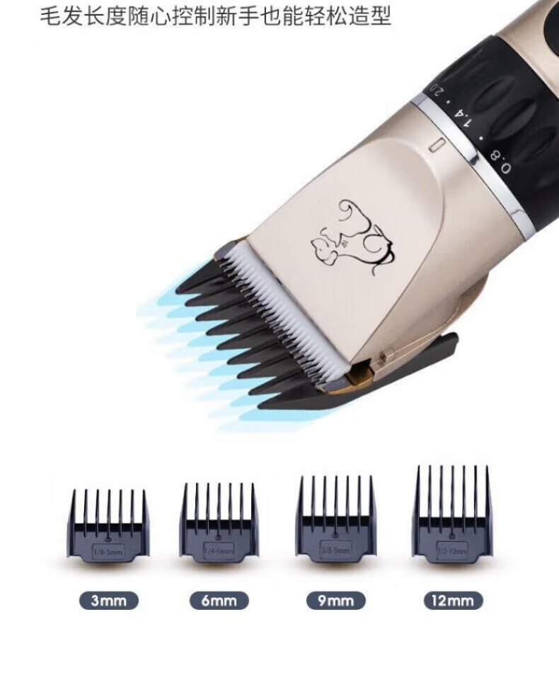 Bei Chuzhong pet shaver dog clipper dog hair shaver cat hair shaver dog hair pusher shaver maintenance oil + cleaning brush plus 4 sizes of positioning comb 5W power