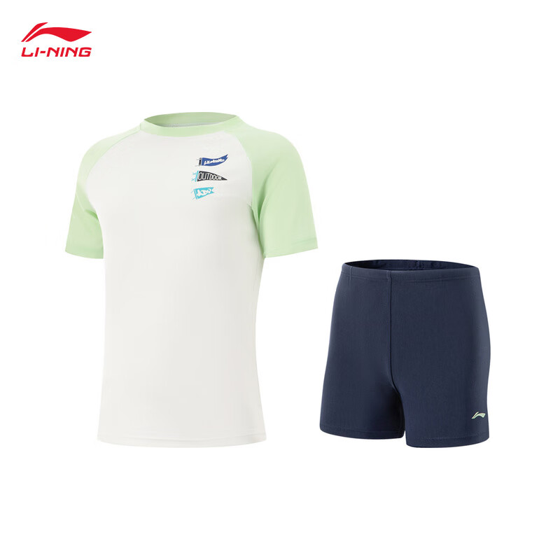 Li Ning children's swimming suit boys 25 new moisture-absorbent quick-drying sunscreen swimsuit and trunks (no returns or exchanges after opening) Standard White/Deep Navy Blue-3 160