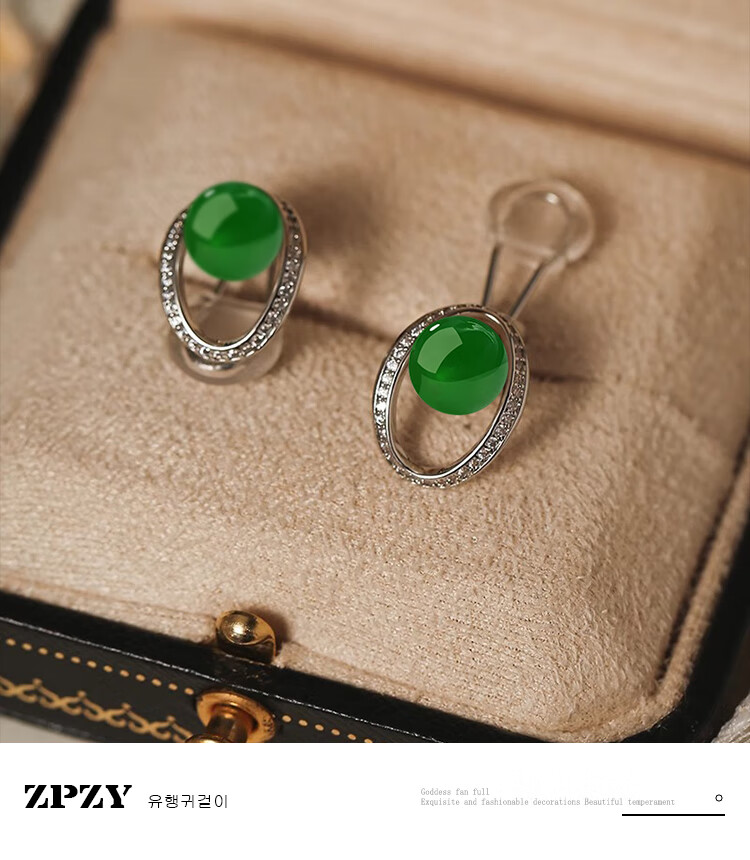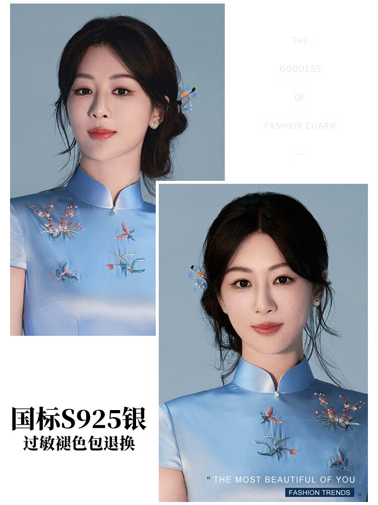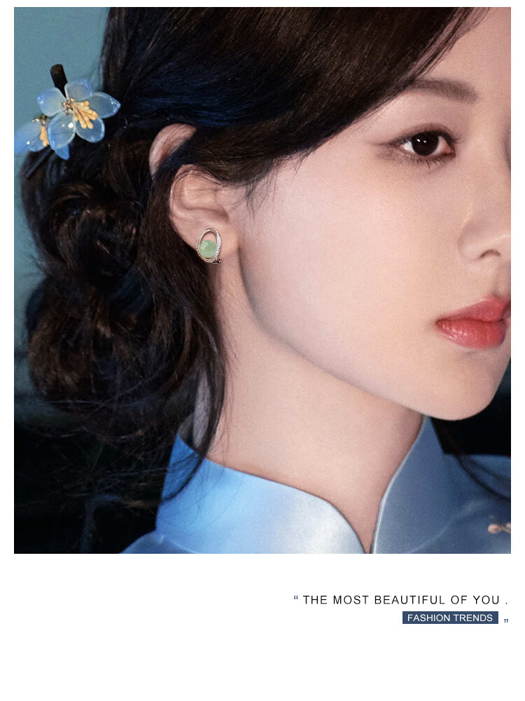 QPQK new Chinese style Hetian jade ear clips for women without piercings and temperament earrings 2025 new hot style high-end women's sterling silver earrings sapphire ear clips