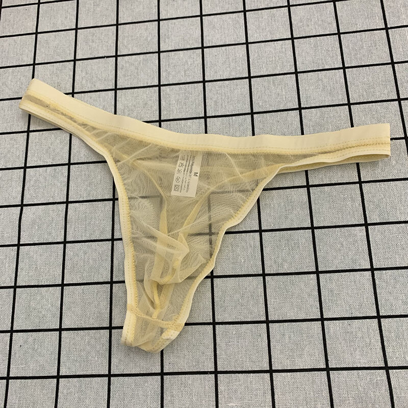 Transparent tight sexy breathable mesh ice silk underwear for men's thong, men's sexy T-shorts low, white XXL145-160